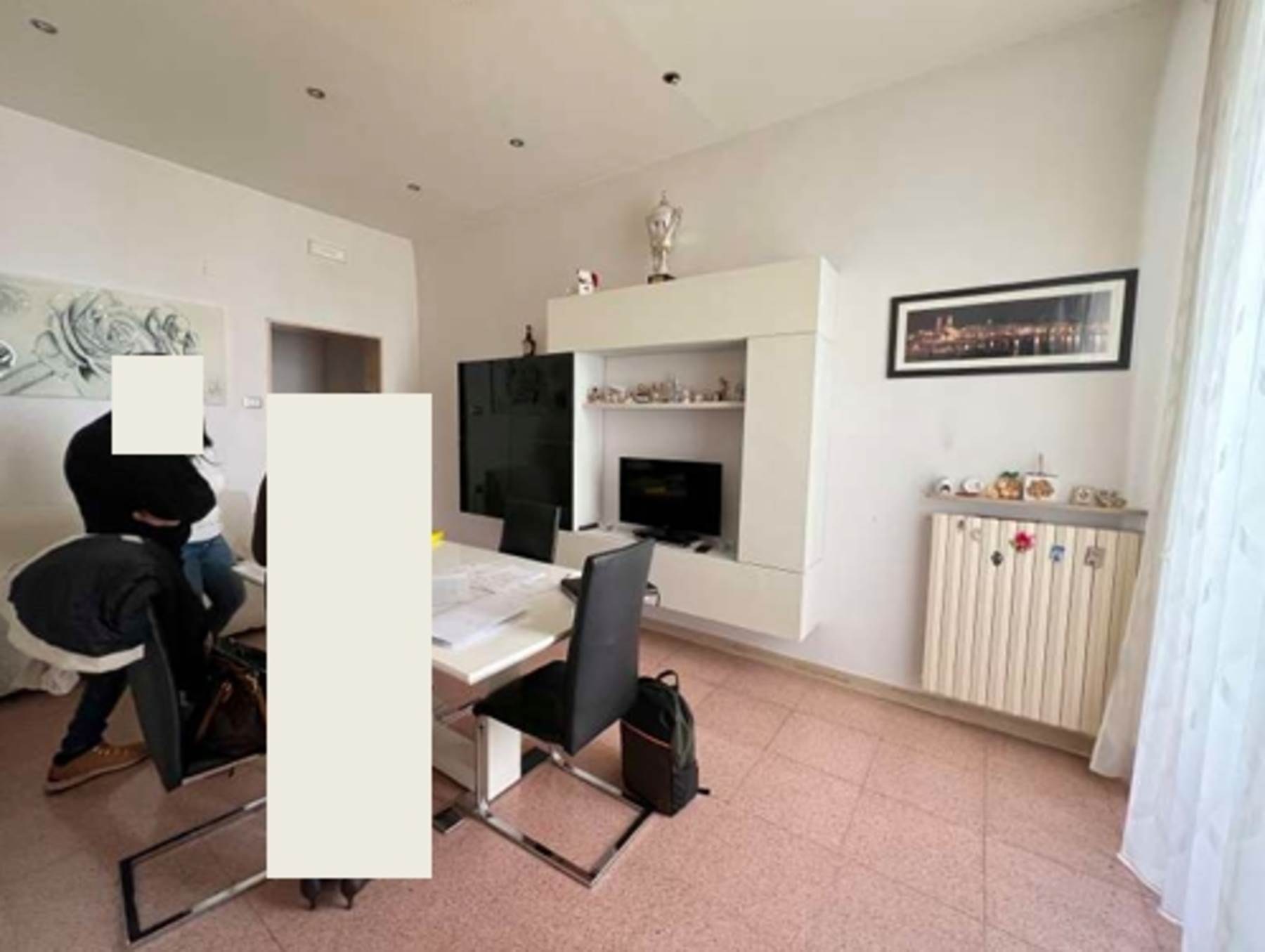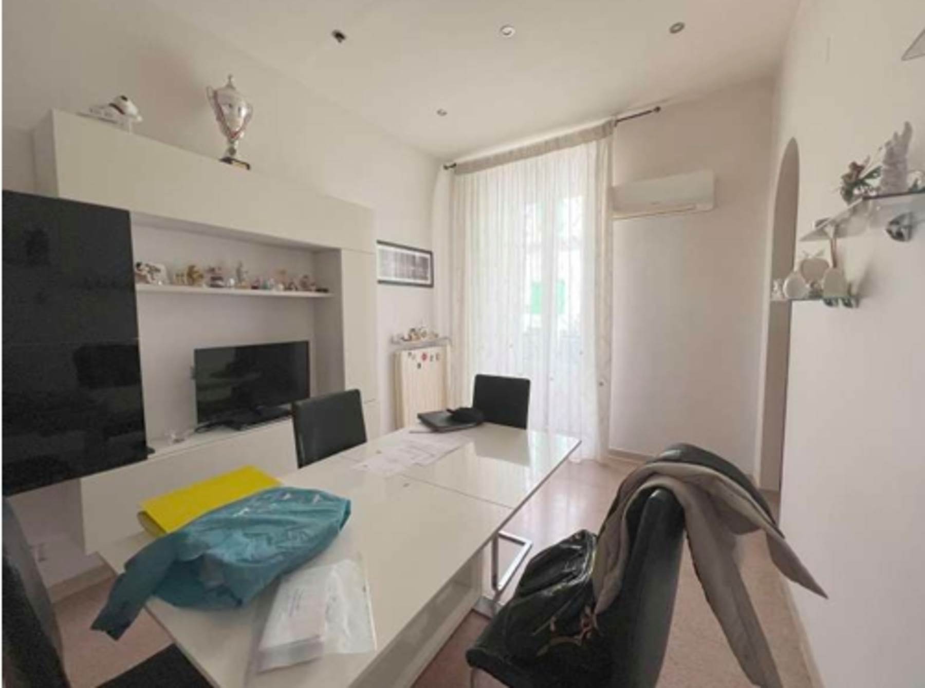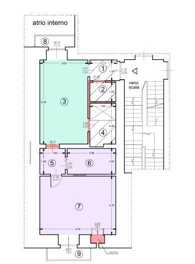 Descrizione sintetica: Appartamento al piano primo composto da ingresso, tinello, cucinino, disimpegno, vano utilizzato come camera da letto singolo, camera da letto matrimoniale e servizio igienico oltre a due balconi di mq 4,16. Costituisce pertinenza dell’appartamento cantina di mq 9,19.