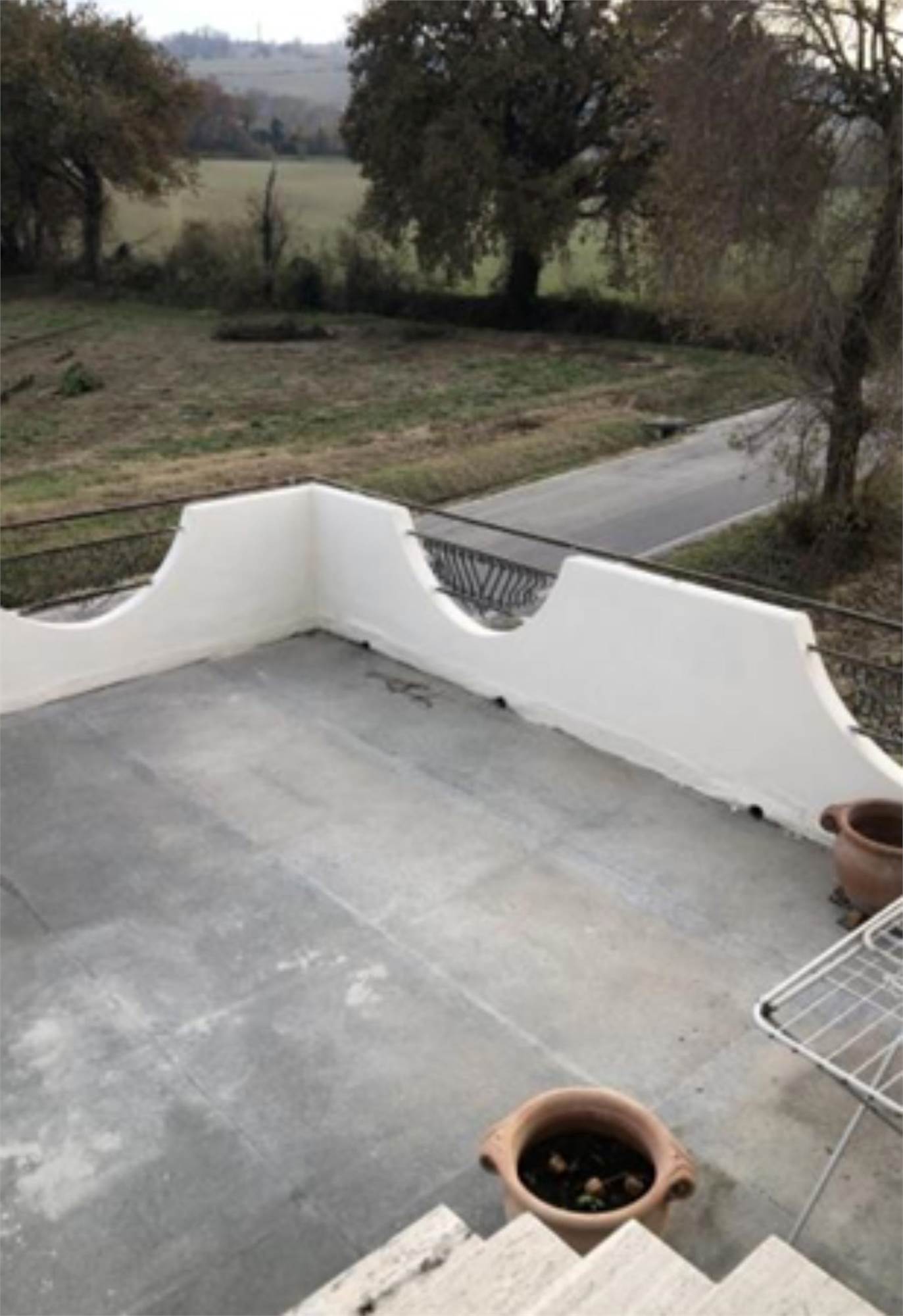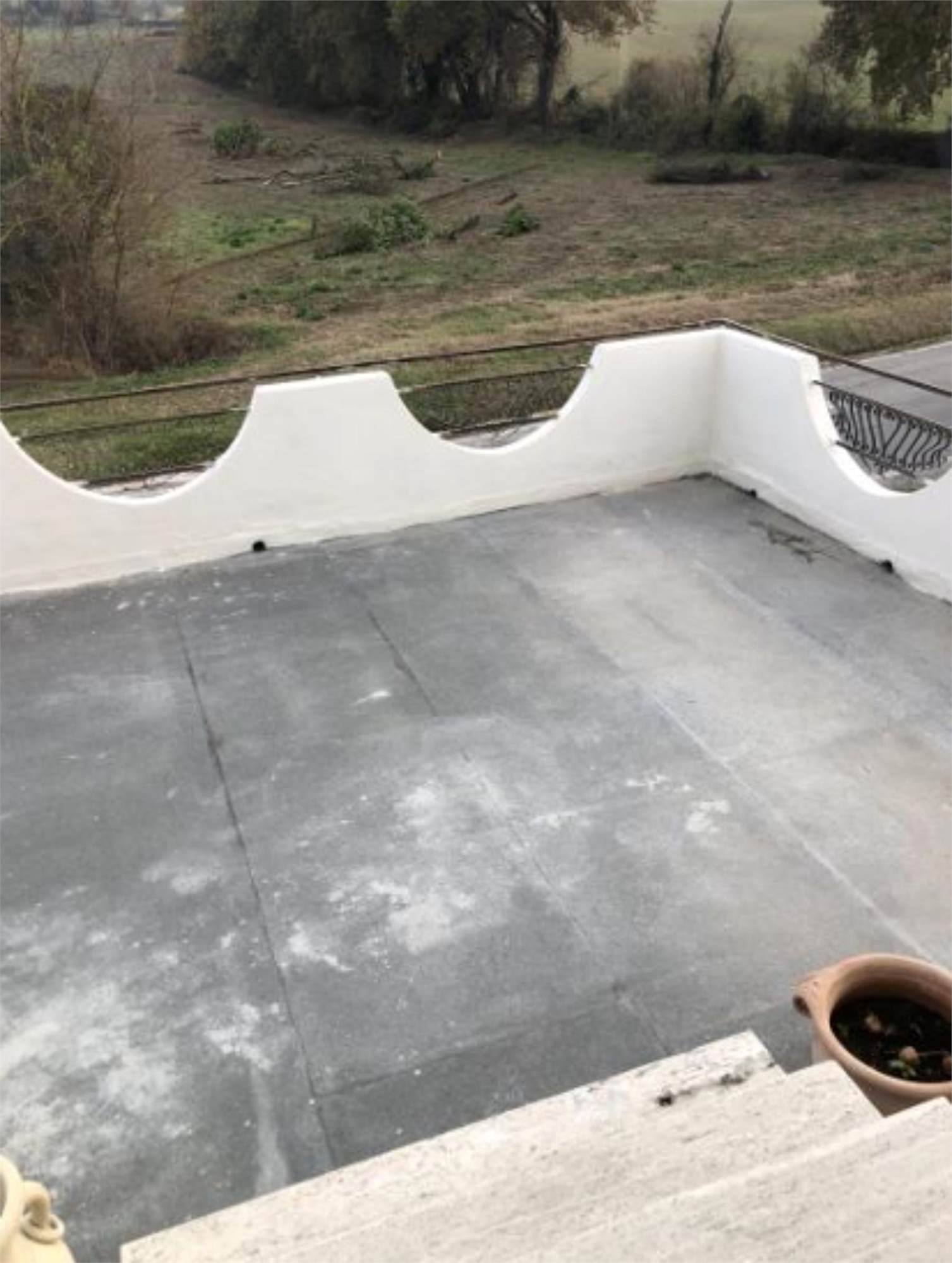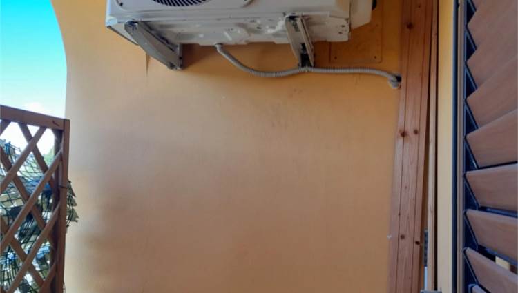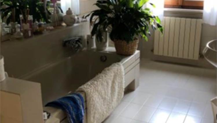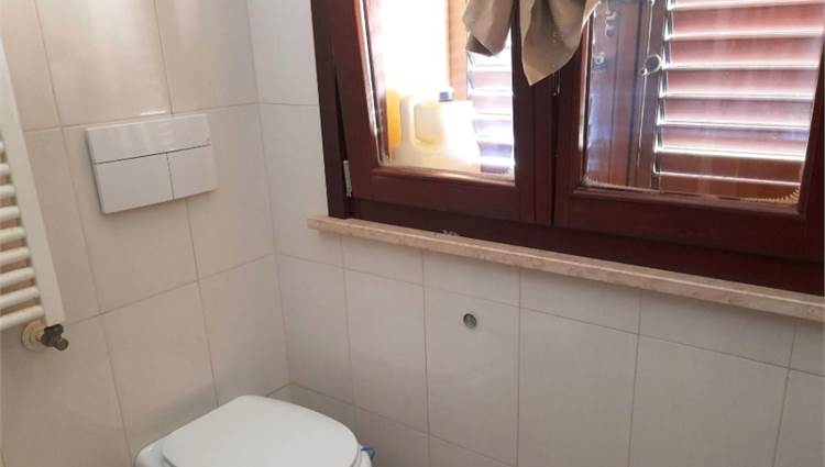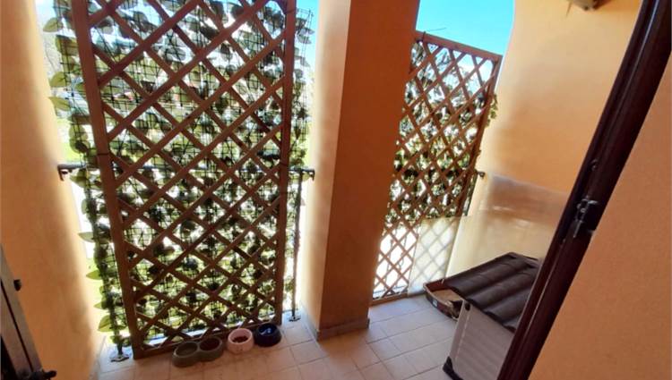 camino. Dal salone si accede ad un terrazzo condiviso con l'altro appartamento finito solo con guaina bituminosa. La cucina abitabile è ampia e presenta un secondo camino che risulta collegata all'impianto di riscaldamento (termo camino). E' presente anche una zona destinata a