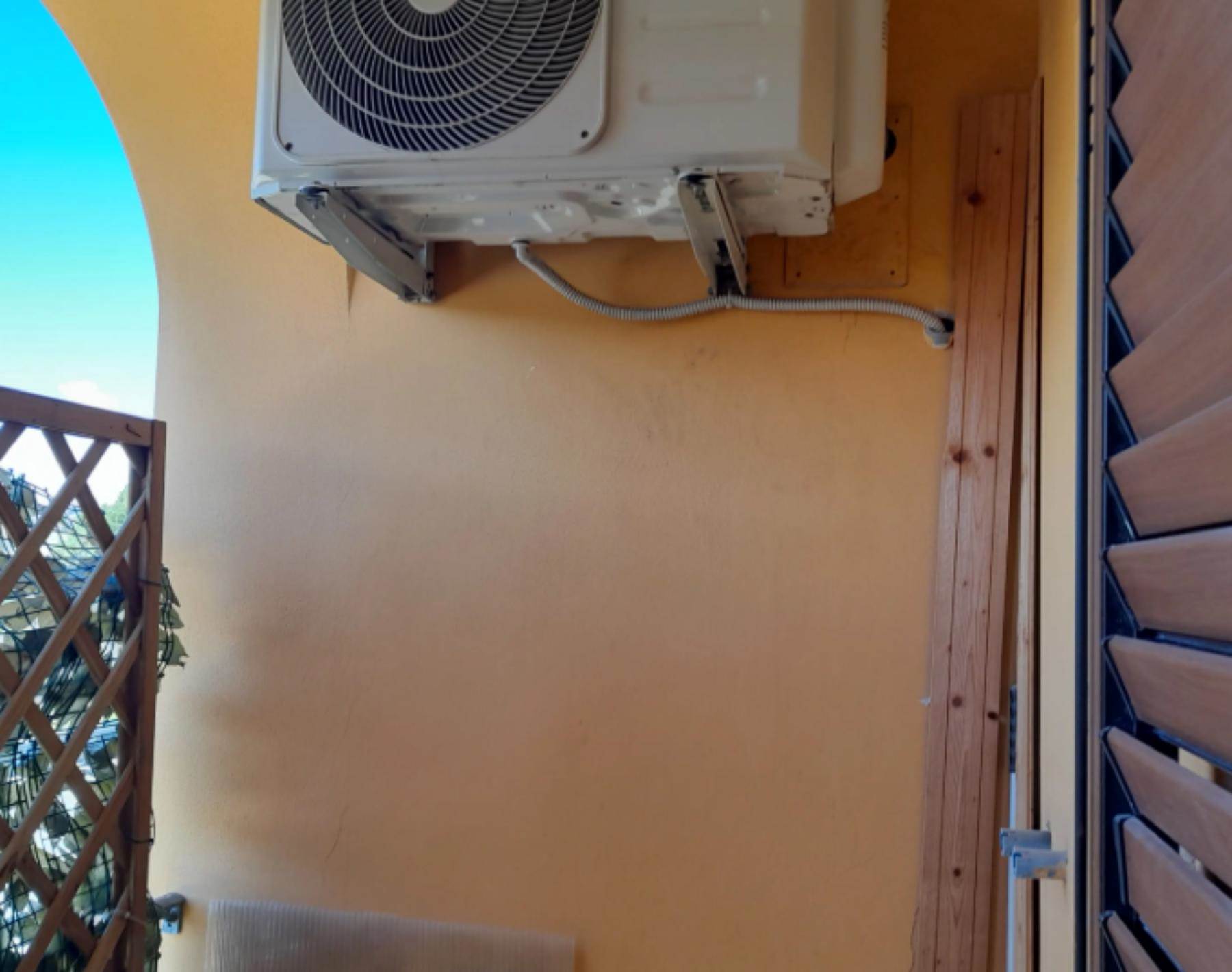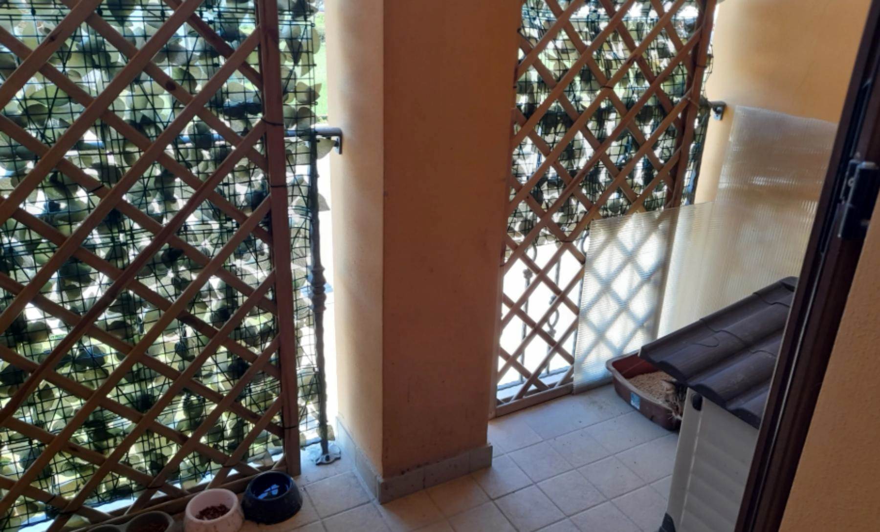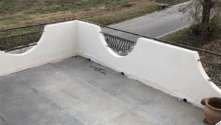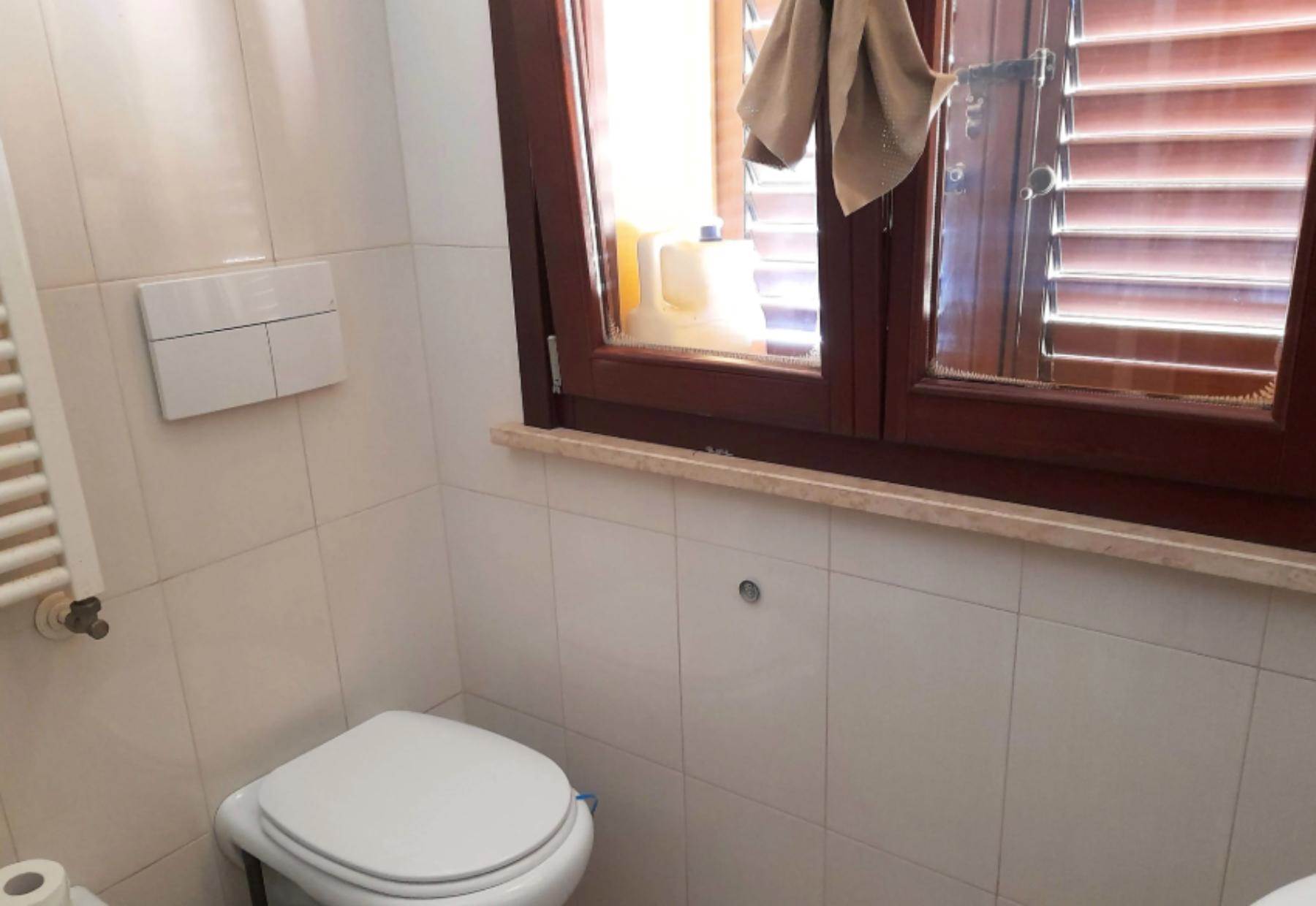 camino. Dal salone si accede ad un terrazzo condiviso con l'altro appartamento finito solo con guaina bituminosa. La cucina abitabile è ampia e presenta un secondo camino che risulta collegata all'impianto di riscaldamento (termo camino). E' presente anche una zona destinata a