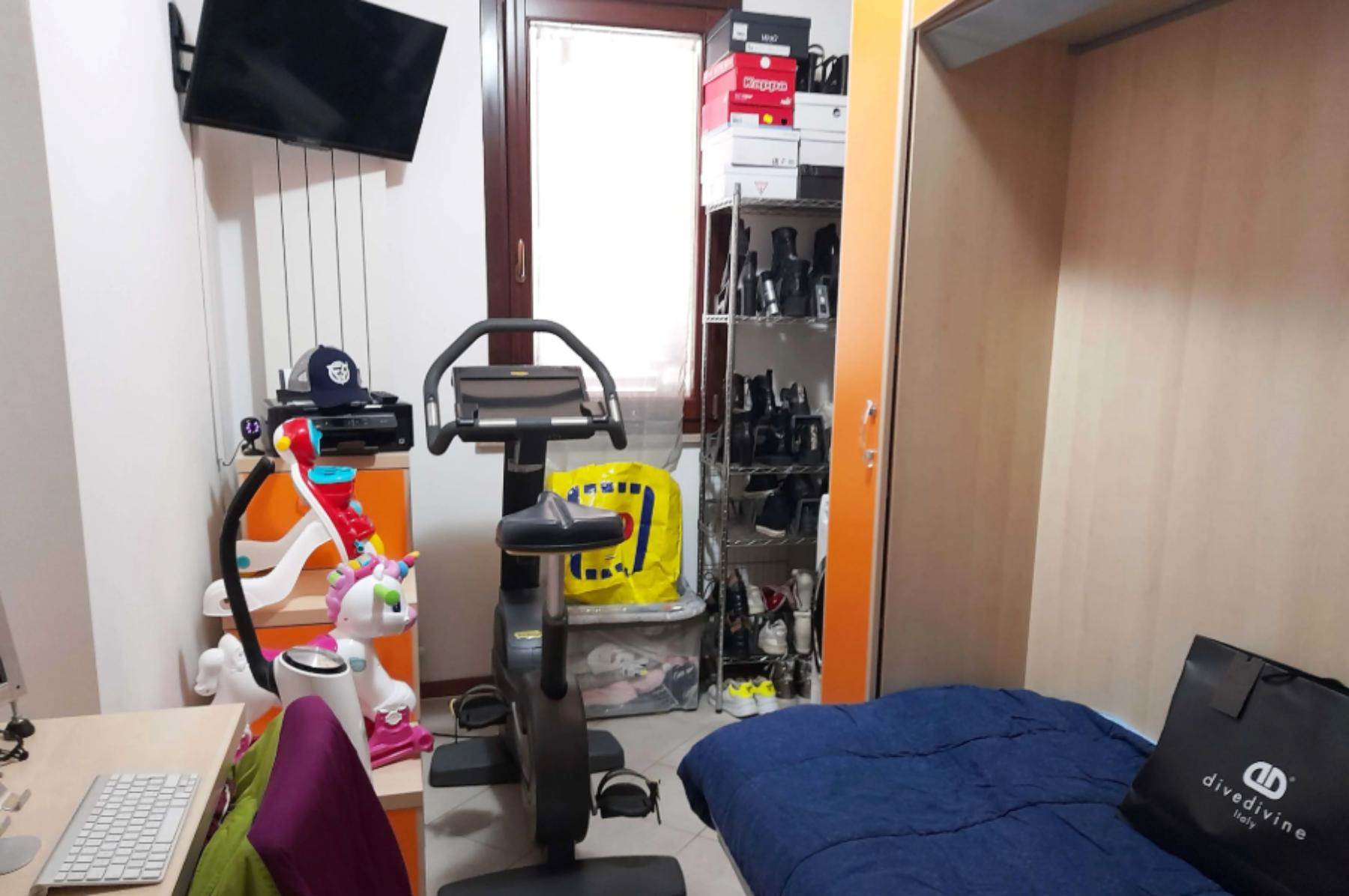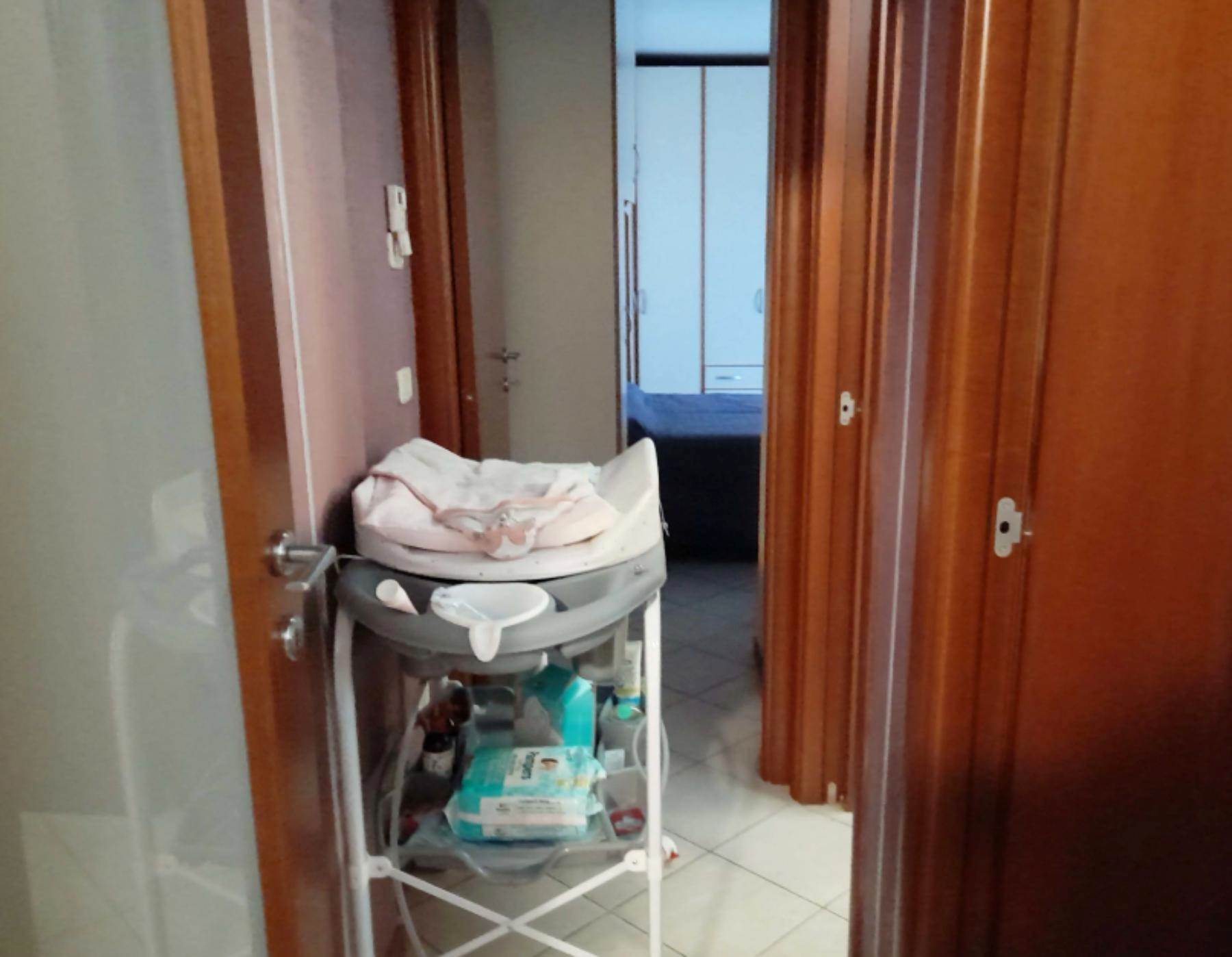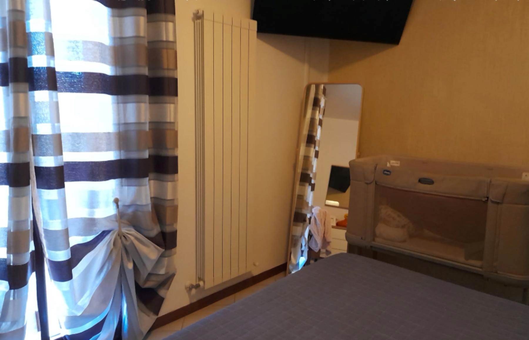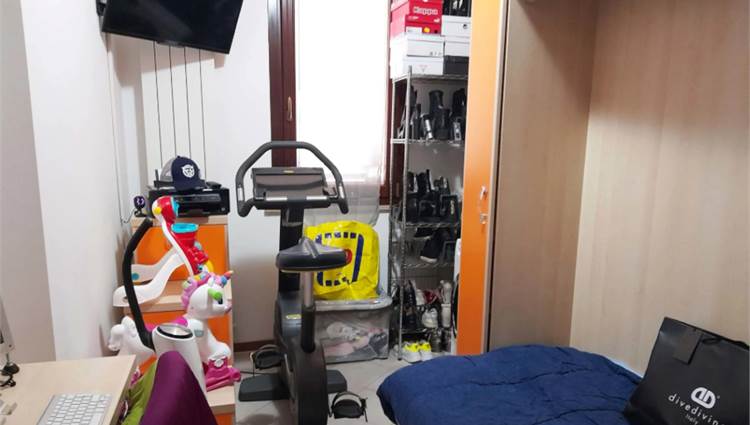 ripostiglio e/o dispensa. La zona notte presenta un corridoio diviso dalla zona giorno tramite porte a vetri. Sono presenti una cameretta, un bagno di generose dimensioni con vasca da bagno e doccia, una seconda cameretta/studio ed infine una camera matrimoniale.