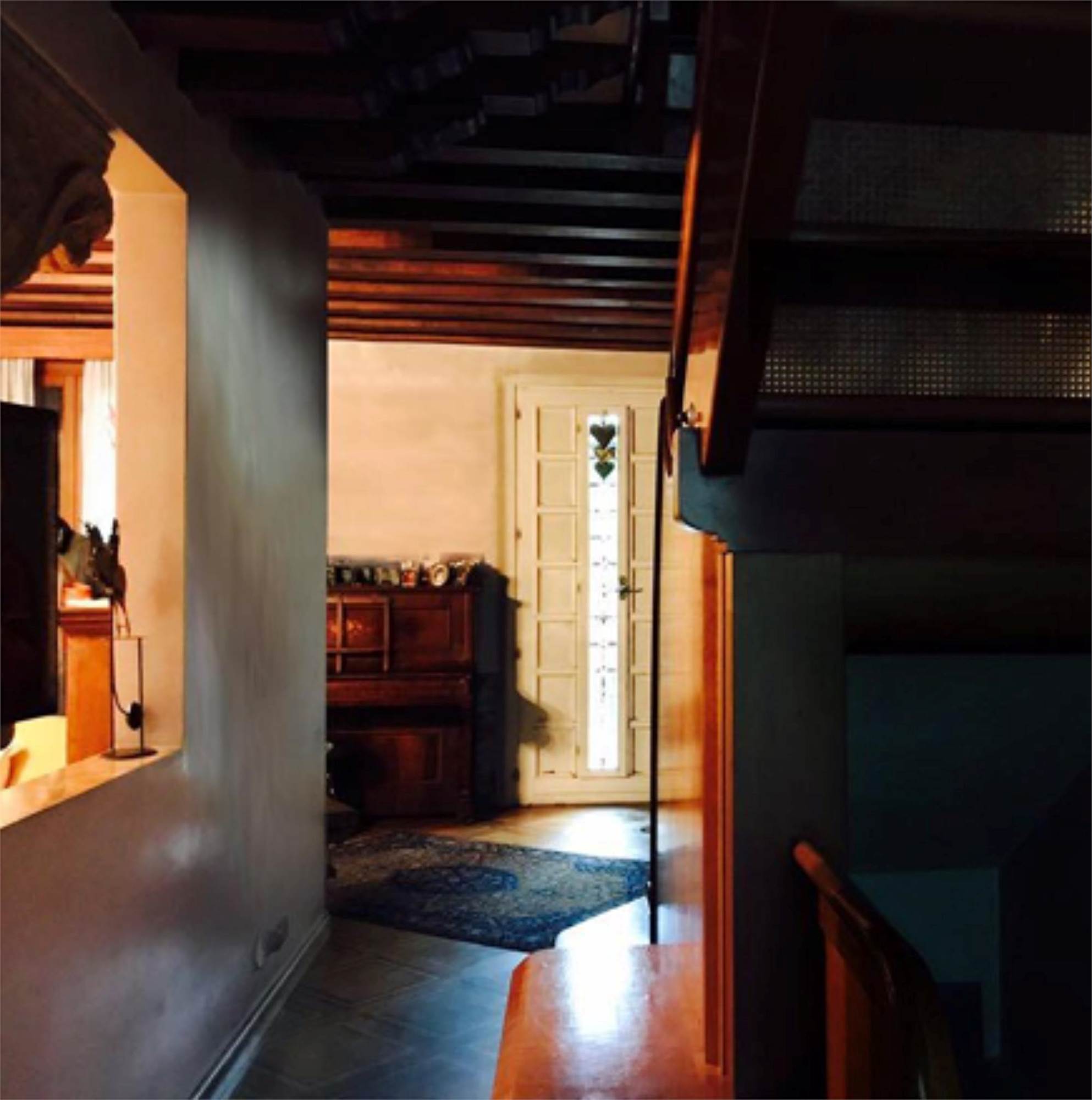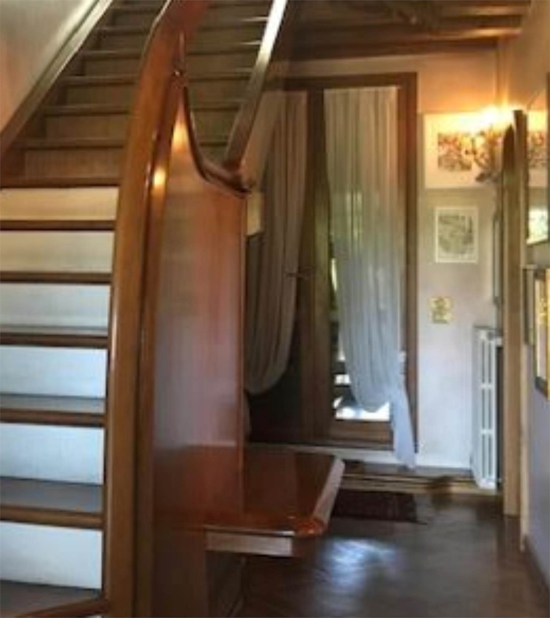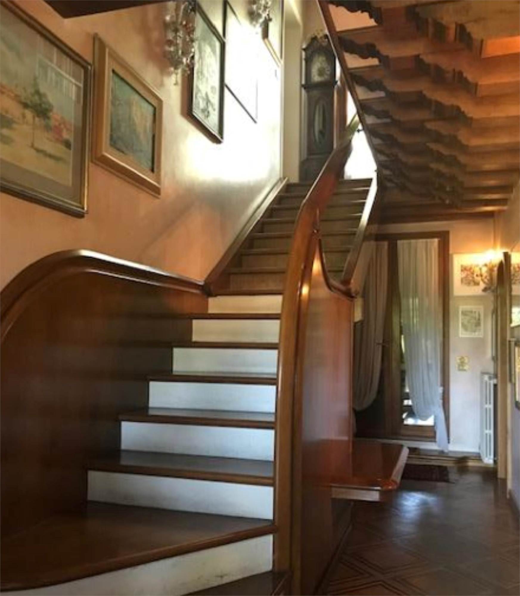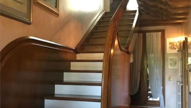 L'abitazione si compone al piano rialzato di un ingresso che disobbliga il soggiorno dalla sala da pranzo, comunicante con la cucina e il bagno. La scala in legno posta nella parte centrale della villetta permette di salire ai piani superiori dove ci sono quattro camere e due bagni. Le due stanze prospettanti sul fronte principale godono ognuna di un piccolo poggiolo. L'ultimo piano mansardato ospita due bagni, una stanza guardaroba e un piccolo poggiolo. All'interno del soggiorno e della sala da pranzo è stata asportata una fascia di m 1,00 circa da terra dell'intonaco per problemi di umidità.