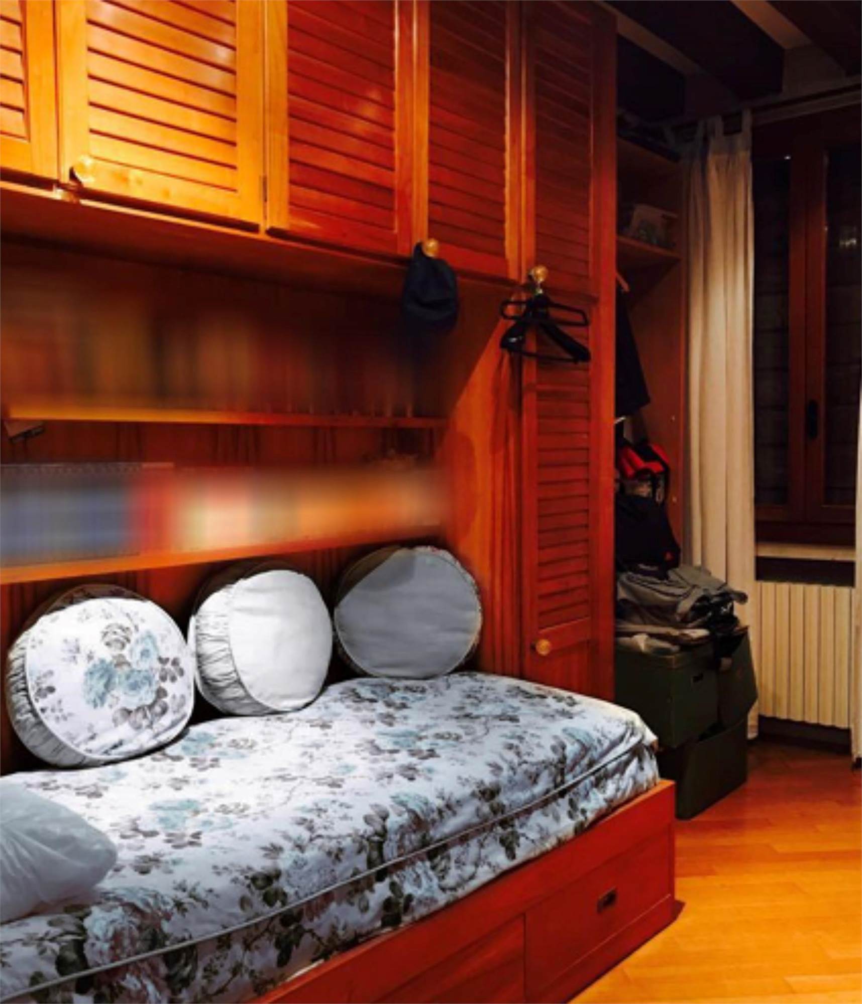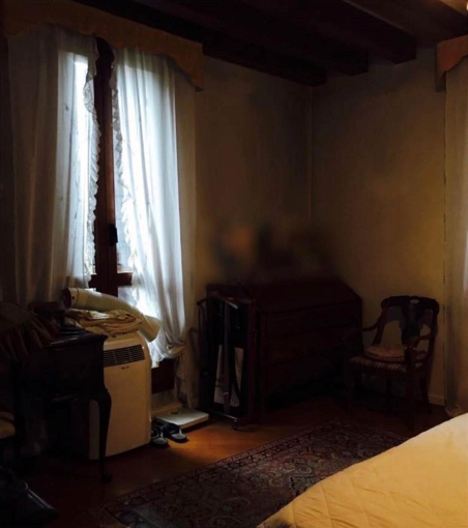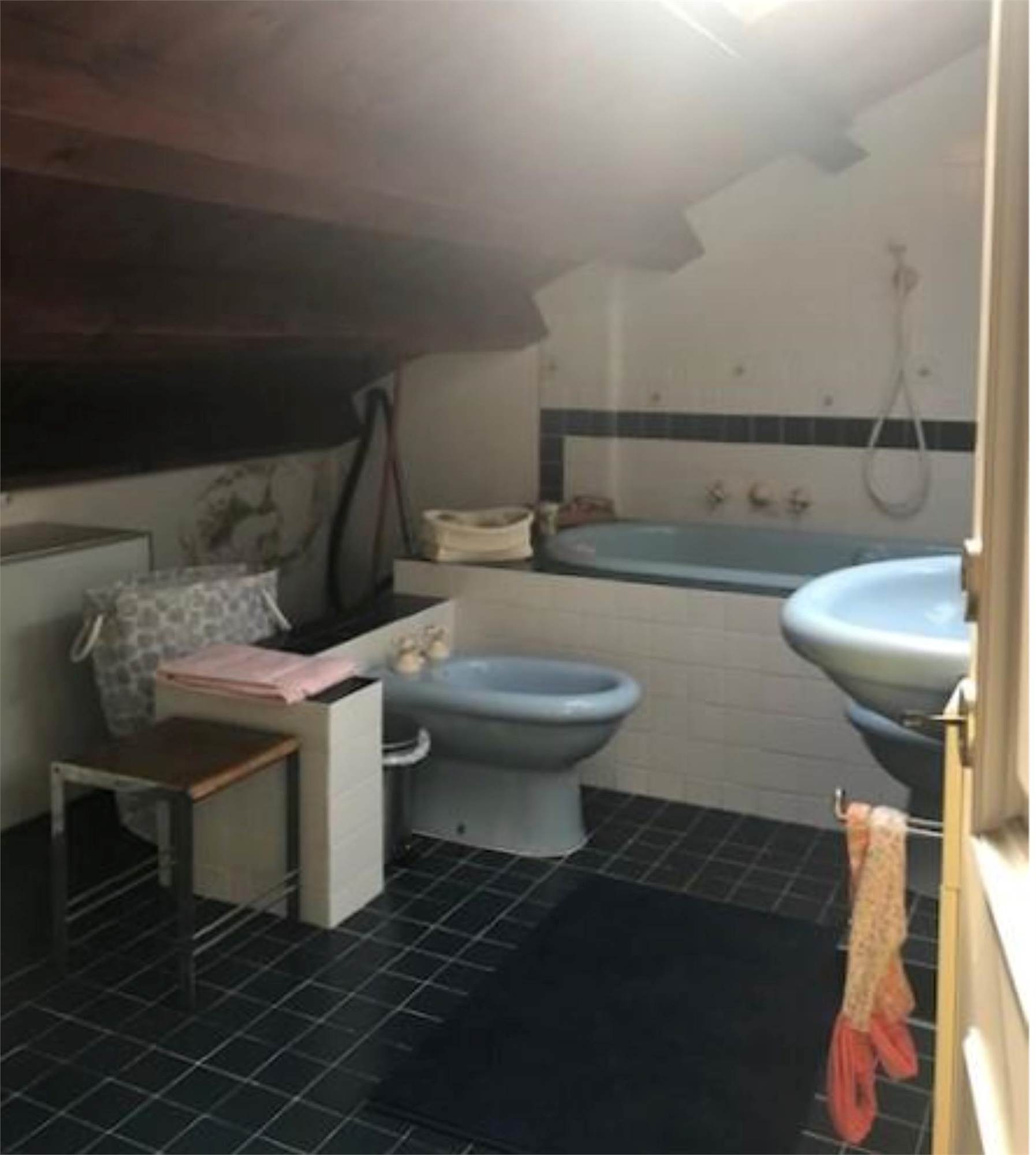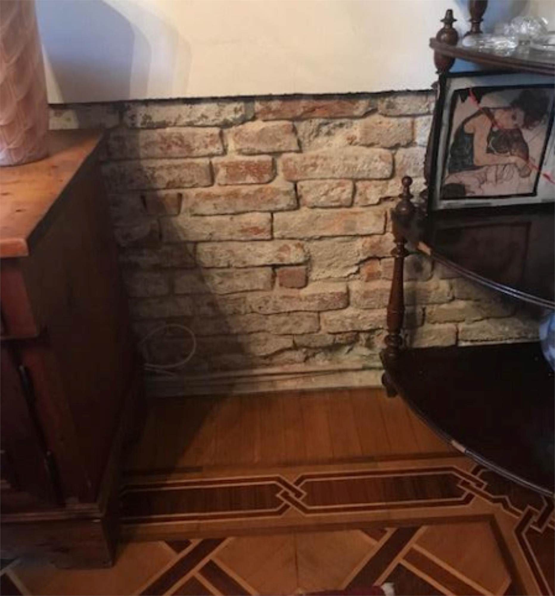 L'abitazione si compone al piano rialzato di un ingresso che disobbliga il soggiorno dalla sala da pranzo, comunicante con la cucina e il bagno. La scala in legno posta nella parte centrale della villetta permette di salire ai piani superiori dove ci sono quattro camere e due bagni. Le due stanze prospettanti sul fronte principale godono ognuna di un piccolo poggiolo. L'ultimo piano mansardato ospita due bagni, una stanza guardaroba e un piccolo poggiolo. All'interno del soggiorno e della sala da pranzo è stata asportata una fascia di m 1,00 circa da terra dell'intonaco per problemi di umidità.