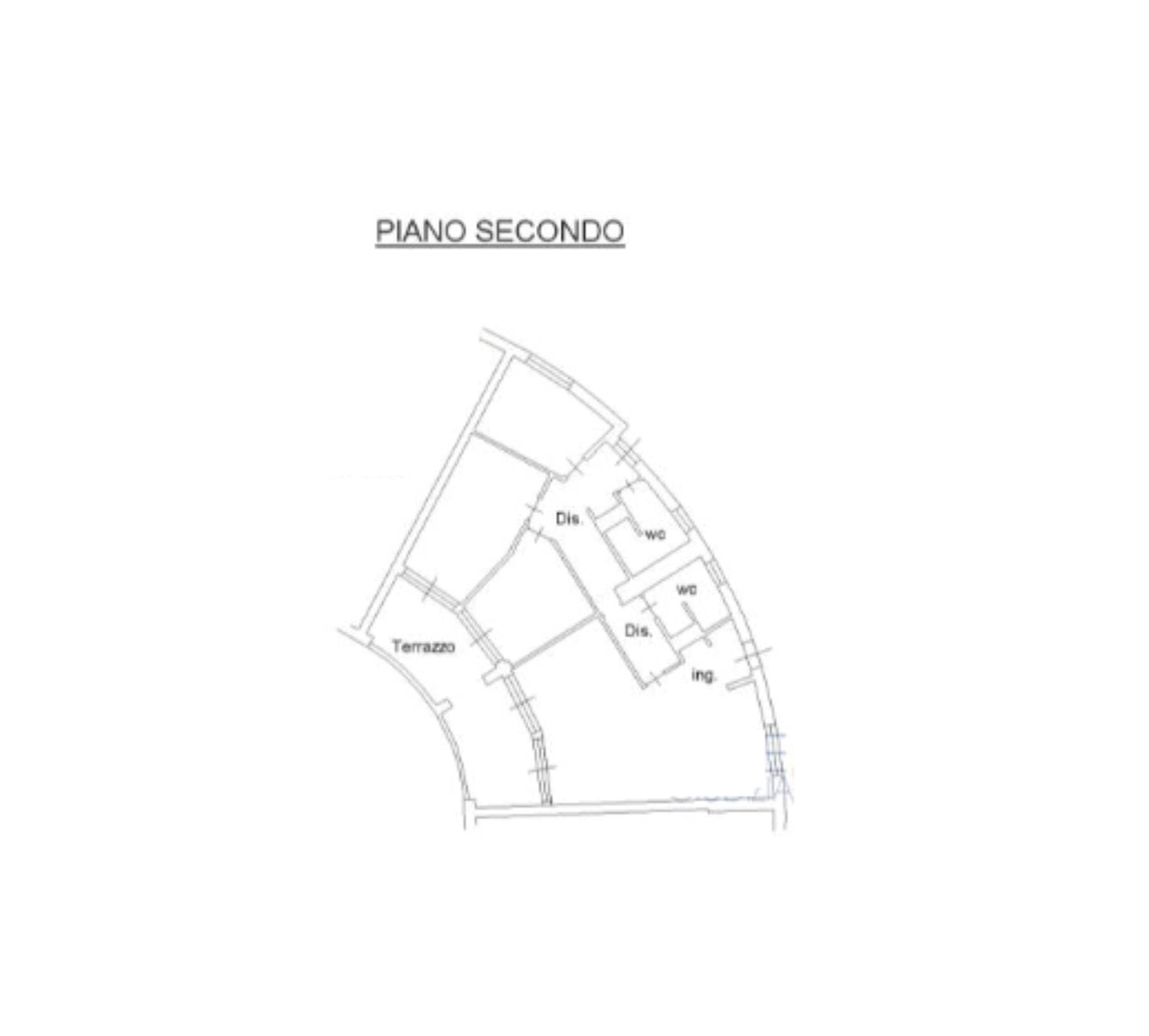 Appartamento posto al piano secondo, composto da cucina, soggiorno, tre camere, disimpegno, due bagni e terrazzo coperto.