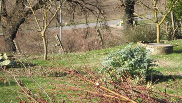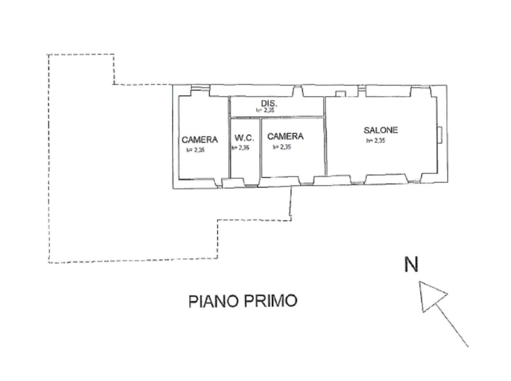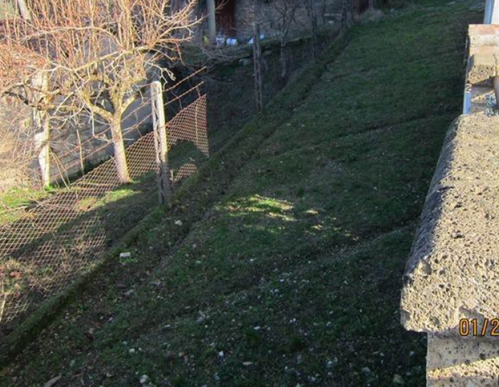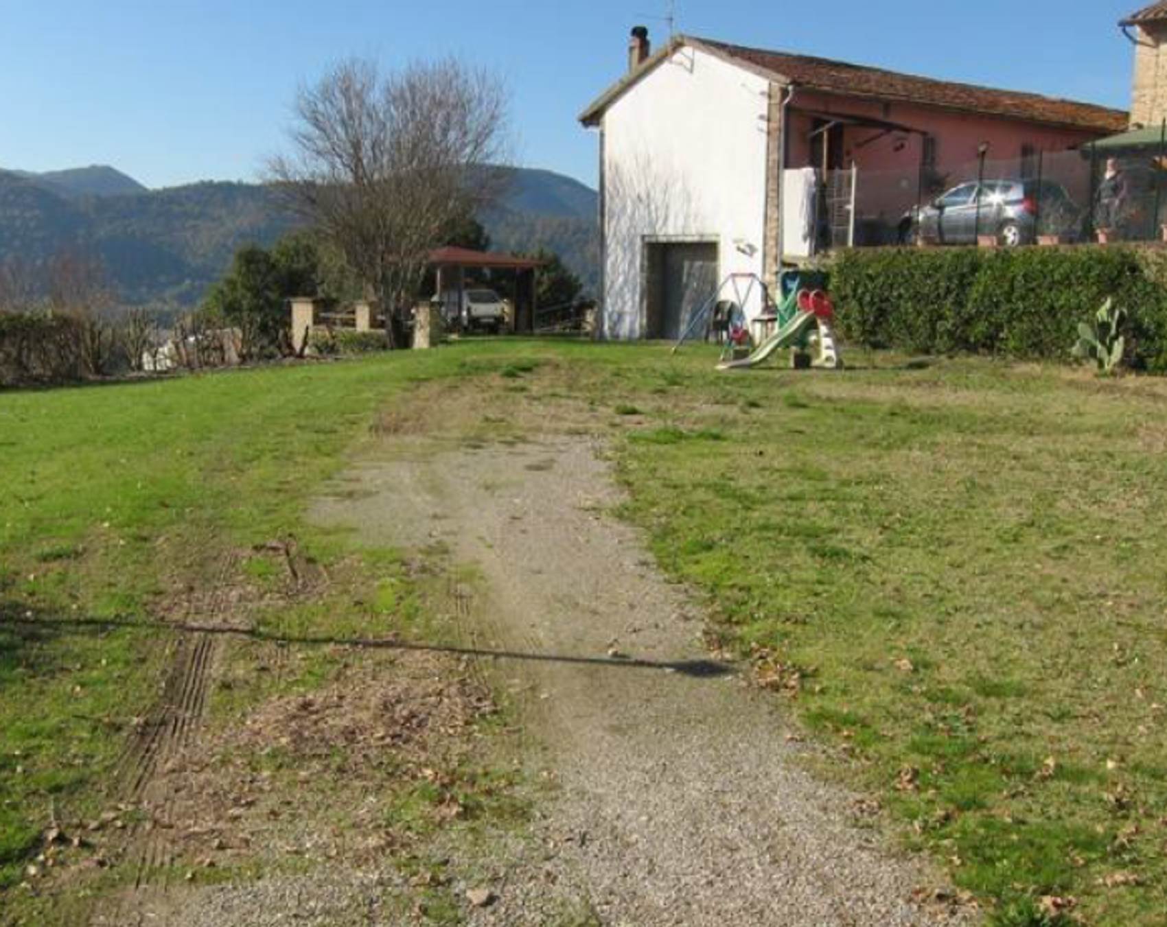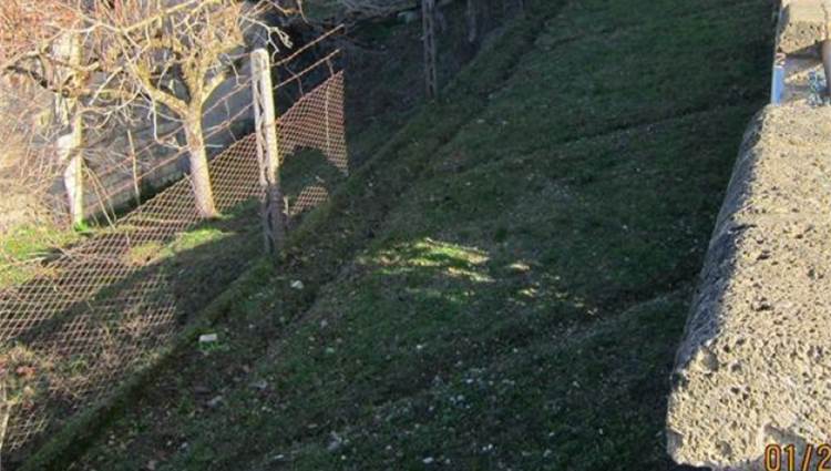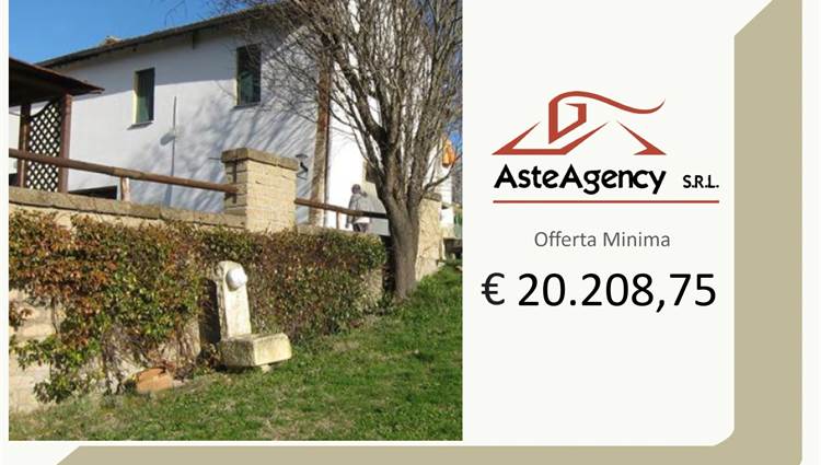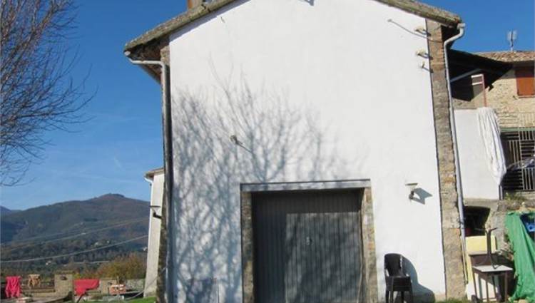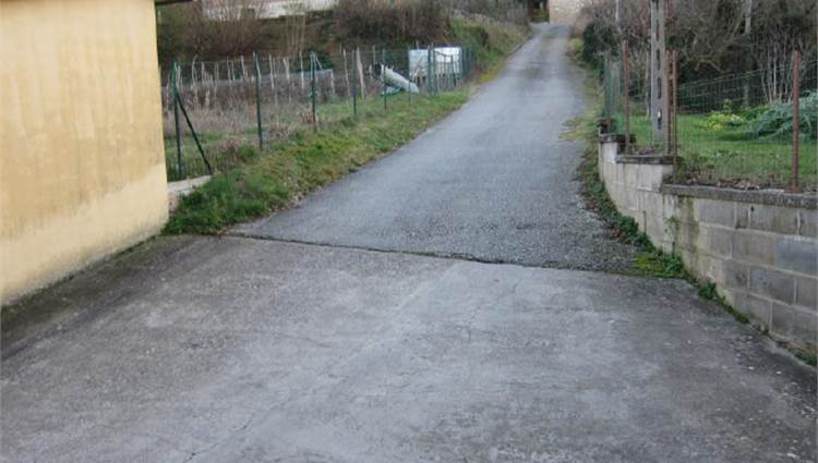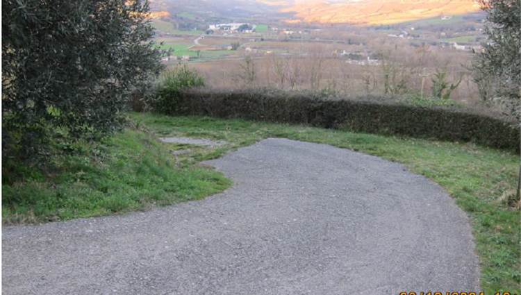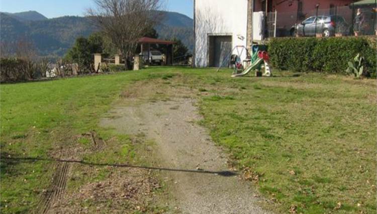 Descrizione sintetica: Appartamento piano primo lato valle / piano terra lato monte composto da cucina-soggiorno, locale di passaggio, locale di passaggio/cameretta, camera da letto e bagno. Garage al piano seminterrato di 32,00 mq. Diritti di 1/3 indivisi sulle aree scoperte esterne.