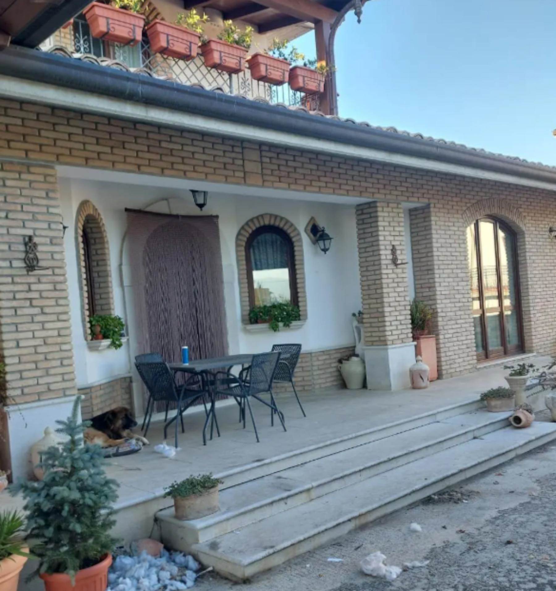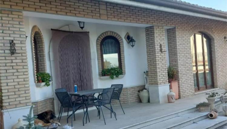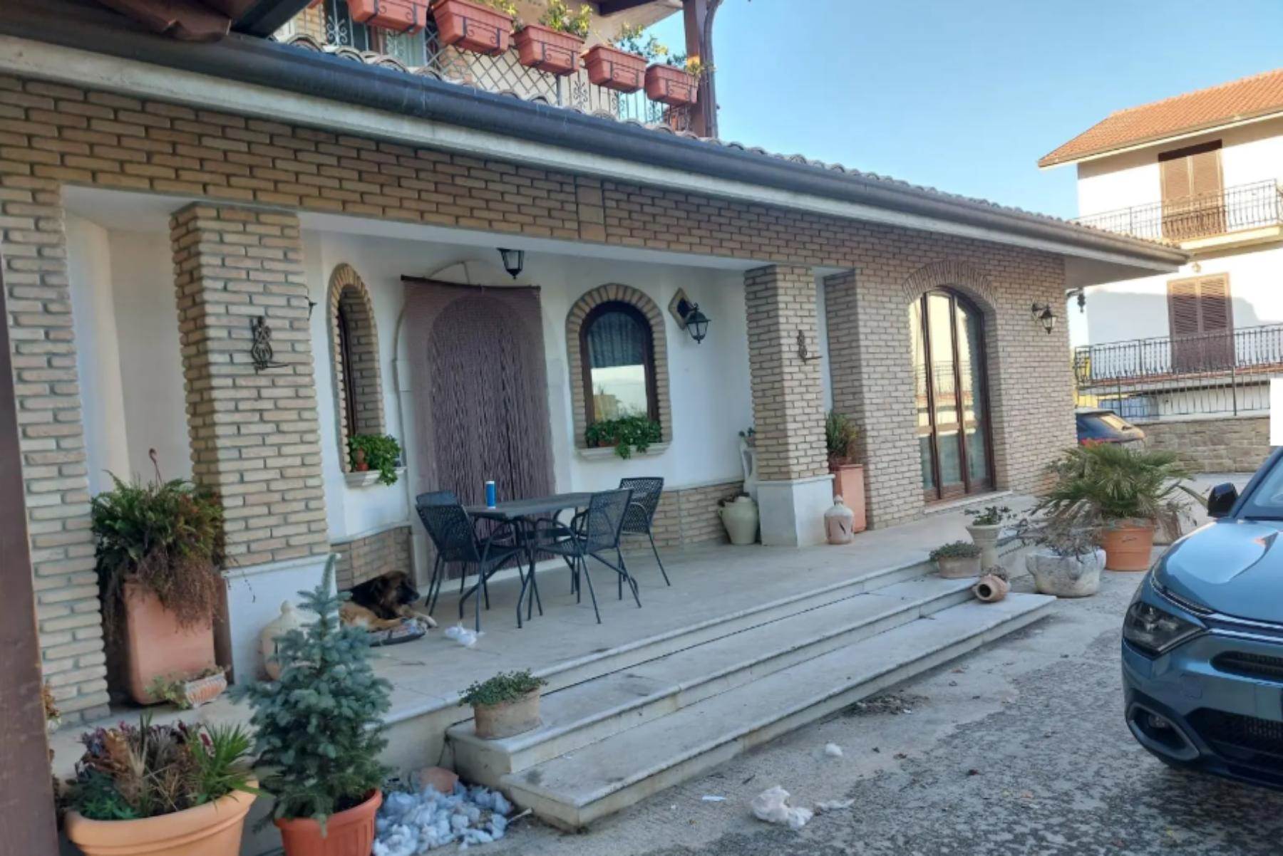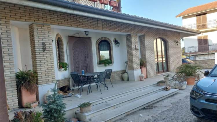 Abitazione unifamiliare sviluppata su due livelli, piano terra e primo piano, con annesso garage al piano terra e un’area di pertinenza privata dotata di gazebo. L’abitazione si sviluppa su due livelli ed è composta, al piano terra, da un ampio atrio dal quale si accede, sulla sinistra, alla cucina e alla zona pranzo, mentre frontalmente si apre un disimpegno che conduce a due camere e un bagno. Sempre al piano terra alla destra dell’atrio, si trova un piccolo ripostiglio e un ulteriore disimpegno che porta a un’altra camera e un’ampia tavernetta. All’interno dell’atrio è collegata la scala di collegamento col piano primo, che comprende un disimpegno, un bagno e due camere affacciate all’esterno attraverso due terrazzi coperti, situati rispettivamente sul prospetto principale e su quello laterale. Adiacente alla tavernetta e collegato ad essa si trovano il garage e il magazzino.