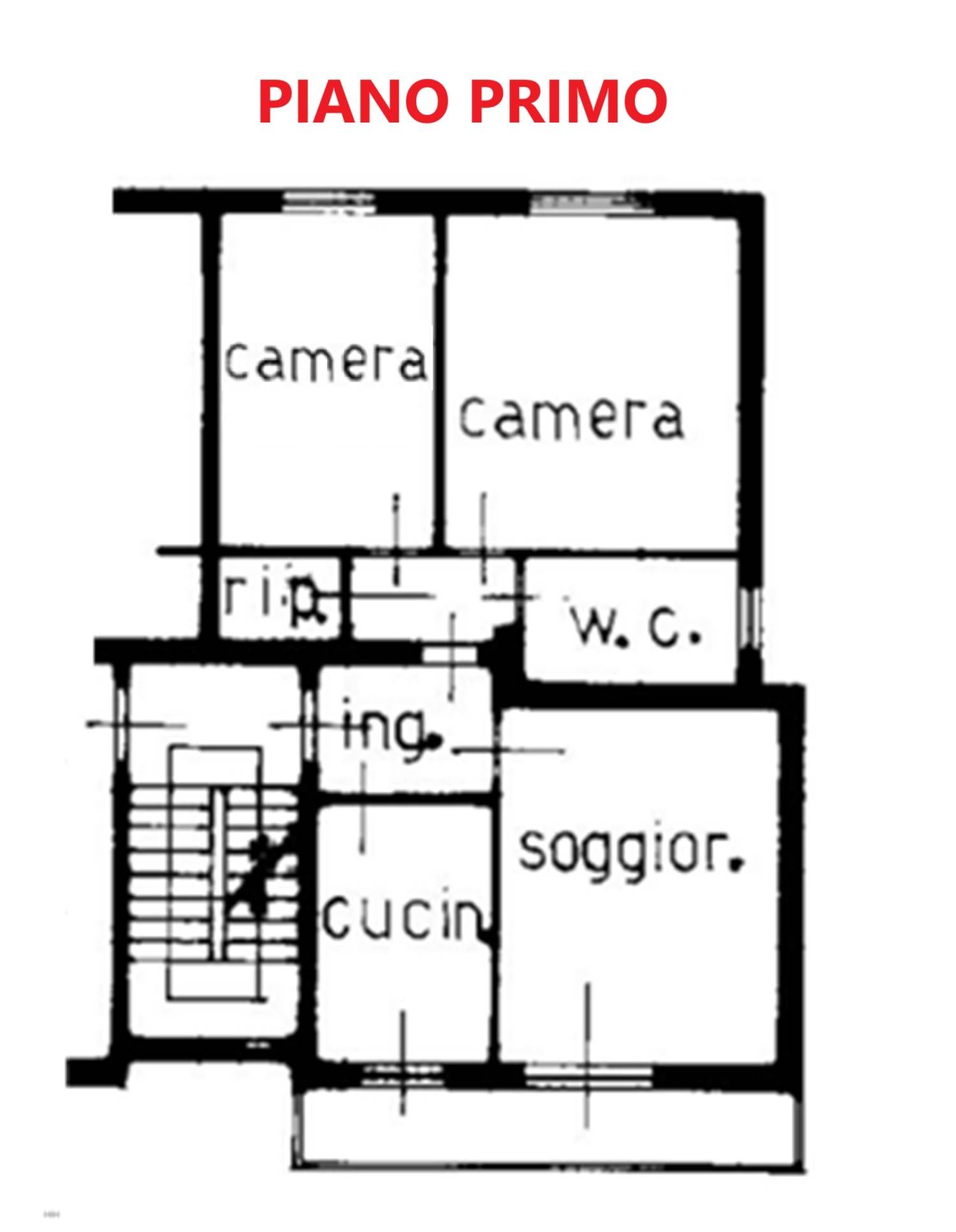 Trattasi di appartamento al piano primo composto da un ingresso, una cucina, un soggiorno, un disimpegno, un ripostiglio, due camere, un bagno ed una terrazza.
