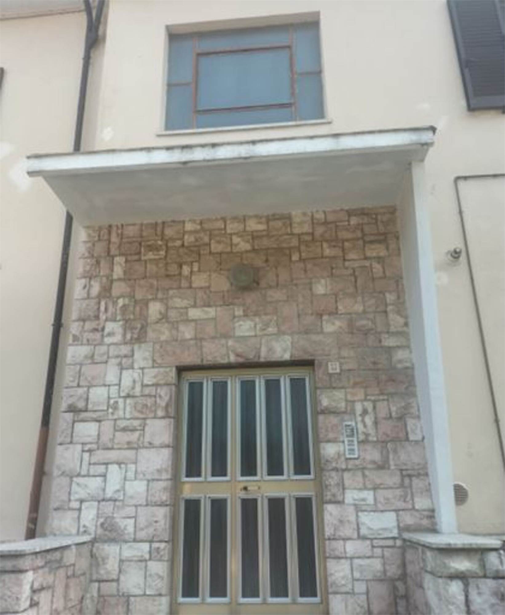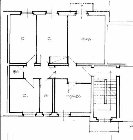 Appartamento posto al piano primo composto da ingresso/corridoio, cucina, soggiorno, tre camere, bagno, ripostiglio e balcone di mq 2,00. Cantina al piano sotto strada di mq 25,00.