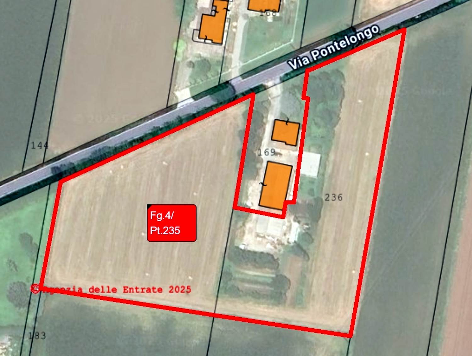 Descrizione sintetica: Trattasi di due terreni agricoli limitrofi (che conglobano e circondano il compendio residenziale e produttivo di cui ai lotti 1, 2 e 3), costituiti da superfici coltivate a seminativo aventi una superficie, rispettivamente, di 6.857 mq e 6.873 mq.