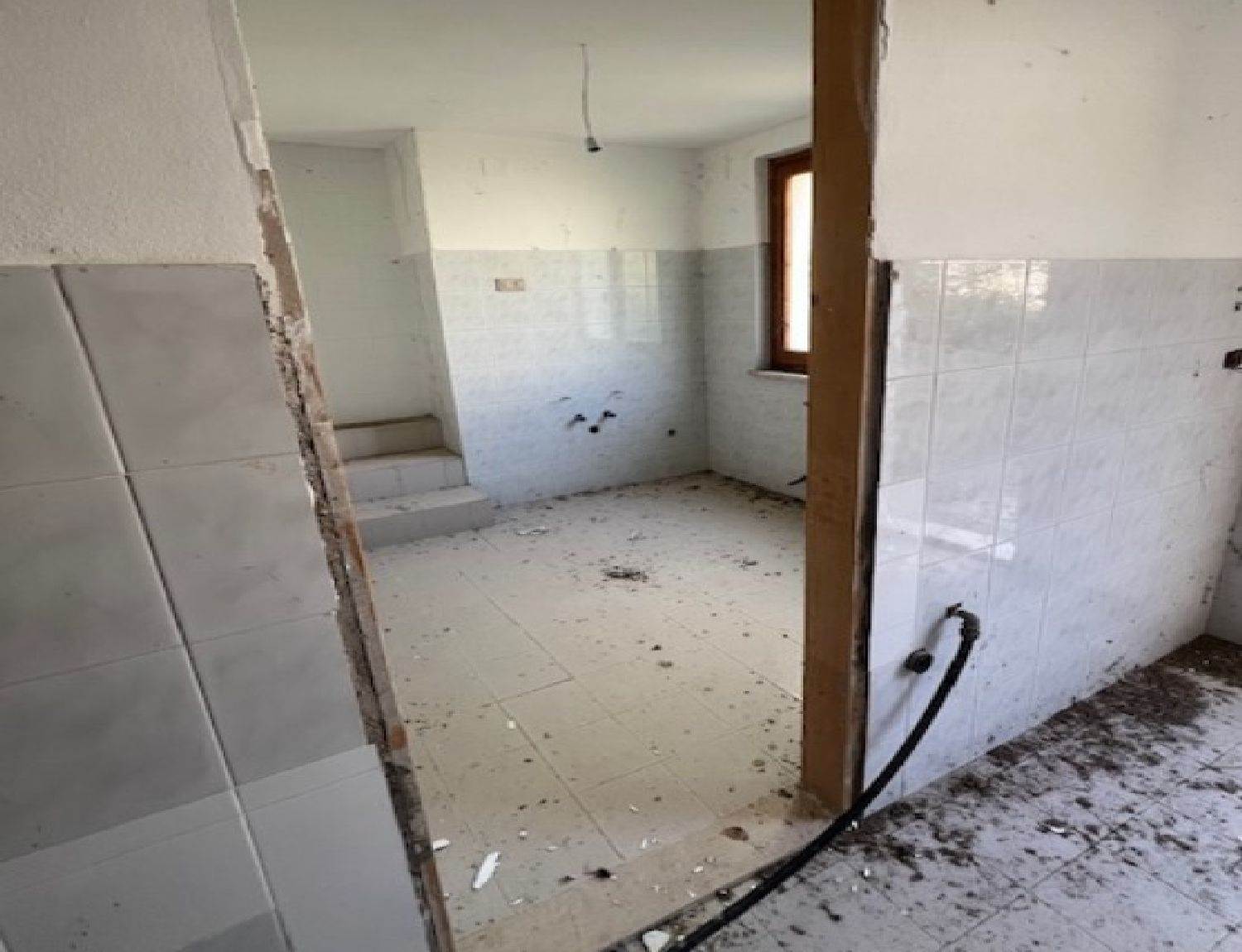 • Piano Primo della superficie di Mq. 94,50 circa, costituito da soggiorno, cucina, due camere, bagno e locale fondaco con servizi della superficie di Mq. 52,50 circa.