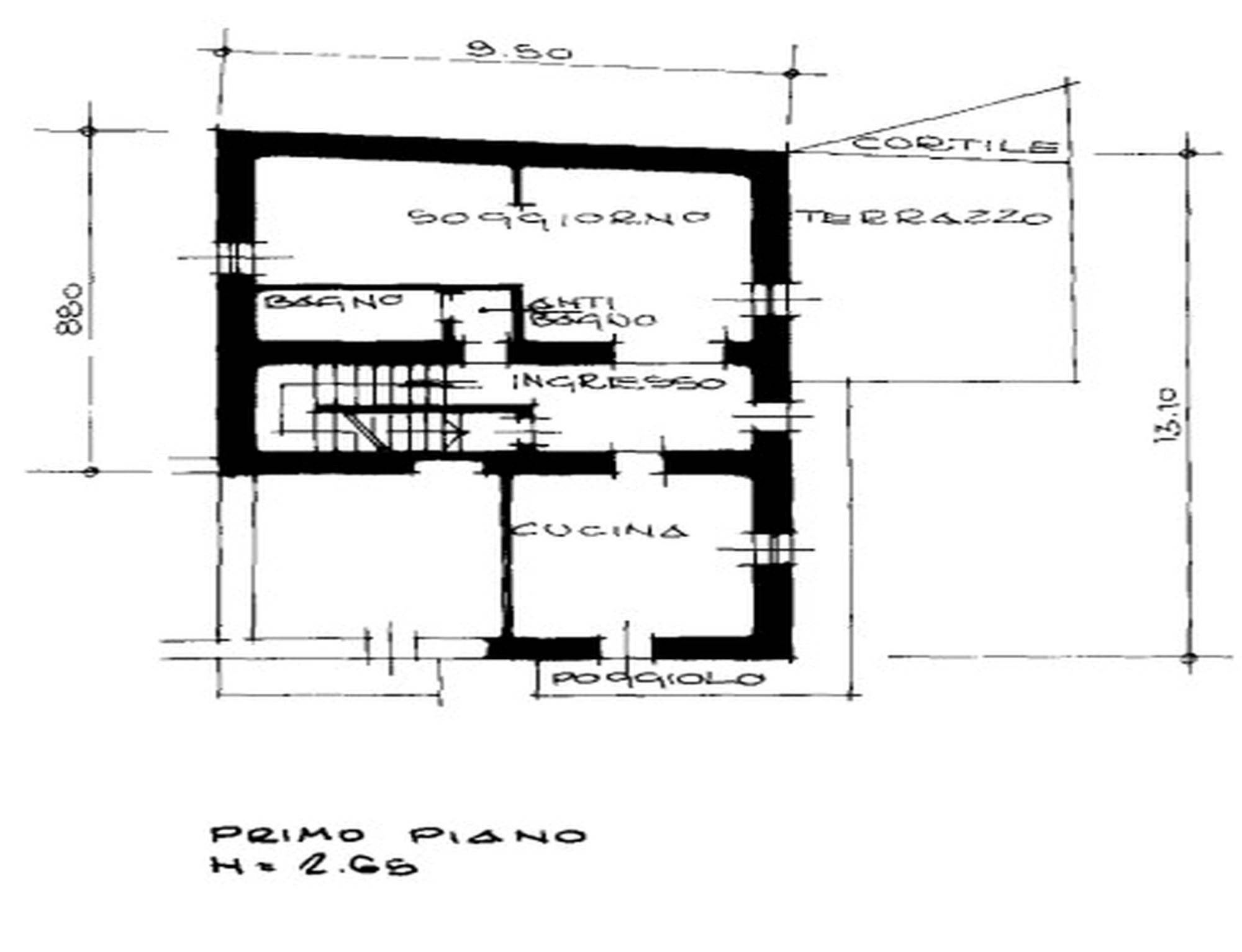 Piena proprietà di immobile ristrutturato negli anni '90, si articola su quattro piani. Si accede all'immobile dal piano terra ed attraverso un vano scala si prosegue al piano primo e da questo con scala interna al piano secondo ed ancora al piano sottotetto. Il piano terra è adibito a cantine e locali realizzati al grezzo. L'edificio si presenta con la zona giorno (piano primo) composta da cucina, sala soggiorno, un wc, due balconi ed un terrazzo (al grezzo) che sovrasta un locale a suo tempo adibito a stalla; zona notte (situata al piano secondo) tre camere da letto, bagno e balcone. Il piano sottotetto risulta da ultimare, non è abitabile ed è adibito a deposito.