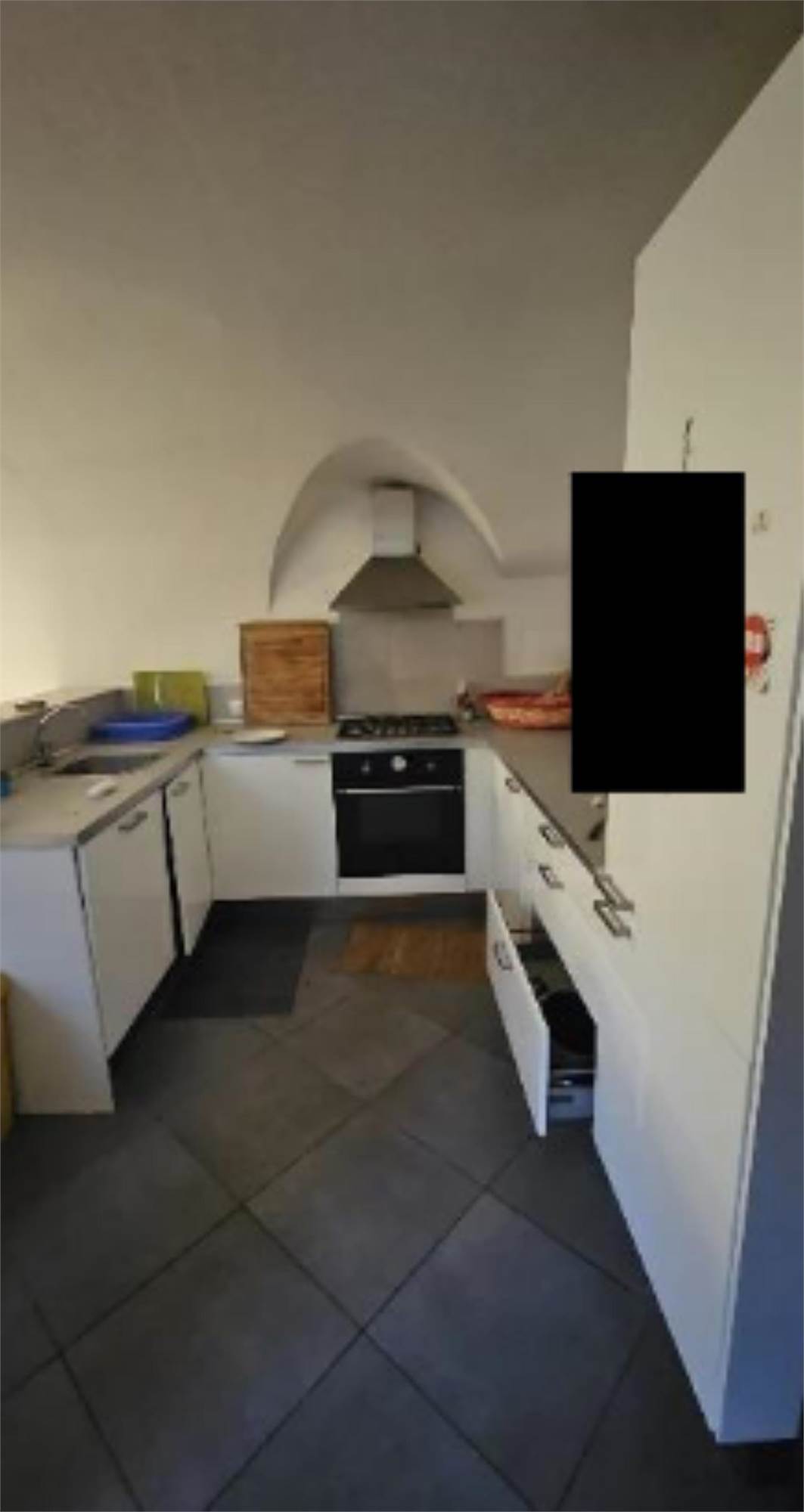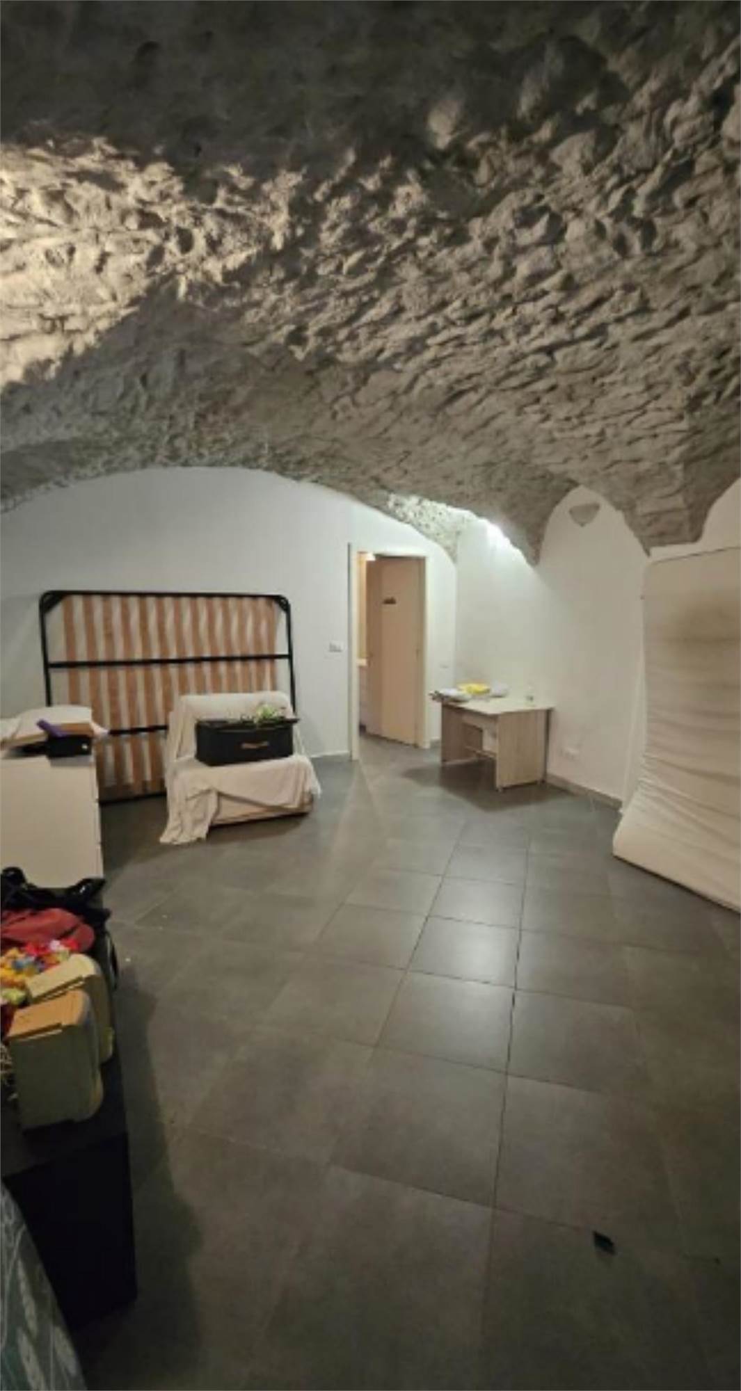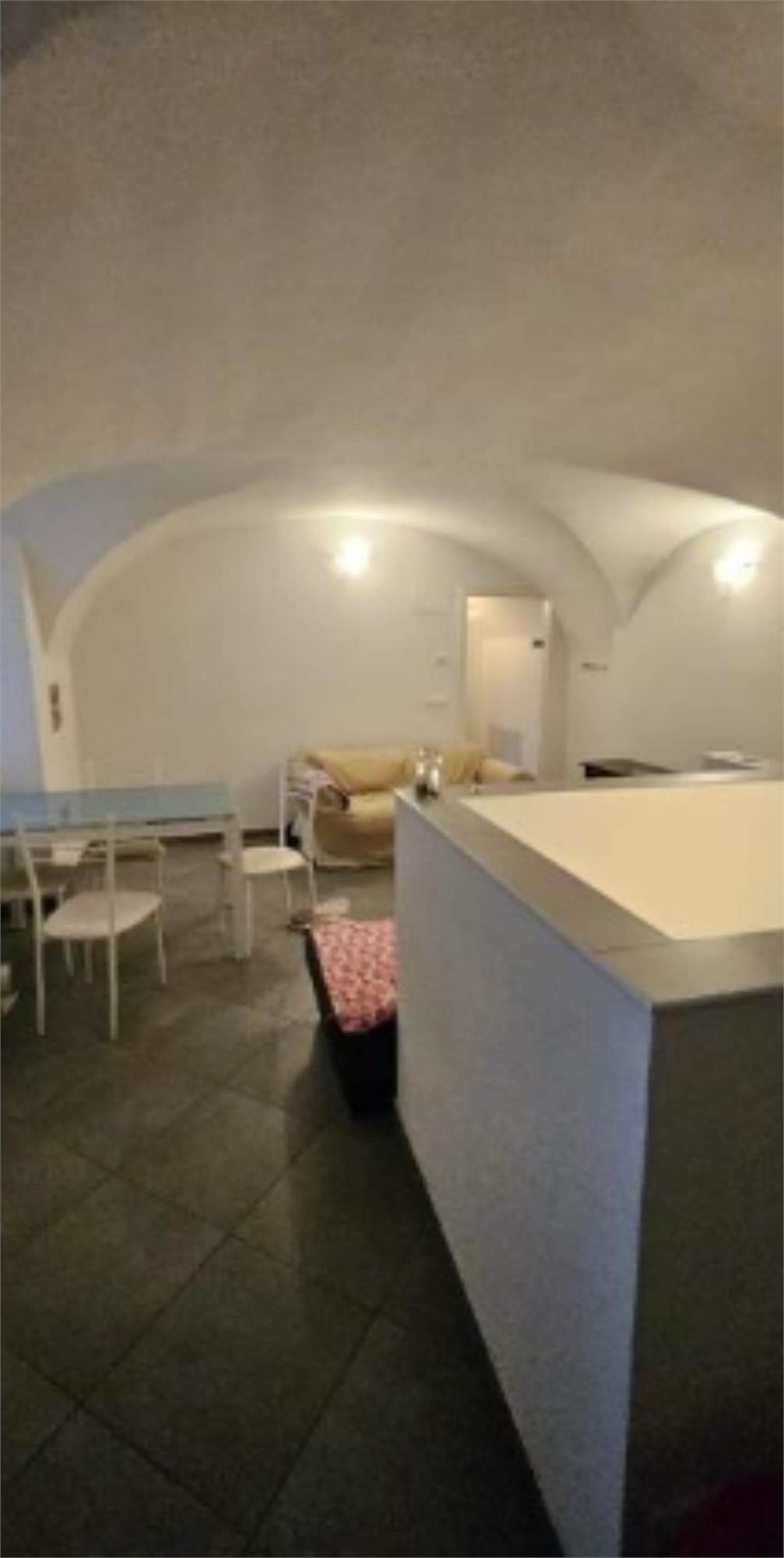 Appartamento posto al piano terra e composto da cucina, salotto e bagno, al piano seminterrato ci sono due locali contigui collegati da una porta di cui uno adibito a camera da letto. Al piano interrato c'è cantina di 2,00 mq.
