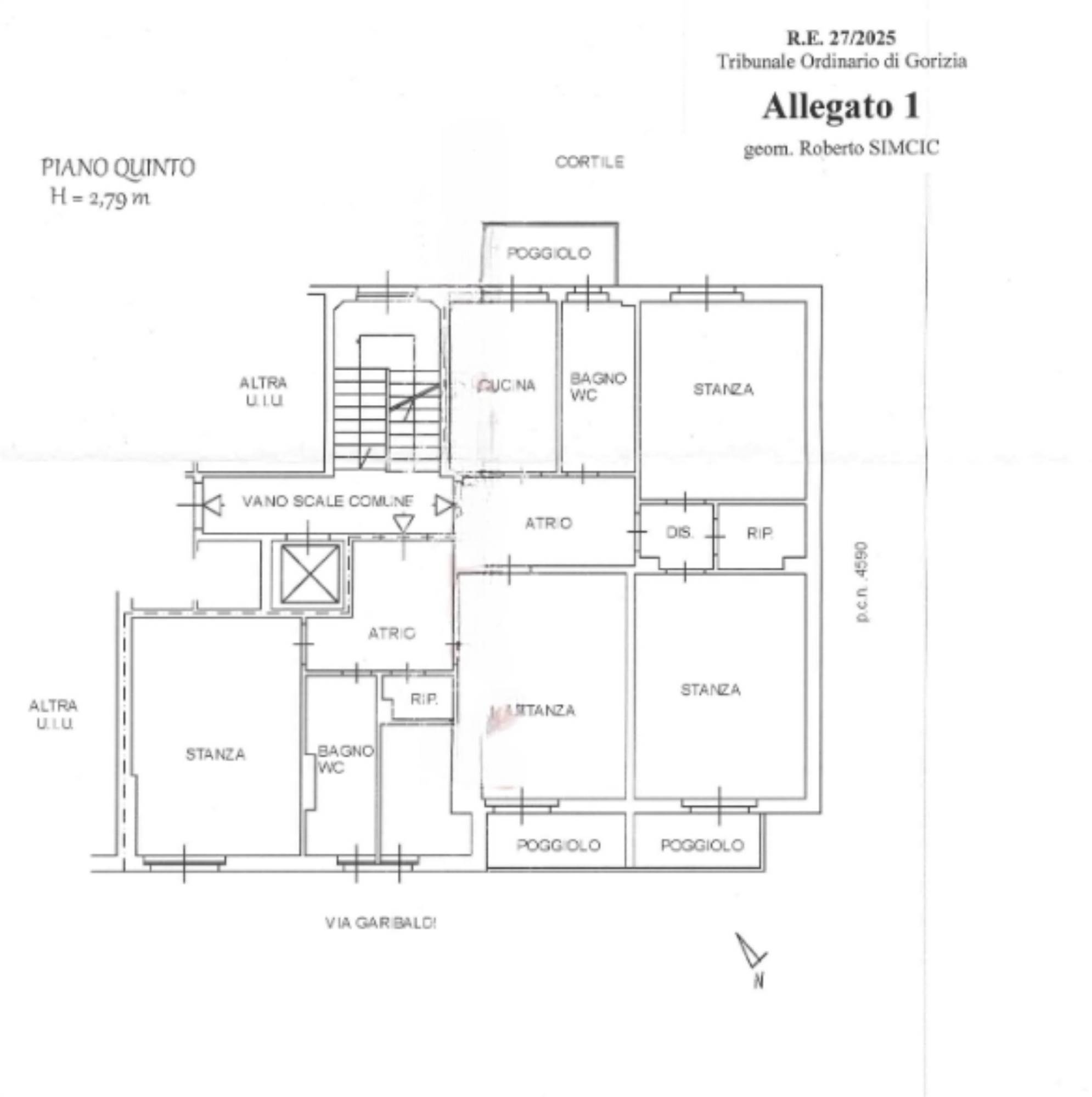 Appartamento sito al quinto piano costituito due bagni, quattro stanze, una cucina e tre poggioli.