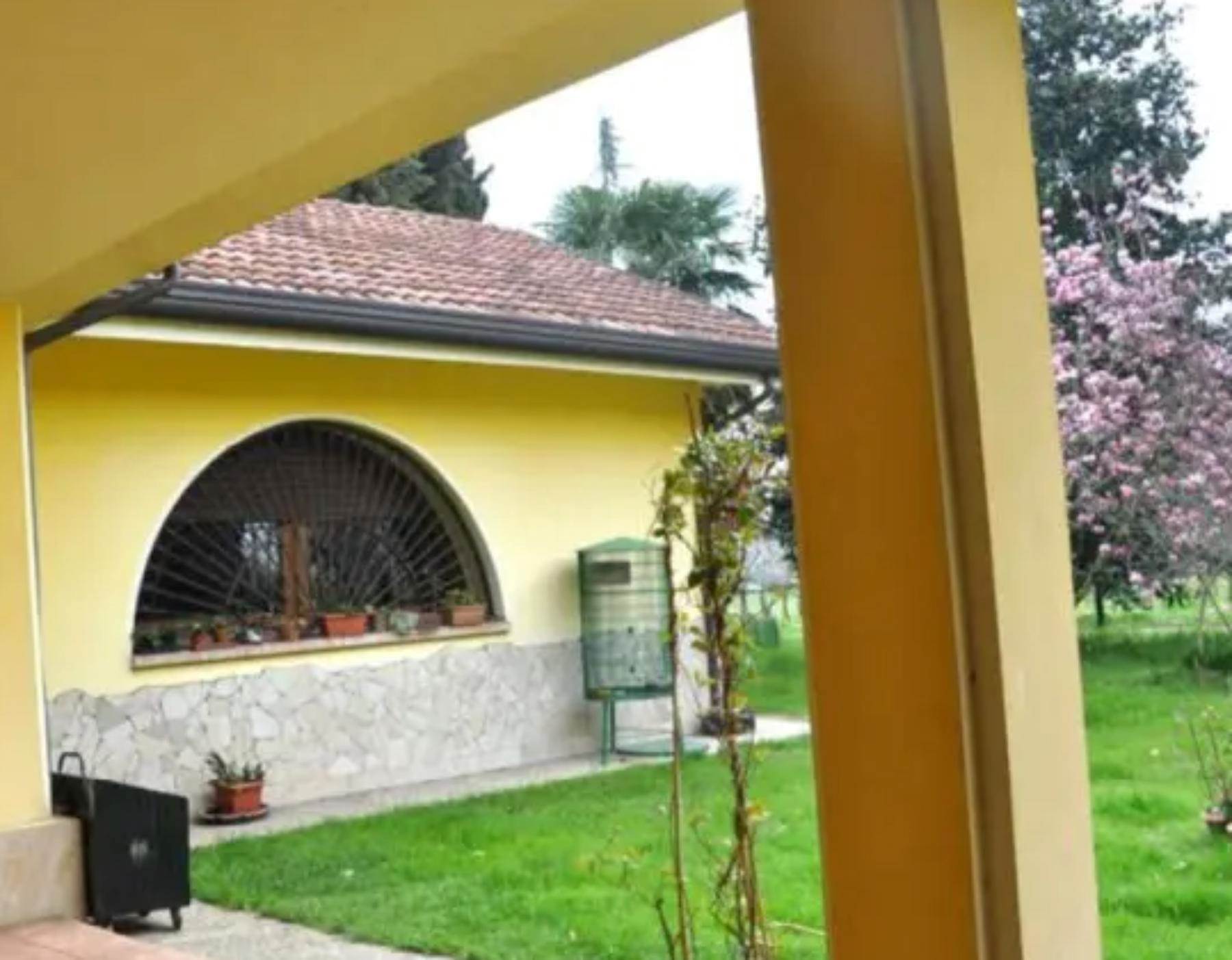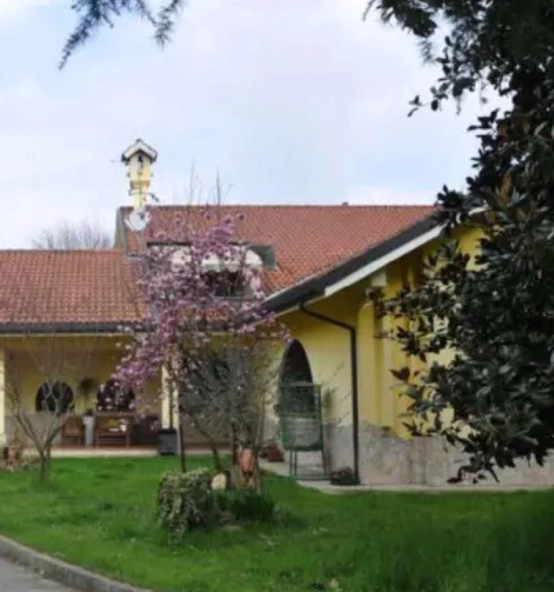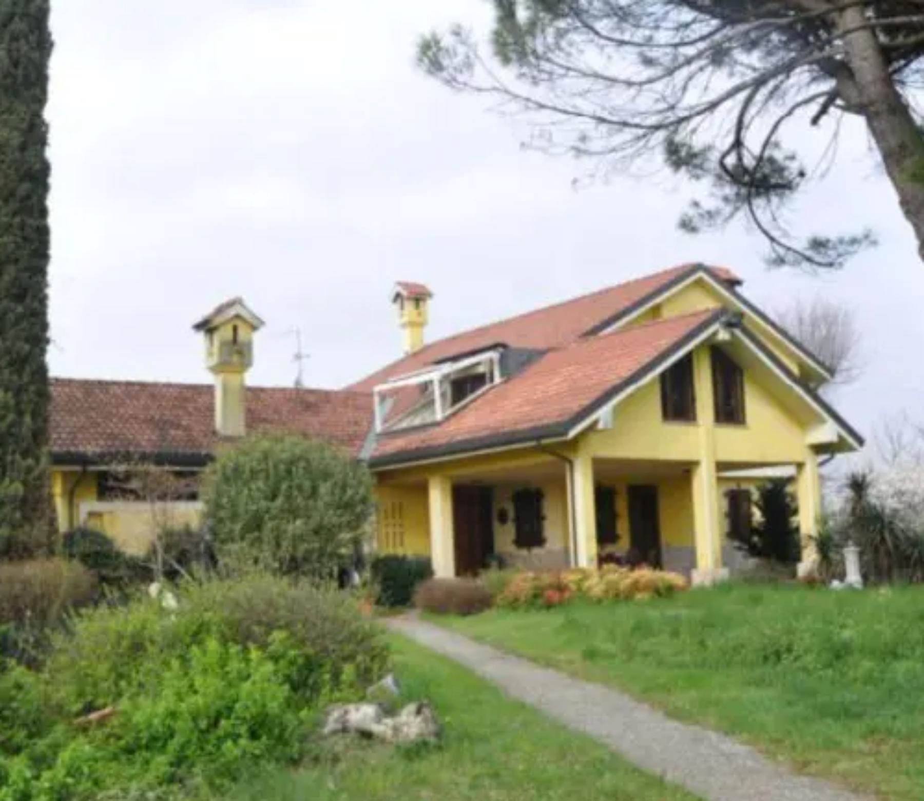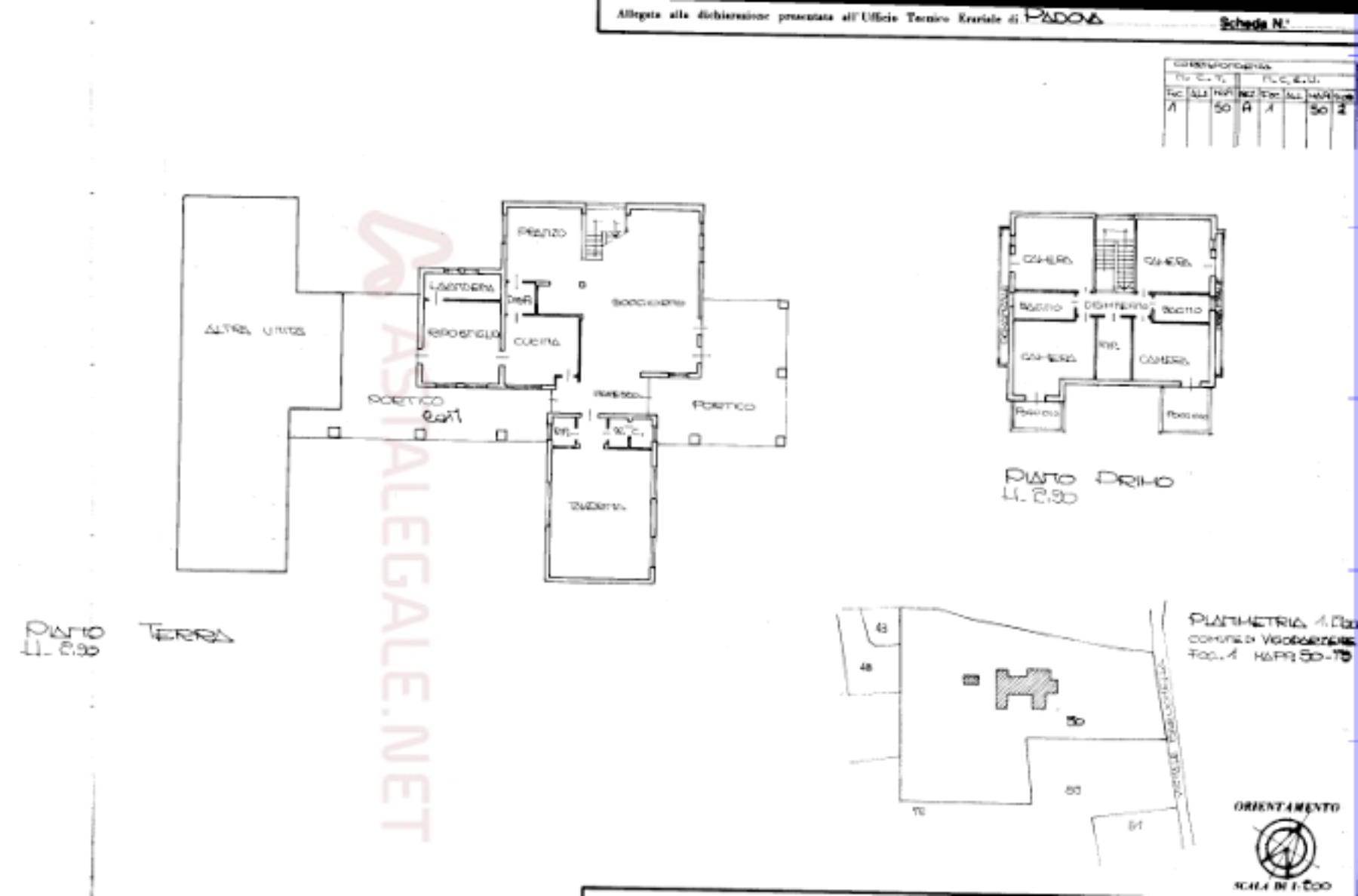 Descrizione sintetica: villa con ampio giardino e terreno agricolo contiguo, composta da: al piano terra zona giorno molto ampia adibita ad ingresso, soggiorno e sala da pranzo, cucina, ripostiglio, lavanderia con centrale termica e sull'ala sud, a tutta altezza, un vano in cui è presente una parete attrezzata con cucina, un bagno e un piccolo ripostiglio; al piano primo quattro stanze da letto (di cui 2 con terrazze di totale mq 16,90), due bagni e guardaroba, oltre ad una quinta camera con bagno nel sottotetto del portico est, nonché deposito, cantina con ricovero attrezzi in corpo collegato all'abitazione principale mediante portico.