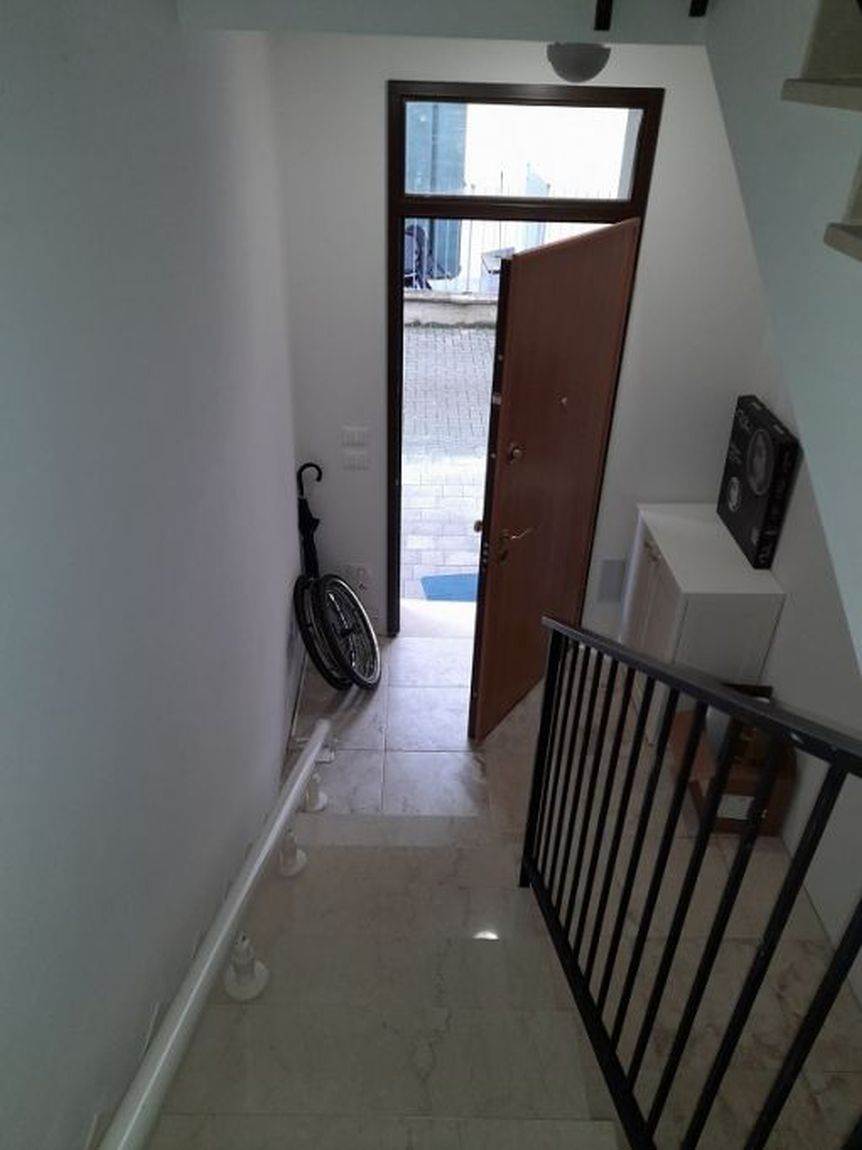Descrizione sintetica: Immobile situato al primo ed ultimo piano di 67 mq con posto auto scoperto di pertinenza. L’accesso avviene dal portico comune a più unità, tramite una porta blindata si entra nel piccolo ambiente, a mezzo di una scala si procede per il primo piano dove un ampio pianerottolo permette l’accesso a due unità abitative, a sinistra troviamo l’appartamento composto da soggiorno con angolo cottura, disimpegno, bagno, ripostiglio e camera da letto, l’intero lato nord è occupato esternamente da un lungo balcone. L’unità è termoautonoma dotata di caldaia murale a condensazione.