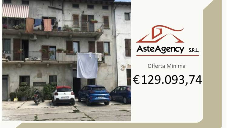 Appartamento posto al piano secondo composto da cucina, soggiorno, camera da letto e bagno e dotato di ampi spazi accessori al piano terzo. Separato locale magazzino di 40,00 mq.
