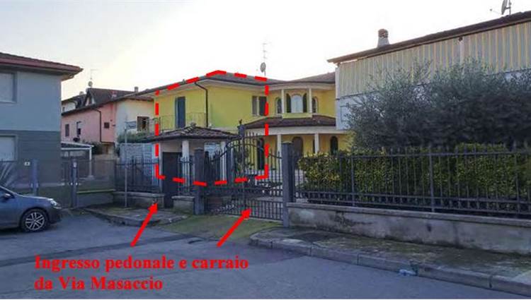 Descrizione sintetica: Appartamento plurilocale sito all’interno di una villa trifamiliare, con corte comune condivisa, e zona autorimessa al piano interrato. L'unità immobiliare si sviluppa su due piani fuori terra più piano interrato con superficie complessiva di circa 193 mq a cui si aggiungono spazi esterni in comune. Al piano terra rialzato si trovano soggiorno e cucina comunicanti, al piano primo due camere da letto, una stanza guardaroba e due bagni. Al piano interrato si trovano un bagno, una taverna e una autorimessa. Il riscaldamento è autonomo a pavimento e termoarredi nei bagni. Sulla copertura sono installati pannelli fotovoltaici. Il condizionamento è installati in quasi tutti gli ambienti.