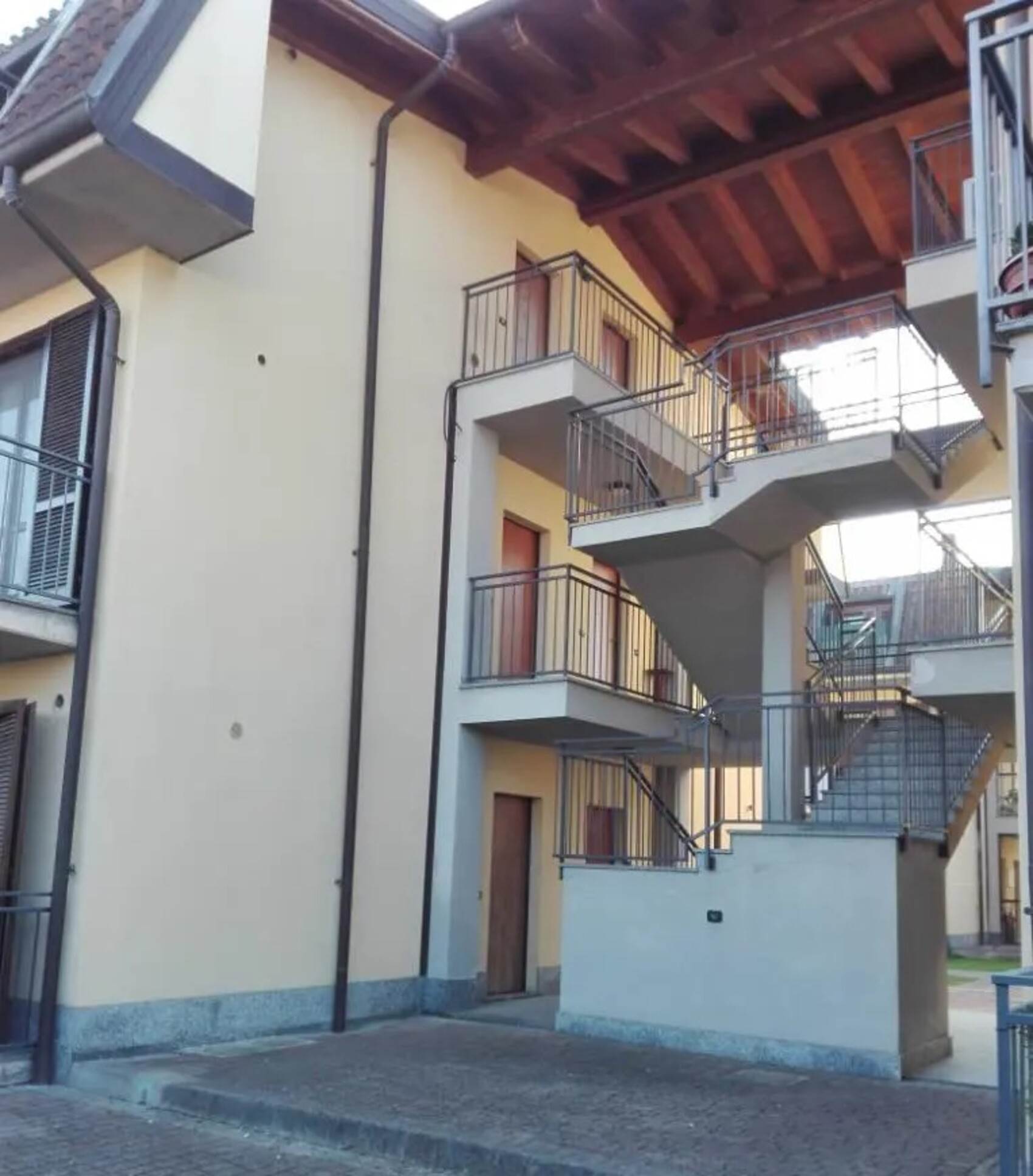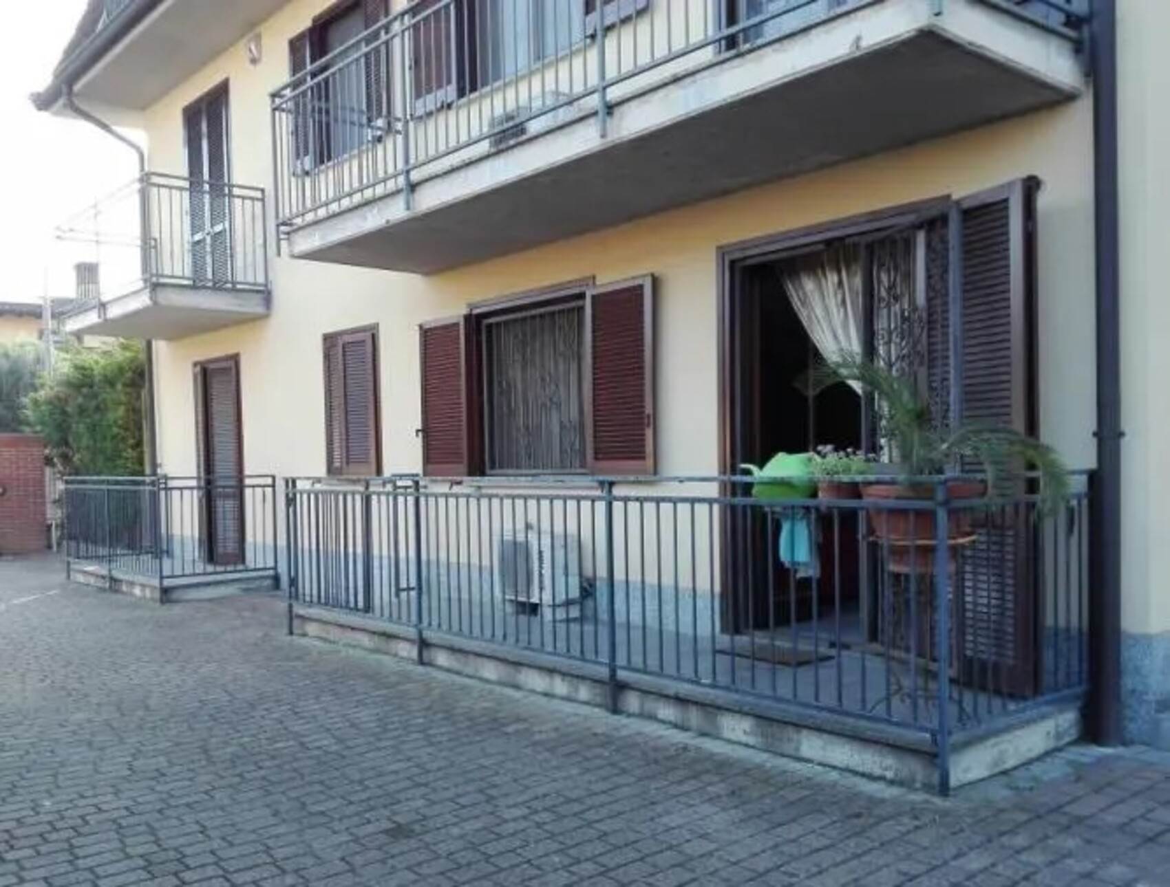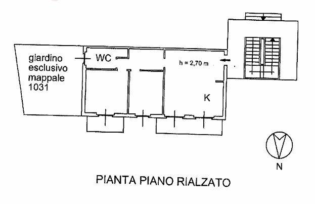 Descrizione sintetica: Appartamento al piano rialzato composto da ingresso, cucina-soggiorno, corridoio, due camere e bagno, oltre a due balconi e giardino di pertinenza. Completa la proprietà un box auto al piano terra di 27,16 mq. Balconi: 7,69 mq e 4,20 mq. Giardino: 32,72.