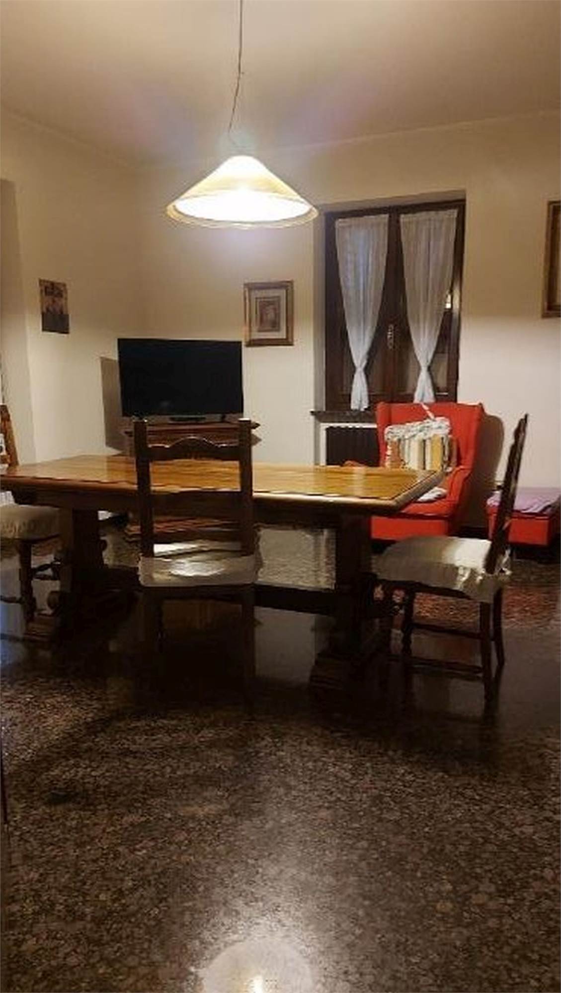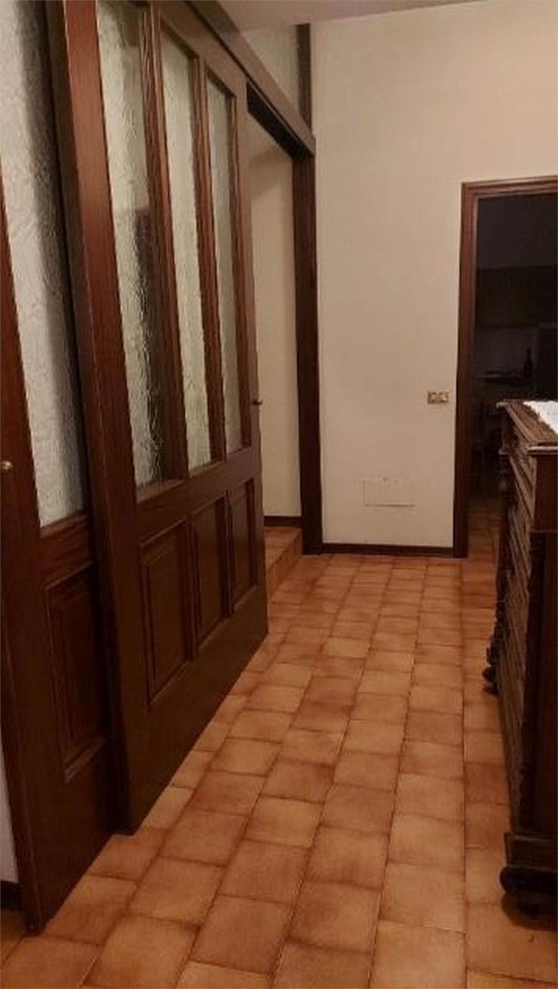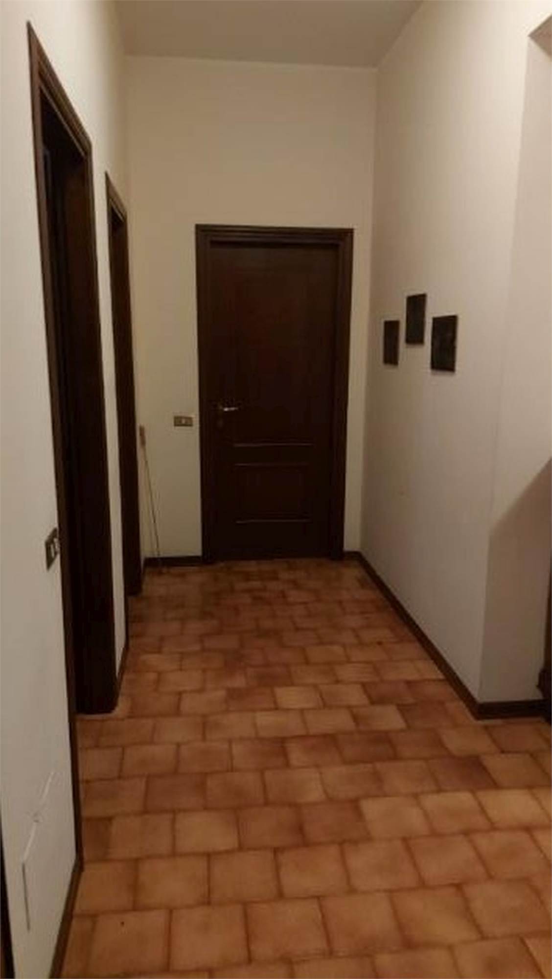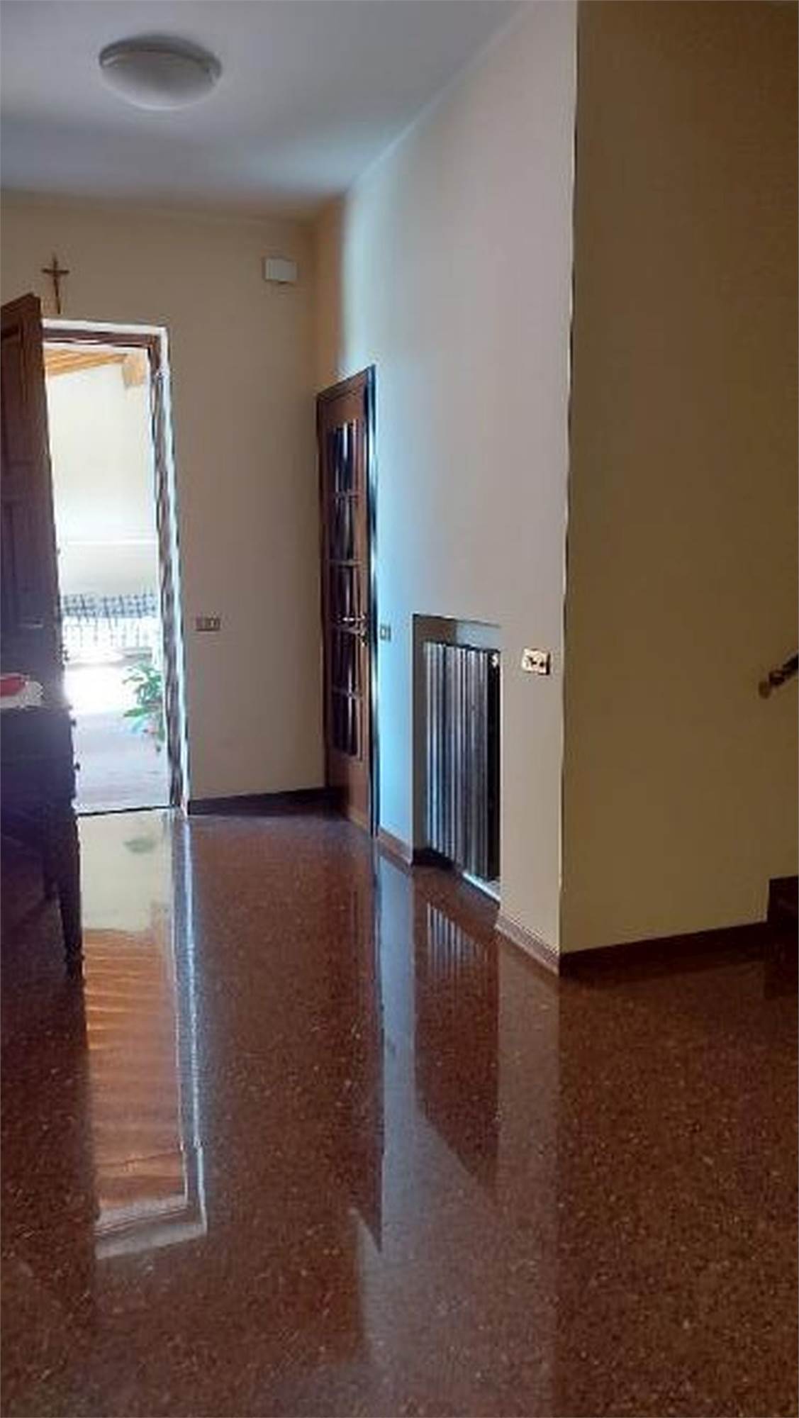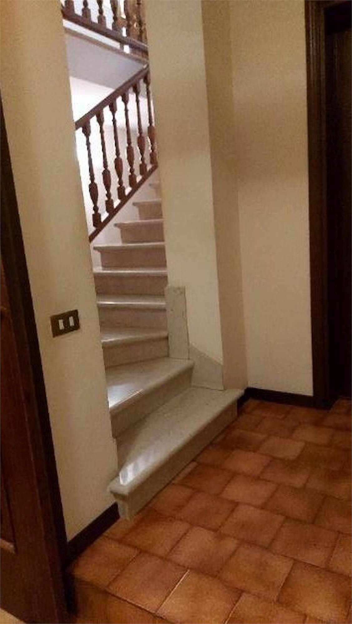 Descrizione sintetica: Villetta singola di 296 mq in zona agricola con annessa autorimessa. L’immobile si configura come una villetta inserita in un complesso di n. 3 villette a schiera, con un’ala adiacente alle ville adibita a depositi per l’attività agricola. Quadrilocale ampio, con ampia area esterna antistante, in lato sud, e accesso all’autorimessa. Si accede all’unità abitativa attraversando un’ampia corte. Attraverso un grande portico con copertura in legno a vista, si accede al vano scala e all’ingresso della zona giorno dell’unità abitativa, dotata di ingresso/ampio salone – cucina separata e tinello/ripostiglio con portico annesso alla cucina. Ad un livello superiore, rialzato di n. 4 alzate, è ubicata la zona notte, dotata di un corridoio, n. 3 camere da letto e un bagno. Due delle tre camere sono dotate di balcone, che si affaccia in lato nord. Attraverso il vano scala si sale al piano primo, che risulta attualmente al rustico, ovvero è dotato di serramenti esterni e di impianto elettrico, ma non è dotato di intonaci e pavimenti. Il piano primo è suddiviso in due ampie zone, accatastate come soffitta. Attraverso il medesimo vano scala, si scende al piano seminterrato, ove sono presenti la centrale termica, un ripostiglio adibito a cucina, un bagno, una cantina adibita a camera e un locale di sgombero adibito a taverna, una cantina, un corridoio che conduce all’autorimessa doppia. È inoltre di proprietà di 1/3 il terreno di accesso carraio - strada sterrata. Sono inclusi ulteriori terreni agricoli affittati.