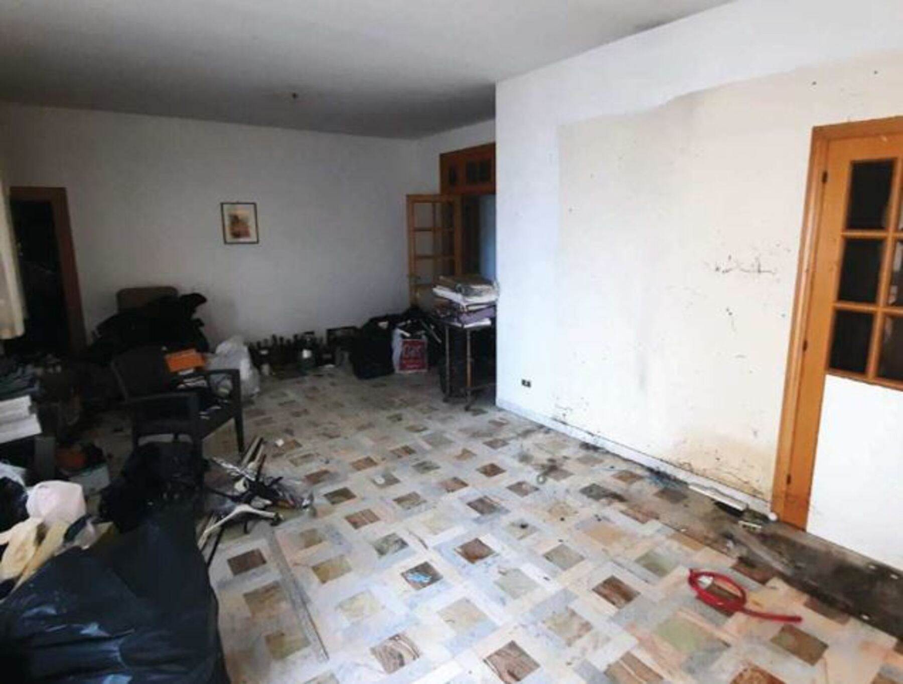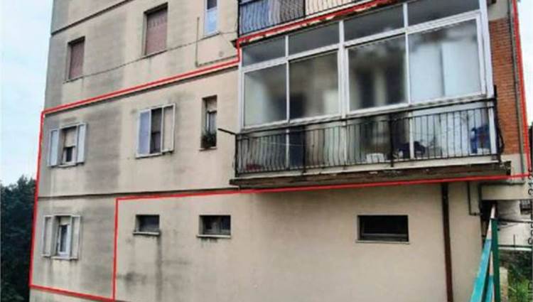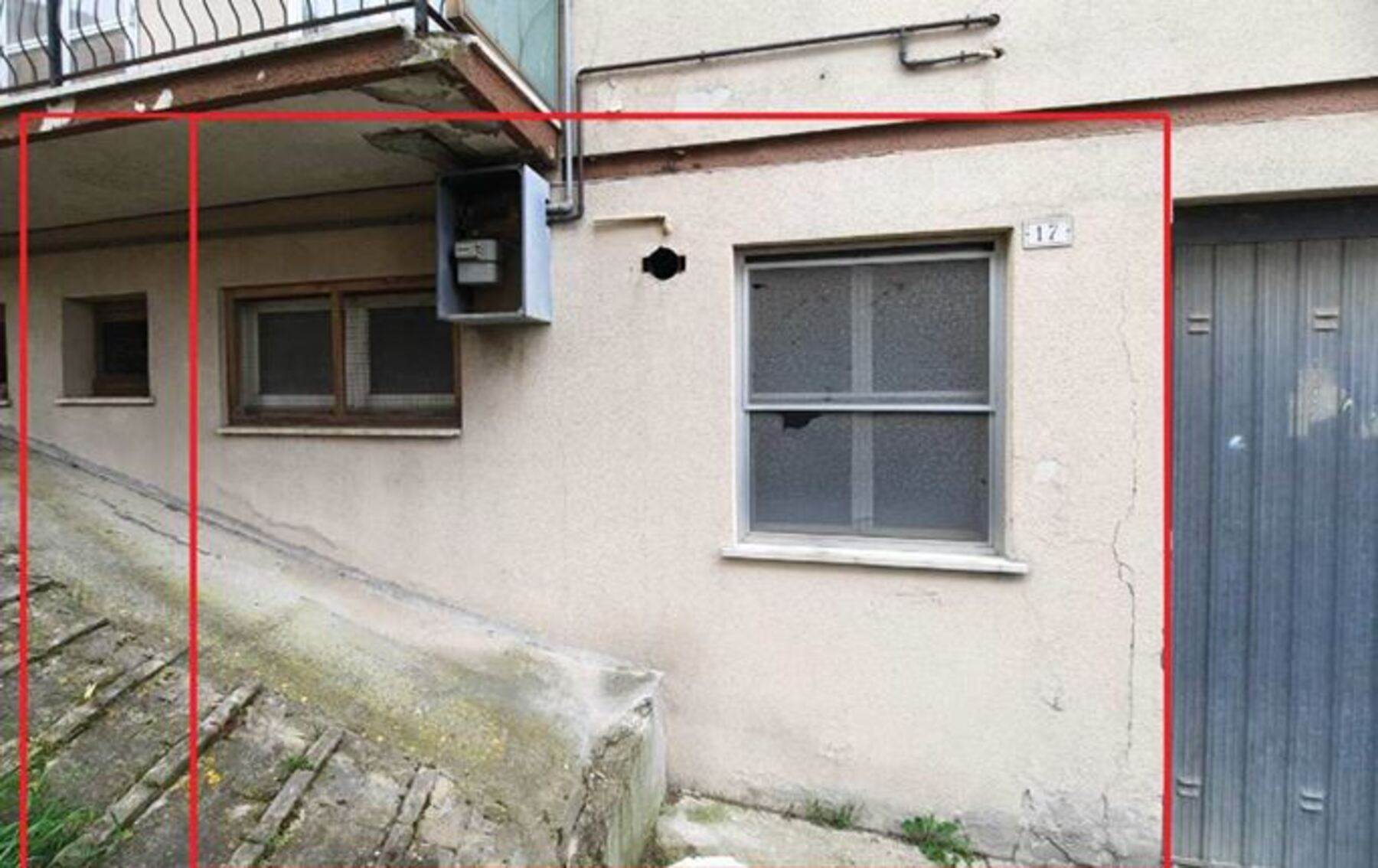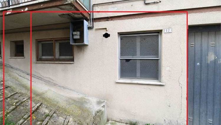 Descrizione sintetica: appartamento al piano terra rialzato composto da soggiorno con angolo cottura, due camere, bagno e balcone di mq 4,80, un locale pluriuso al piano 1° sotto strada di mq 24,66 , annessi garage di mq 18,75 e cantina di mq 5,67.