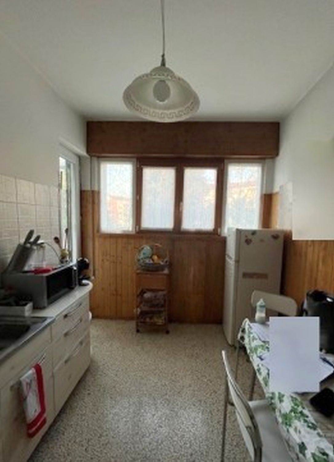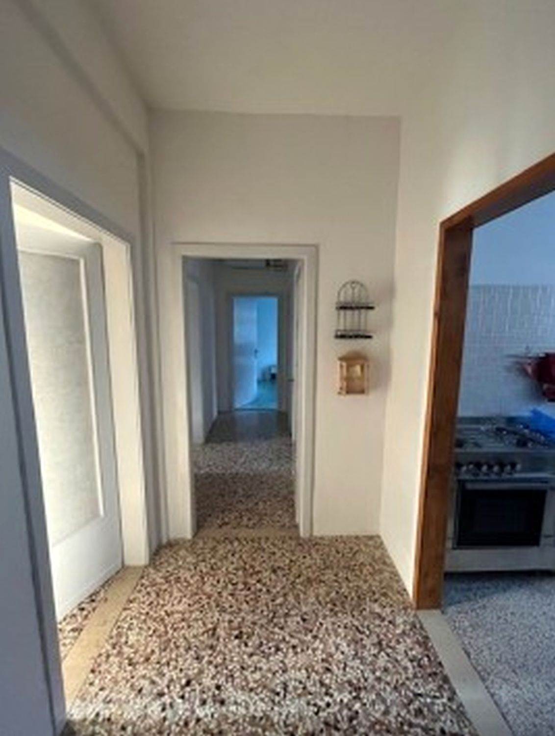 Trattasi di appartamento ( mq 90,00) al piano secondo con cantina al piano terra. L’abitazione, inserita in un complesso residenziale e parte di un fabbricato che si sviluppa su cinque piani fuori terra . Risulta composta da cucina, soggiorno, corridoio centrale, due camere, due servizi igienici, terrazzo e veranda. La cantina è accessibile dall’esterno.