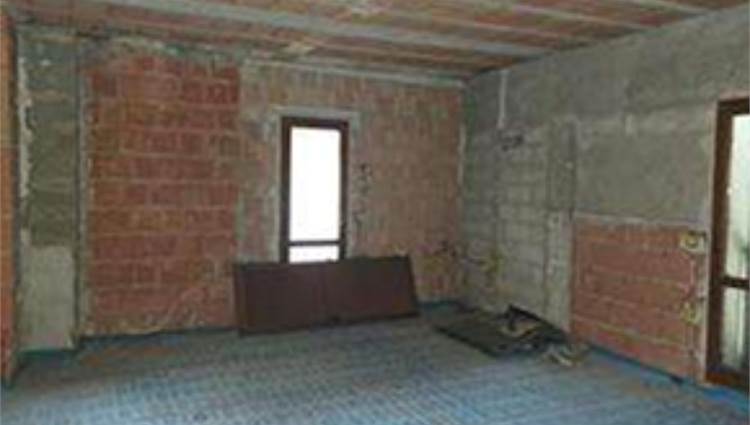 Appartamento: l'appartamento risulta trovarsi allo stato grezzo internamente con le sole tramezzature realizzate, mentre l'esterno risulta completato in ogni sua parte, fatta eccezione della loggia terrazzo dello stesso appartamento. E' suddiviso in soggiorno cucina in vano unico, due camere, ampio ripostiglio utilizzabile come studiolo, bagno, disimpegno, loggia terrazzo coperta, ed un piccolo scoperto esclusivo al piano terra, posto auto esterno di 15 mq.