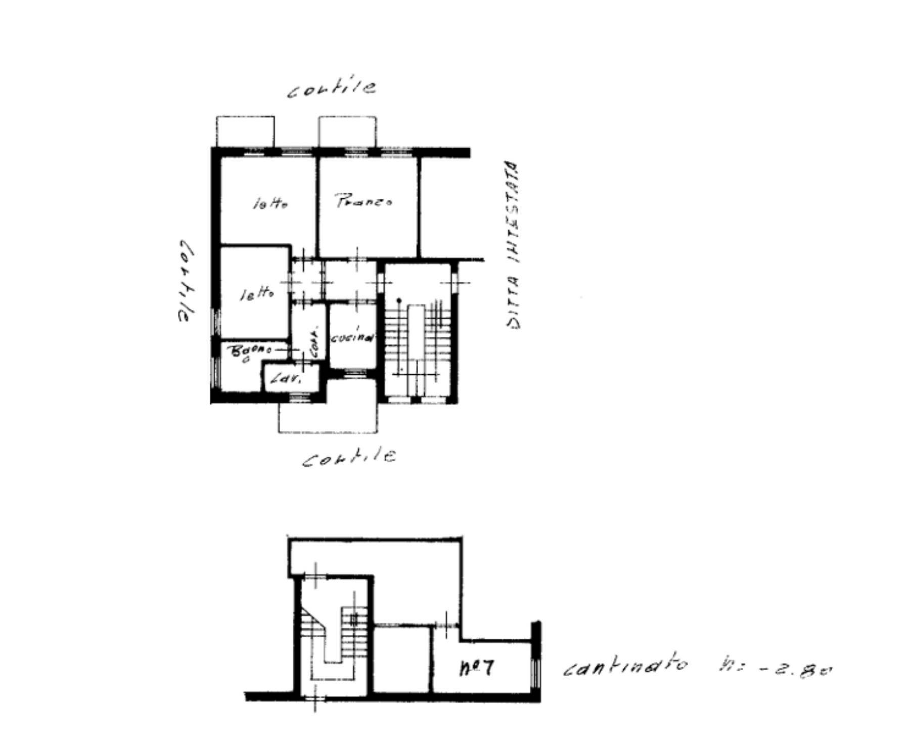 Descrizione sintetica: appartamento posto al piano quarto, composto da soggiorno, cucina, due camere, bagno, disimpegno, tre balconi per totale mq 13,70, cantina di mq 8,00.