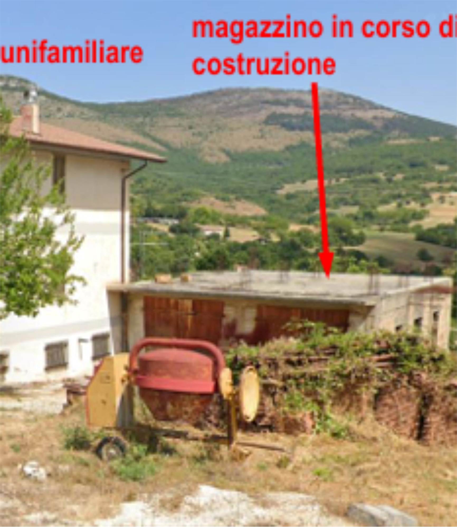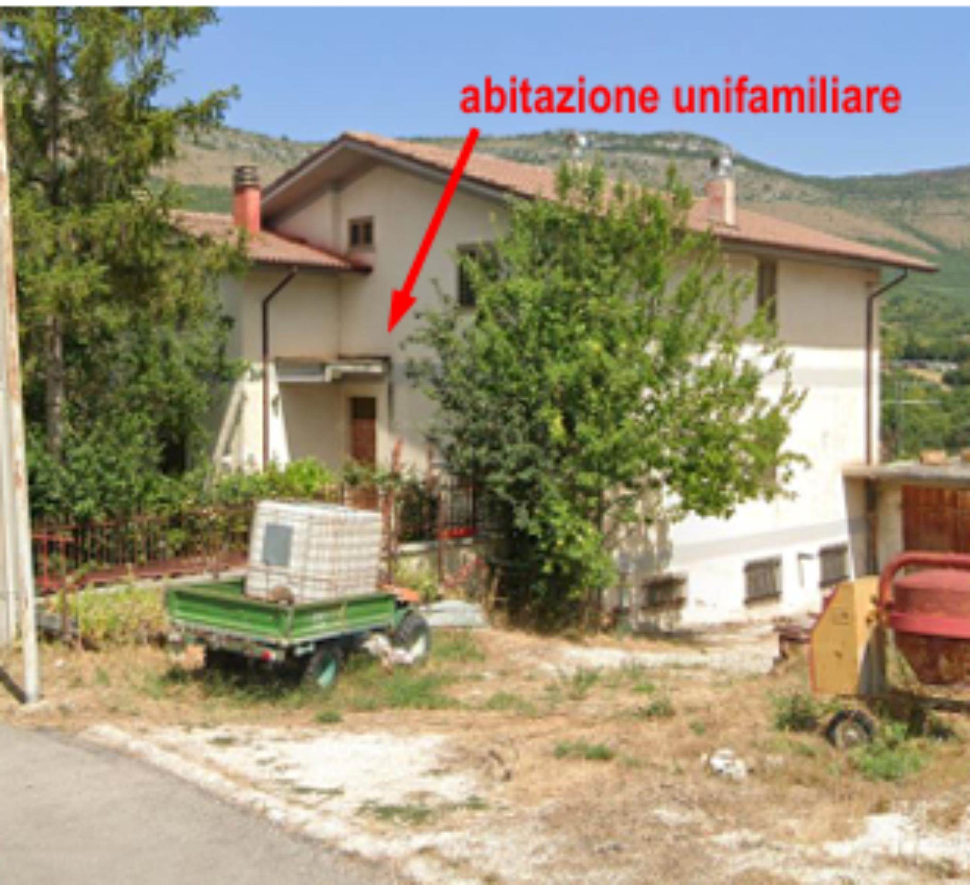 Descrizione sintetica: abitazione con autorimessa di mq 25,00 e porzione di sottotetto e magazzino ancora in corso di costruzione. L'abitazione si compone di soggiorno, cucina, pranzo, tre camere e due bagni.