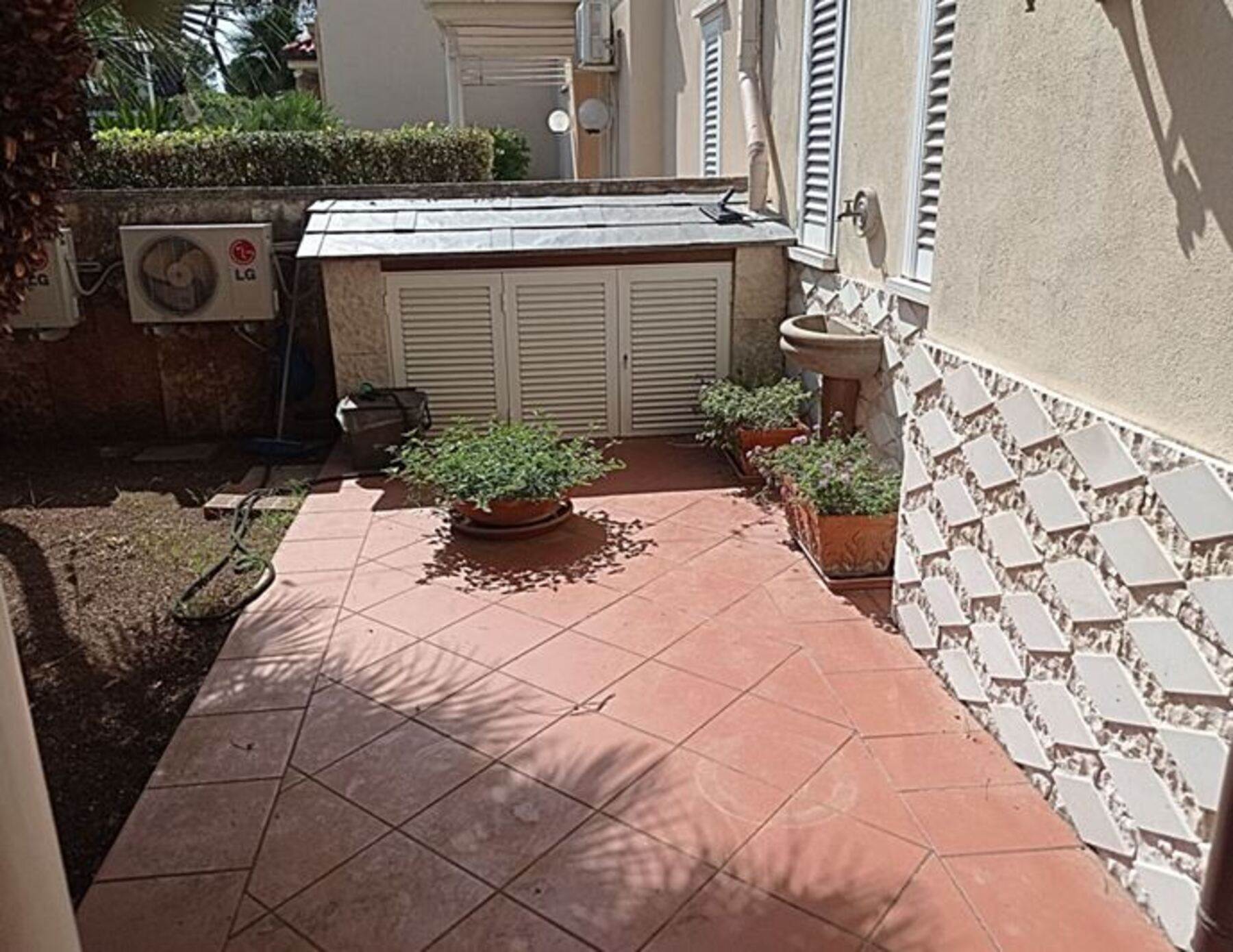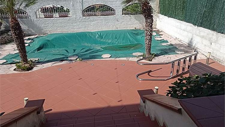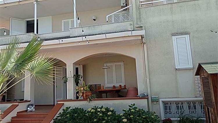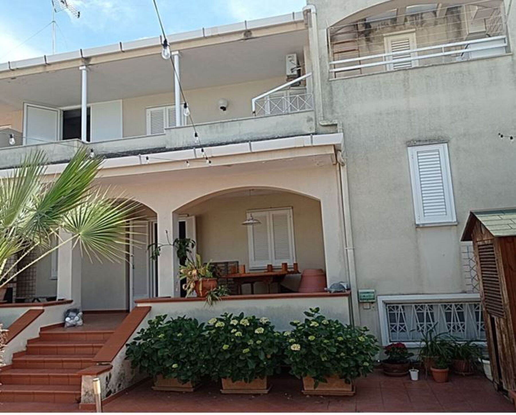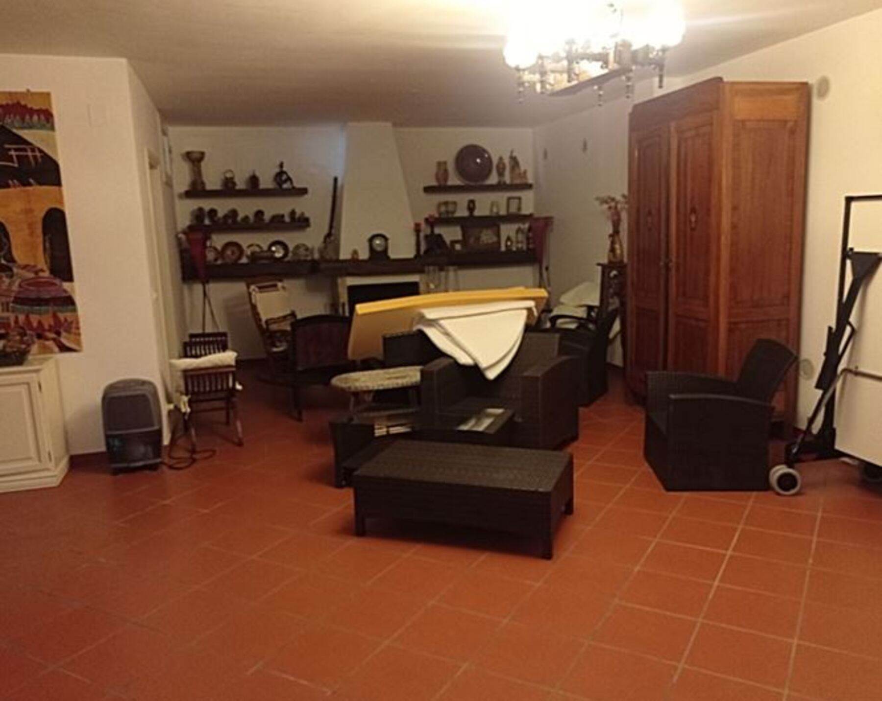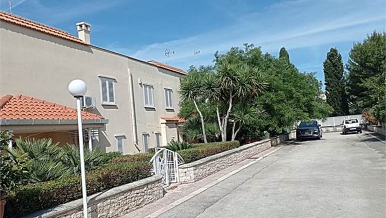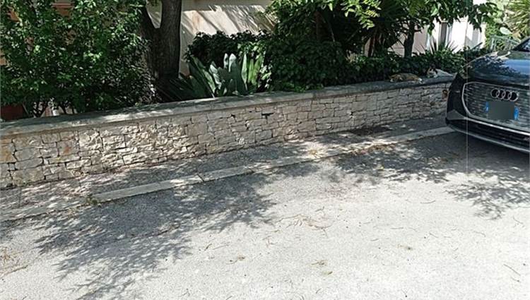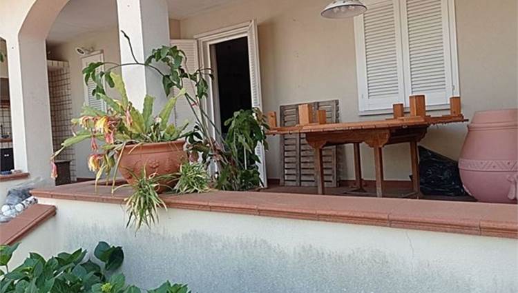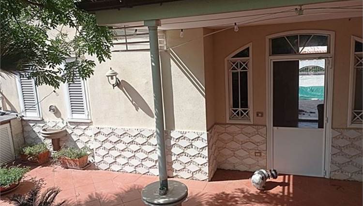 Descrizione sintetica: villetta con annesso posto auto. A piano terra è presenta il soggiorno con annessa cucina e WC. A primo piano è presente la zona notte con tre camere da letto servite da un disimpegno e da un WC. Anche a questo piano sono presenti aree esterne di pertinenza con ampie verande di mq 46,10 e con una piccola lavanderia realizzata sulla stessa oltre a balcone di mq 37,80. A piano seminterrato, invece, sono presenti due vani deposito oltre ad un wc e un grande ambiente open space con annesso caminetto. Giardino di mq 171,60 con piscina.