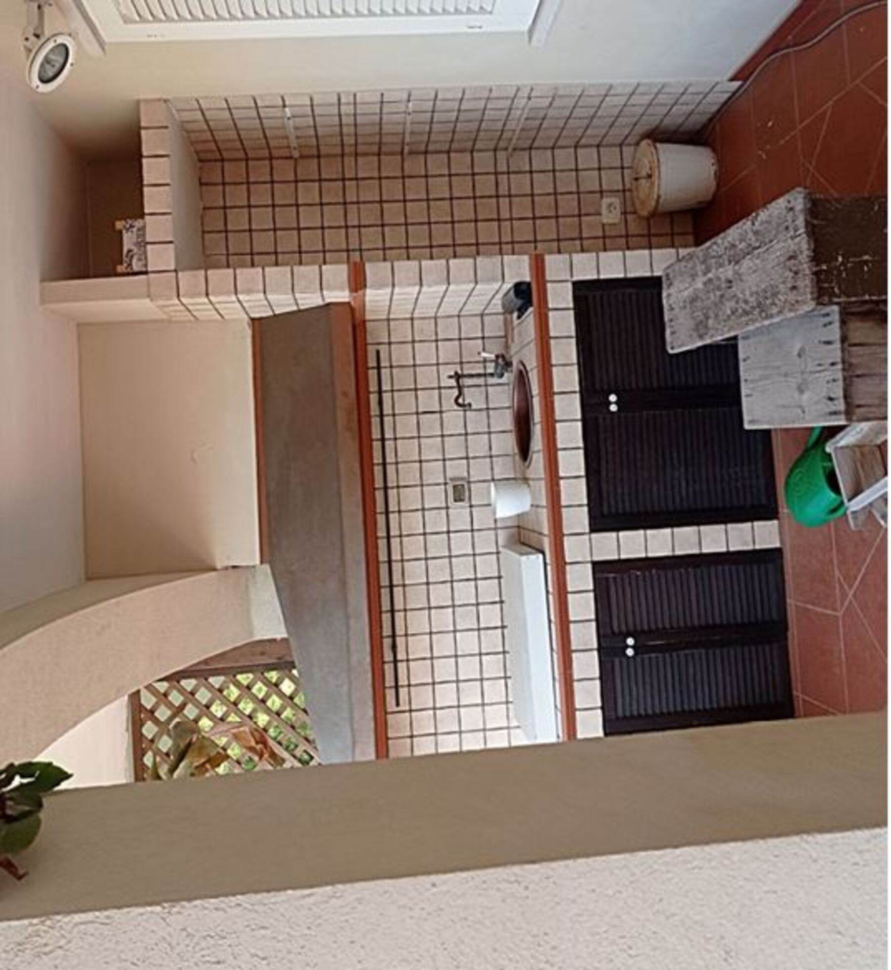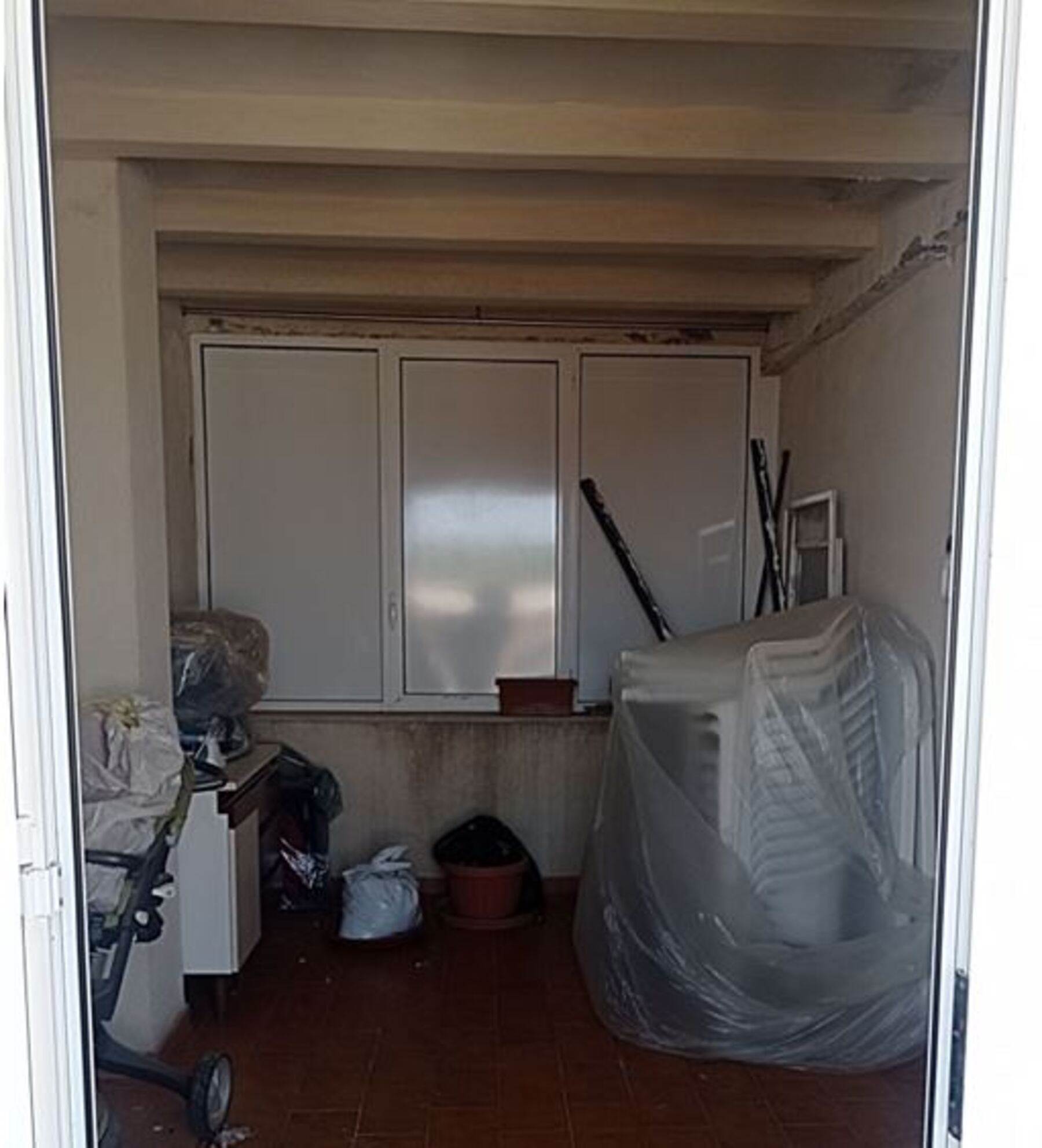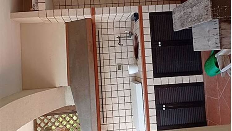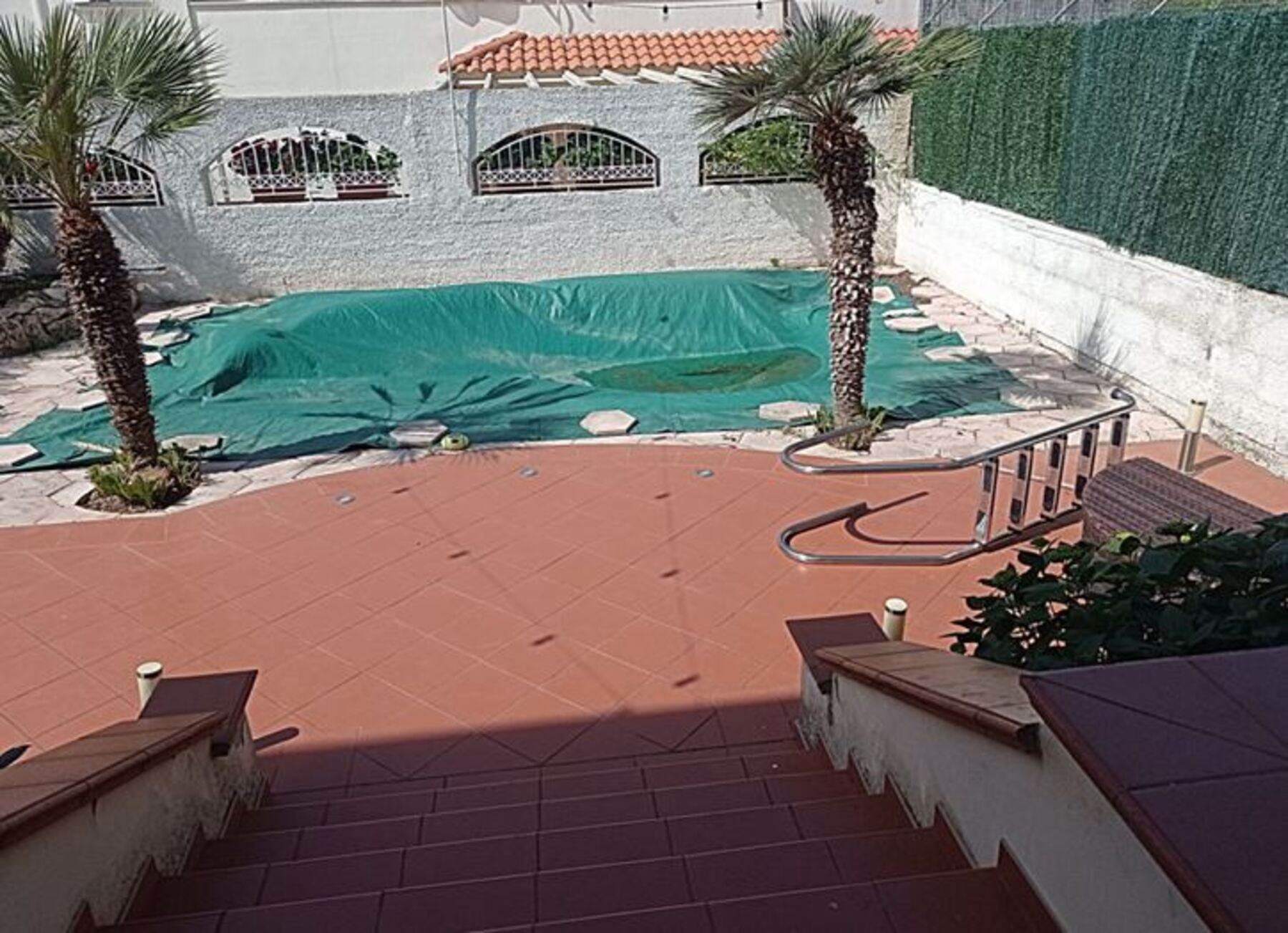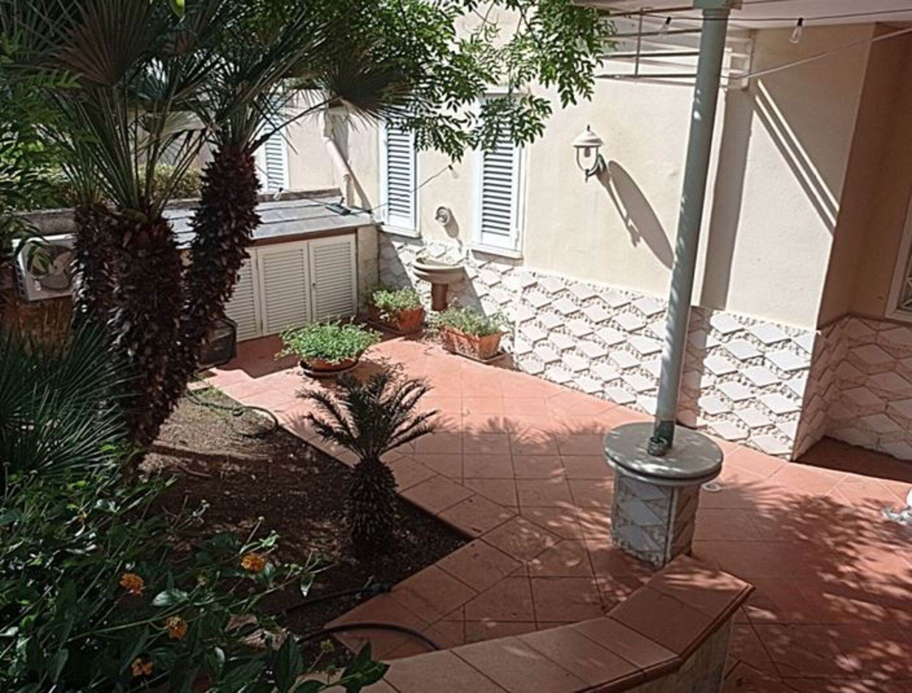 Descrizione sintetica: villetta con annesso posto auto. A piano terra è presenta il soggiorno con annessa cucina e WC. A primo piano è presente la zona notte con tre camere da letto servite da un disimpegno e da un WC. Anche a questo piano sono presenti aree esterne di pertinenza con ampie verande di mq 46,10 e con una piccola lavanderia realizzata sulla stessa oltre a balcone di mq 37,80. A piano seminterrato, invece, sono presenti due vani deposito oltre ad un wc e un grande ambiente open space con annesso caminetto. Giardino di mq 171,60 con piscina.