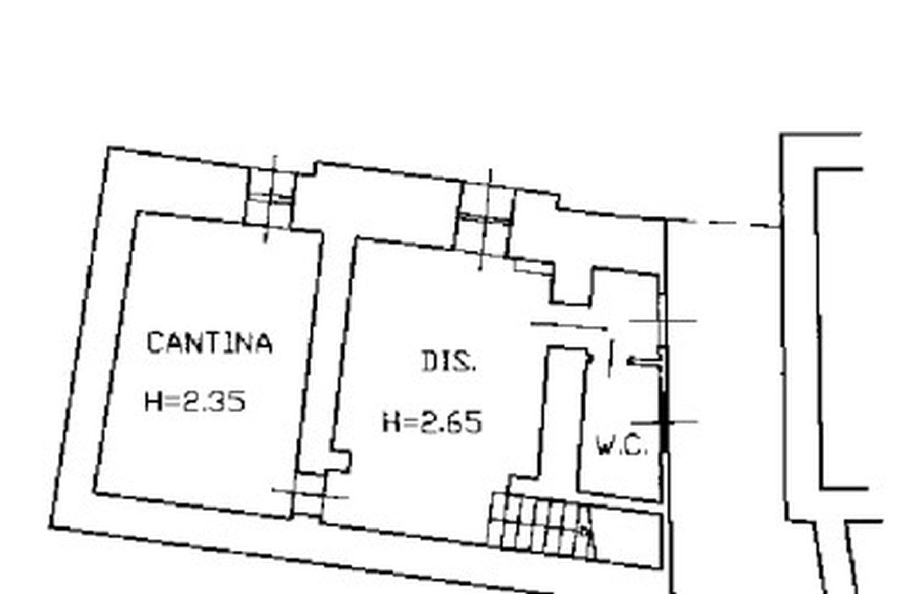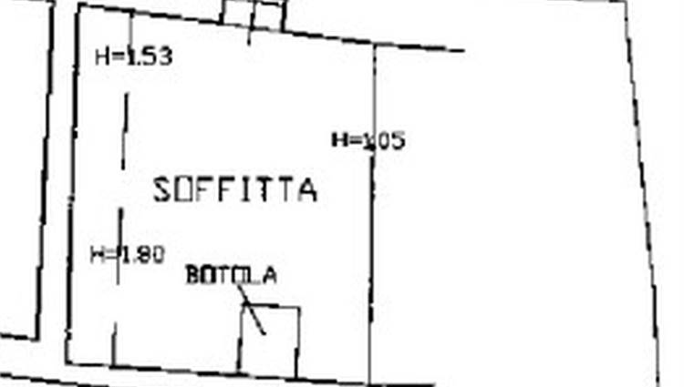 Descrizione sintetica: Unità immobiliare su 5 livelli con una superficie totale di 290 mq. Il piano terra è costituito da ingresso, disimpegno, wc e cantina. Il piano primo è costituito da wc, disimpegno, cucina, sala e camera. Il piano secondo è costituito da disimpegno e due camere. Il piano terzo è costituito da disimpegno, due camere e un balcone. Si accede al piano quarto mediante una scala amovibile attraverso una botola. Il sottotetto è adibito a soffitta.