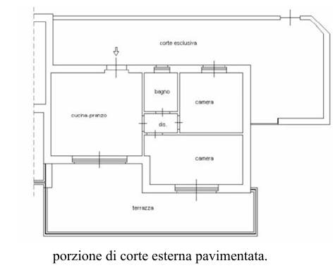 Descrizione sintetica: Appartamento posto al piano primo, composto da: ingresso, soggiorno con angolo cottura, disimpegno, bagno e due camere da letto