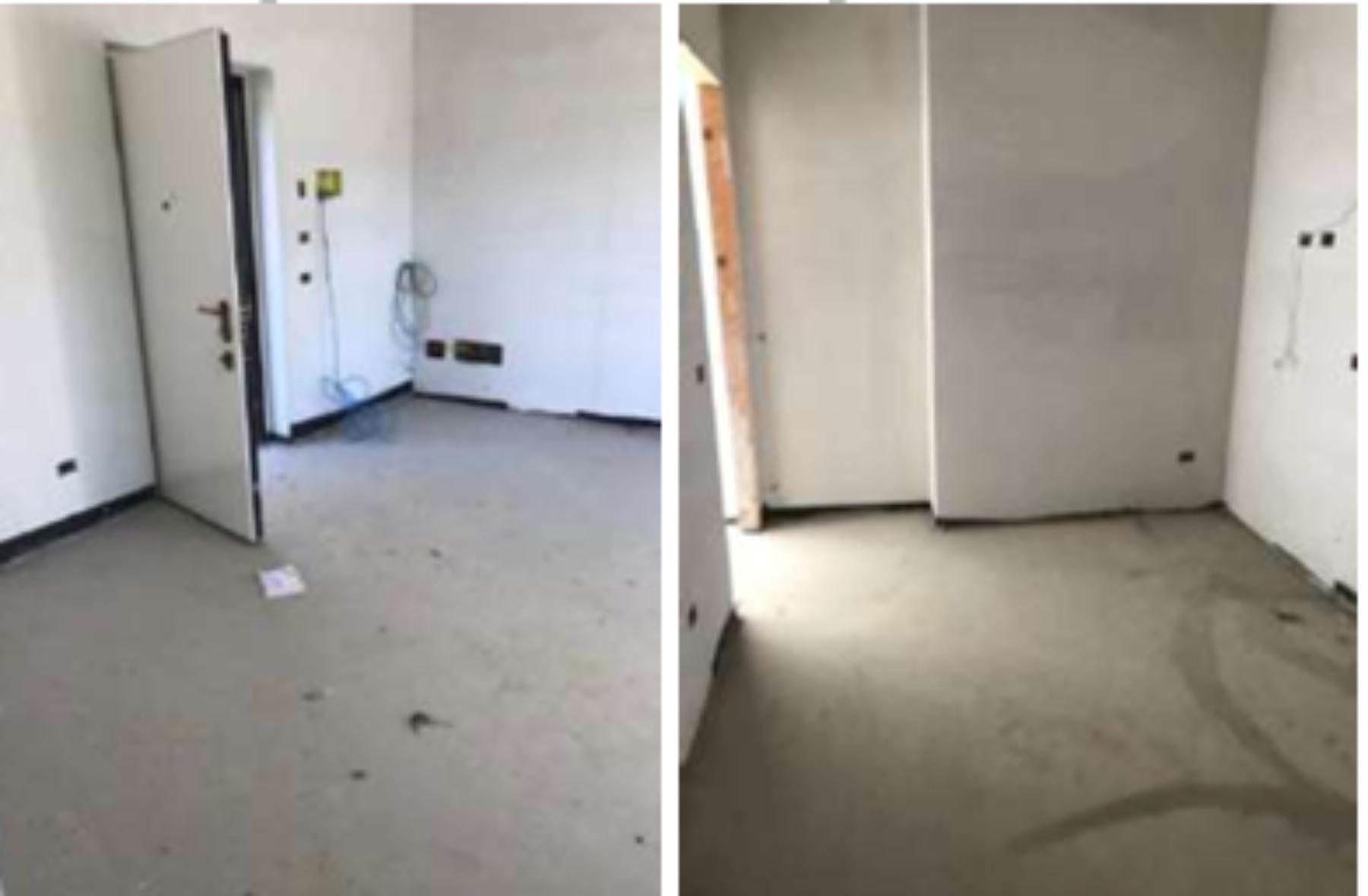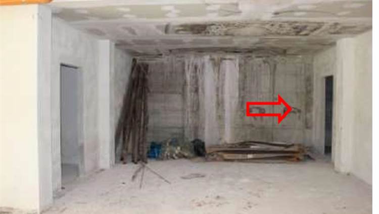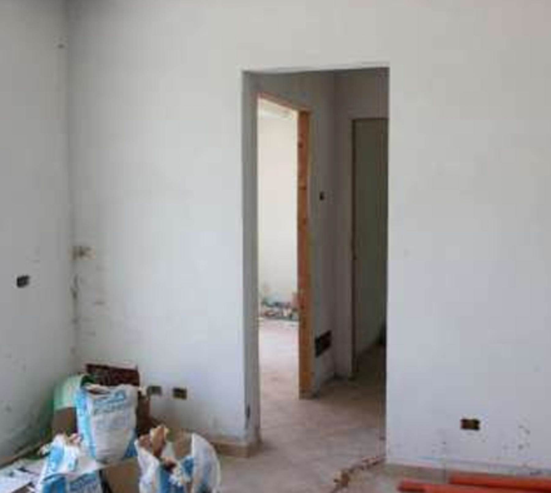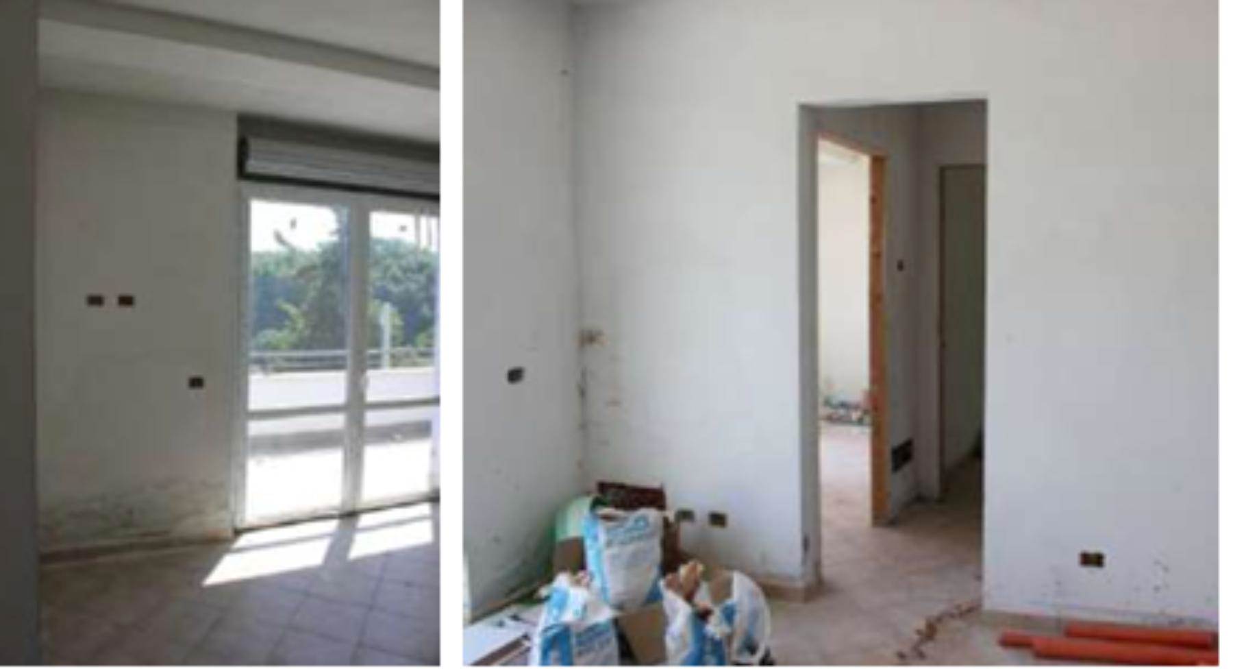 L’appartamento al suo interno appare suddiviso da tramezzature che ne articolano lo spazio composto da: ingresso, soggiorno con angolo cottura, disimpegno, bagno e due camere da letto.