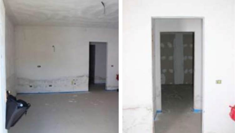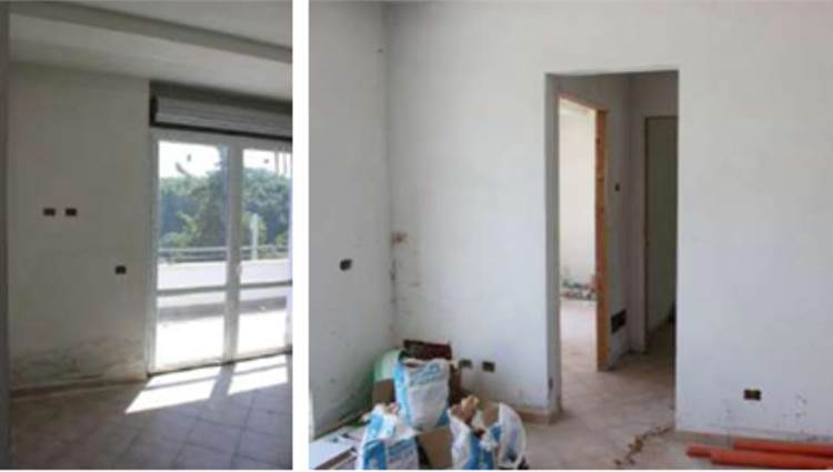 L’appartamento al suo interno appare suddiviso da tramezzature che ne articolano lo spazio composto da: ingresso, soggiorno con angolo cottura (MONOLOCALE), bagno, disimpegno e fondaco realizzato sul lato nord, in adiacenza al terreno (provvisto di cavedio).