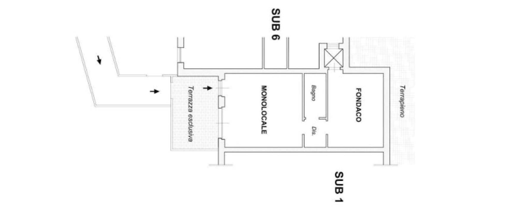 Lo stesso si sviluppa interamente al piano terra ed è raggiungibile percorrendo il corpo scala esterno (identificato dal sub 22) che diparte