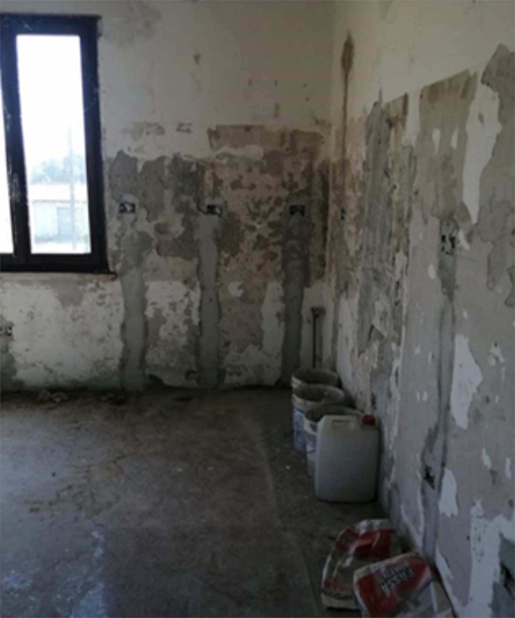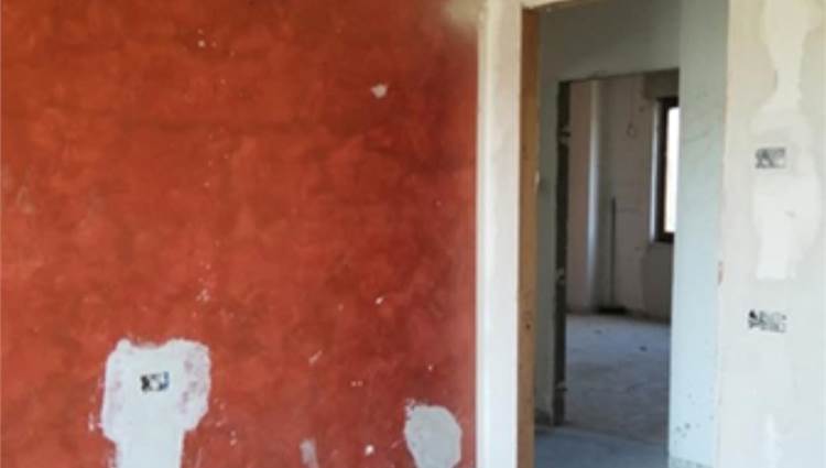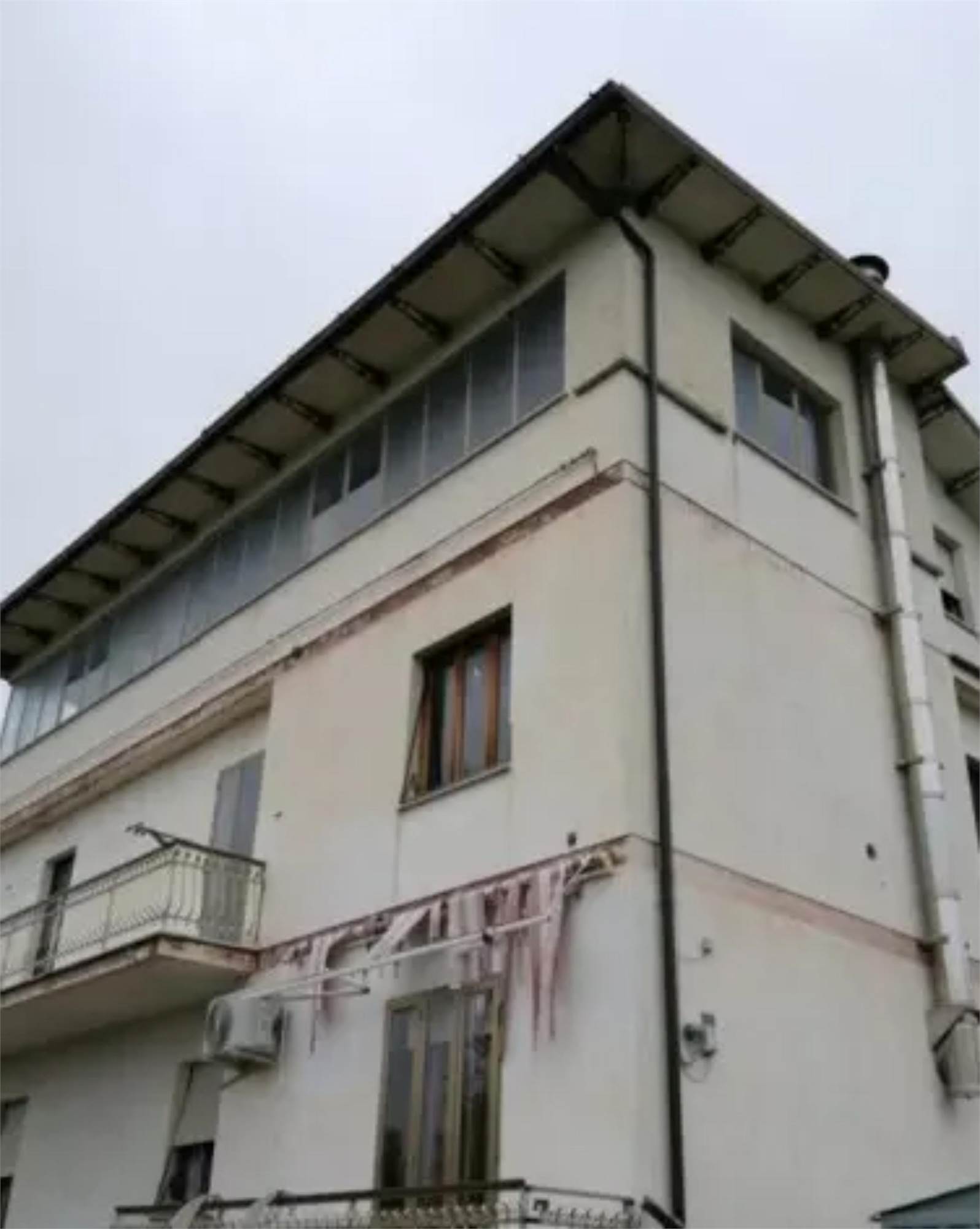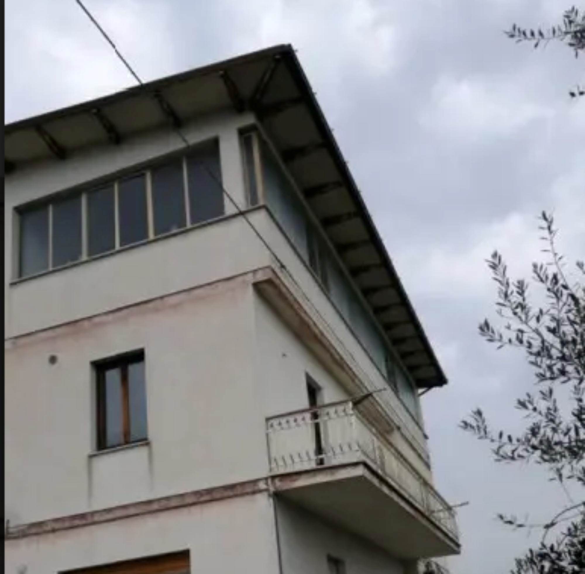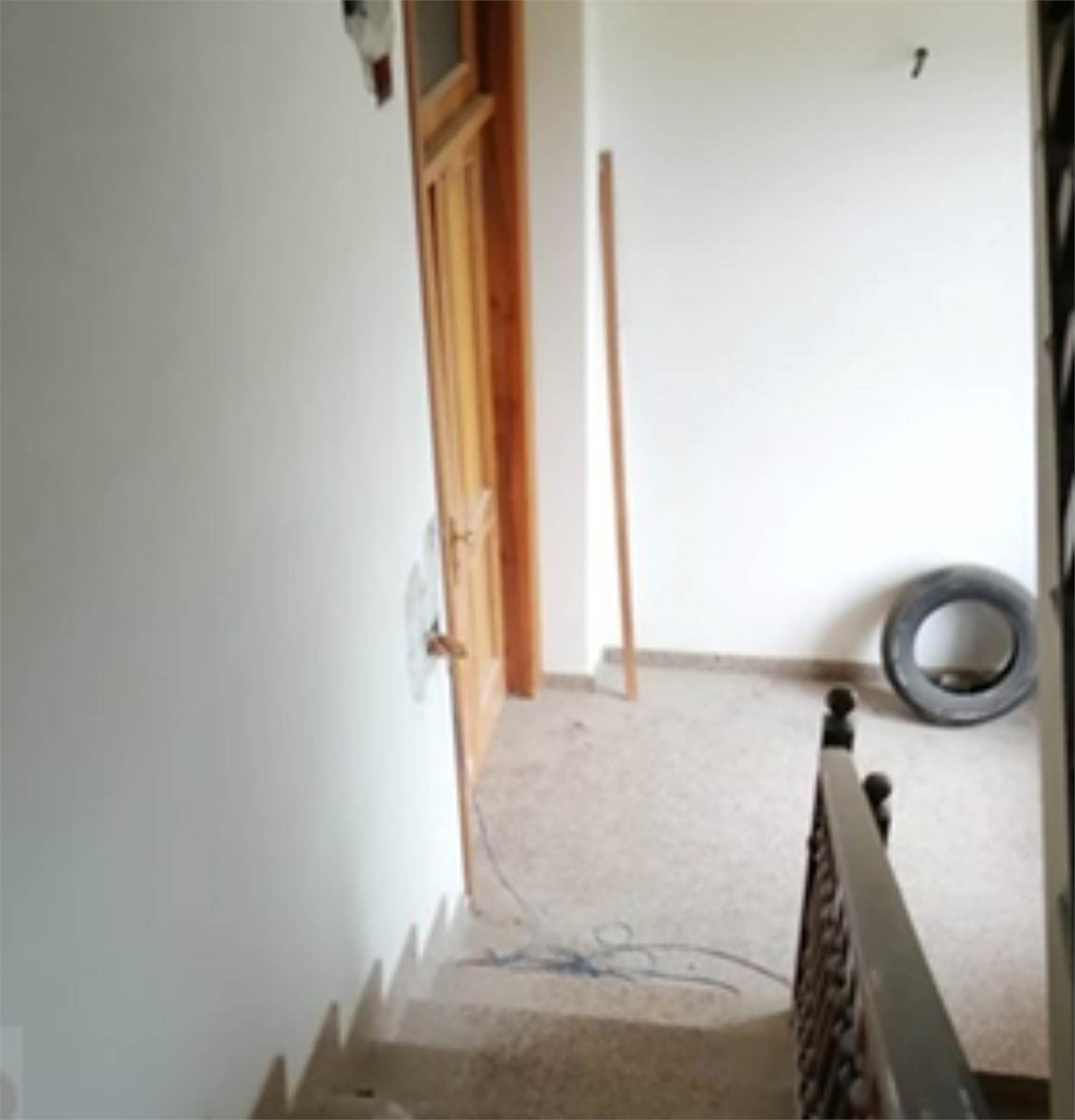 L'edificio è caratterizzato da una corte comune con giardino e camminamento antistante. Da qui si entra nel vano scala al Piano Terra. Al Primo Piano vi è l'appartamento staggito che risulta essere allo stato grezzo e in totale ristrutturazione. Dopo un piccolo disimpegno vi è un ampio soggiorno-cucina, mentre nella zona notte vi sono tre camere ed un bagno. Inoltre vi sono due balconi di totale mq 31, 03, presenti principalmente sui versanti nord-ovest e sud. In alcune stanze è presente una controsoffittatura verosimilmente per impianti di illuminazione. Gli infissi sono in legno e alluminio, non ci sono porte interne. I balconi hanno le ringhiere metalliche e pavimento piastrellato.