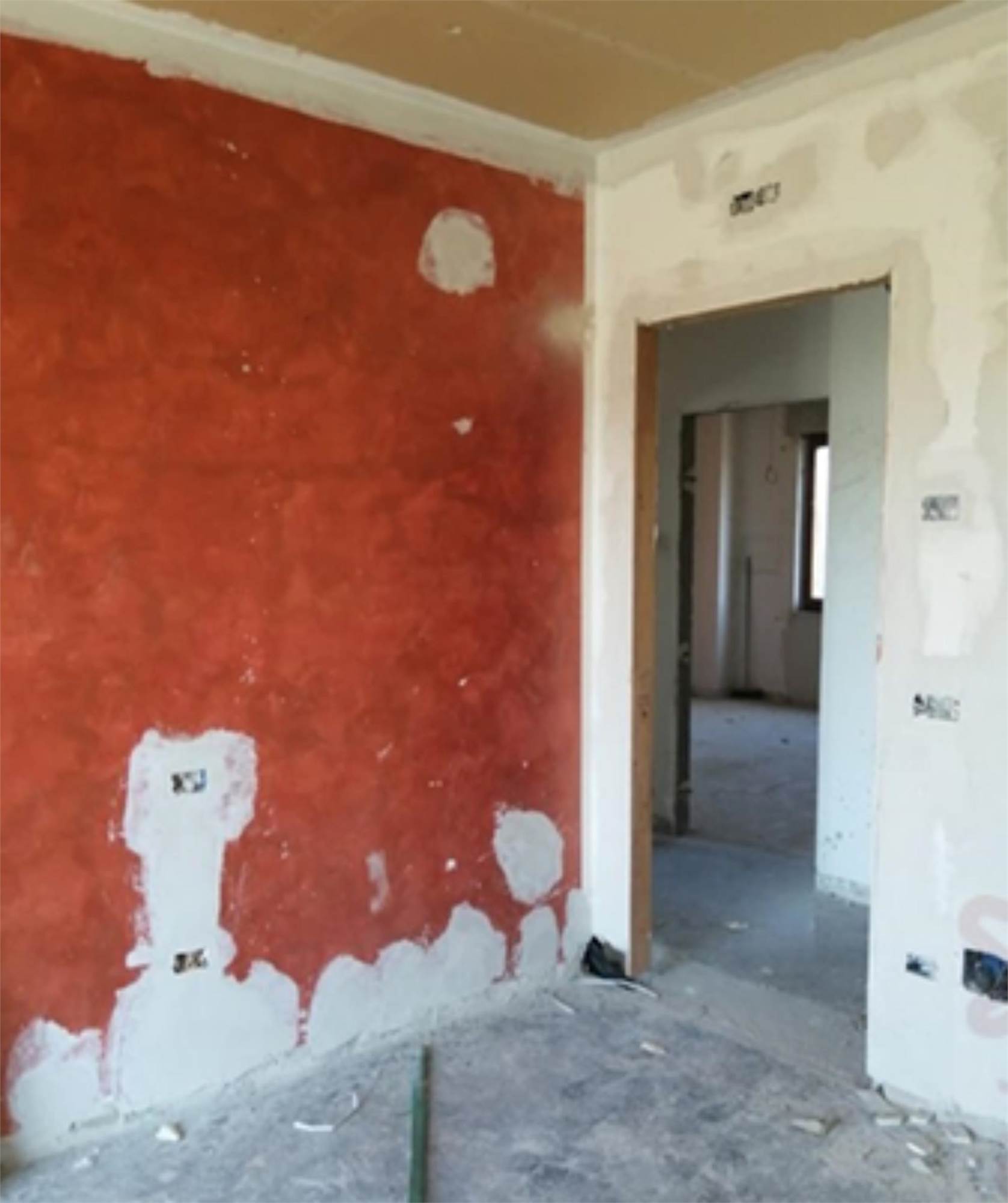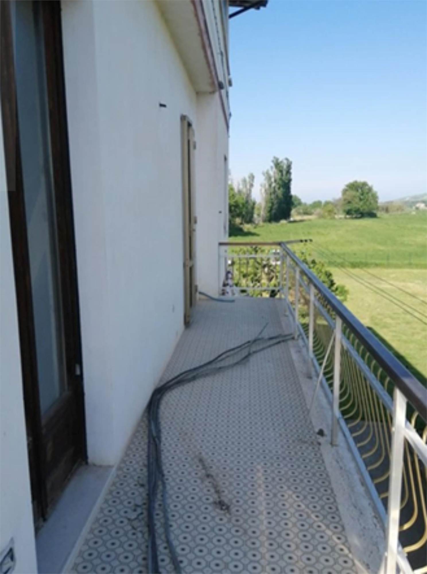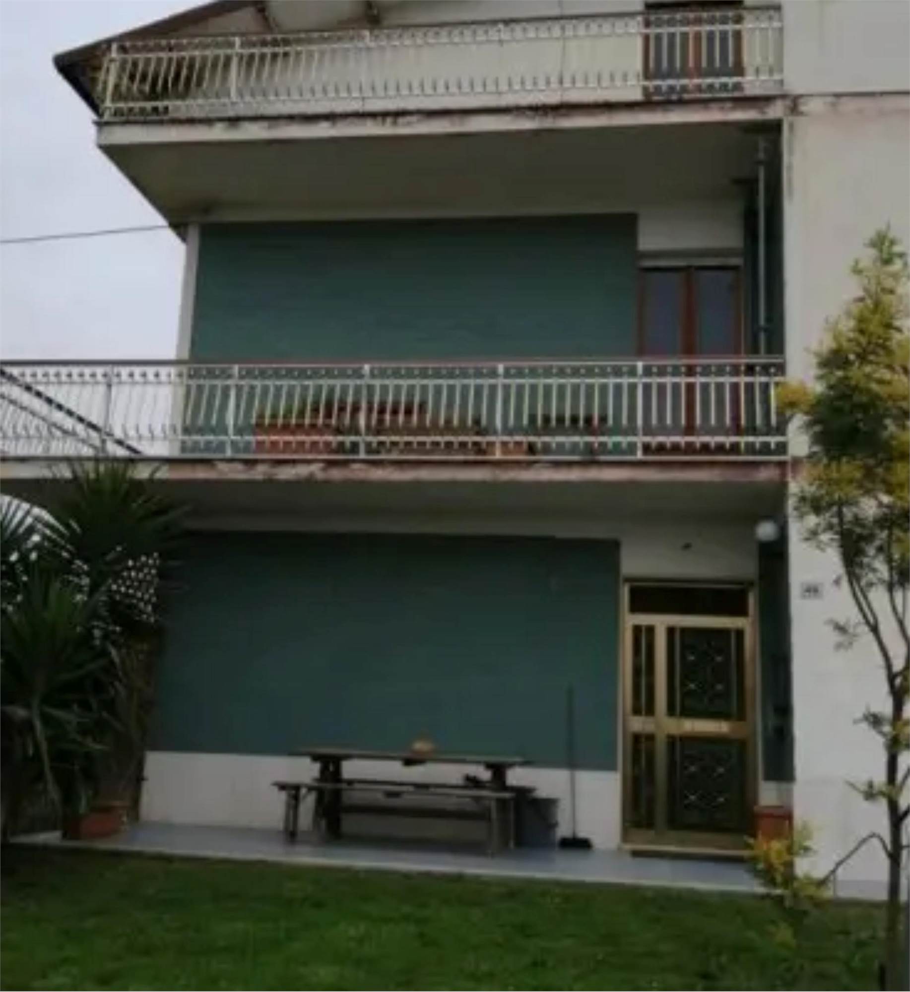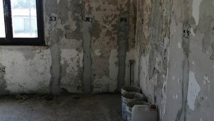 L'edificio è caratterizzato da una corte comune con giardino e camminamento antistante. Da qui si entra nel vano scala al Piano Terra. Al Primo Piano vi è l'appartamento staggito che risulta essere allo stato grezzo e in totale ristrutturazione. Dopo un piccolo disimpegno vi è un ampio soggiorno-cucina, mentre nella zona notte vi sono tre camere ed un bagno. Inoltre vi sono due balconi di totale mq 31, 03, presenti principalmente sui versanti nord-ovest e sud. In alcune stanze è presente una controsoffittatura verosimilmente per impianti di illuminazione. Gli infissi sono in legno e alluminio, non ci sono porte interne. I balconi hanno le ringhiere metalliche e pavimento piastrellato.