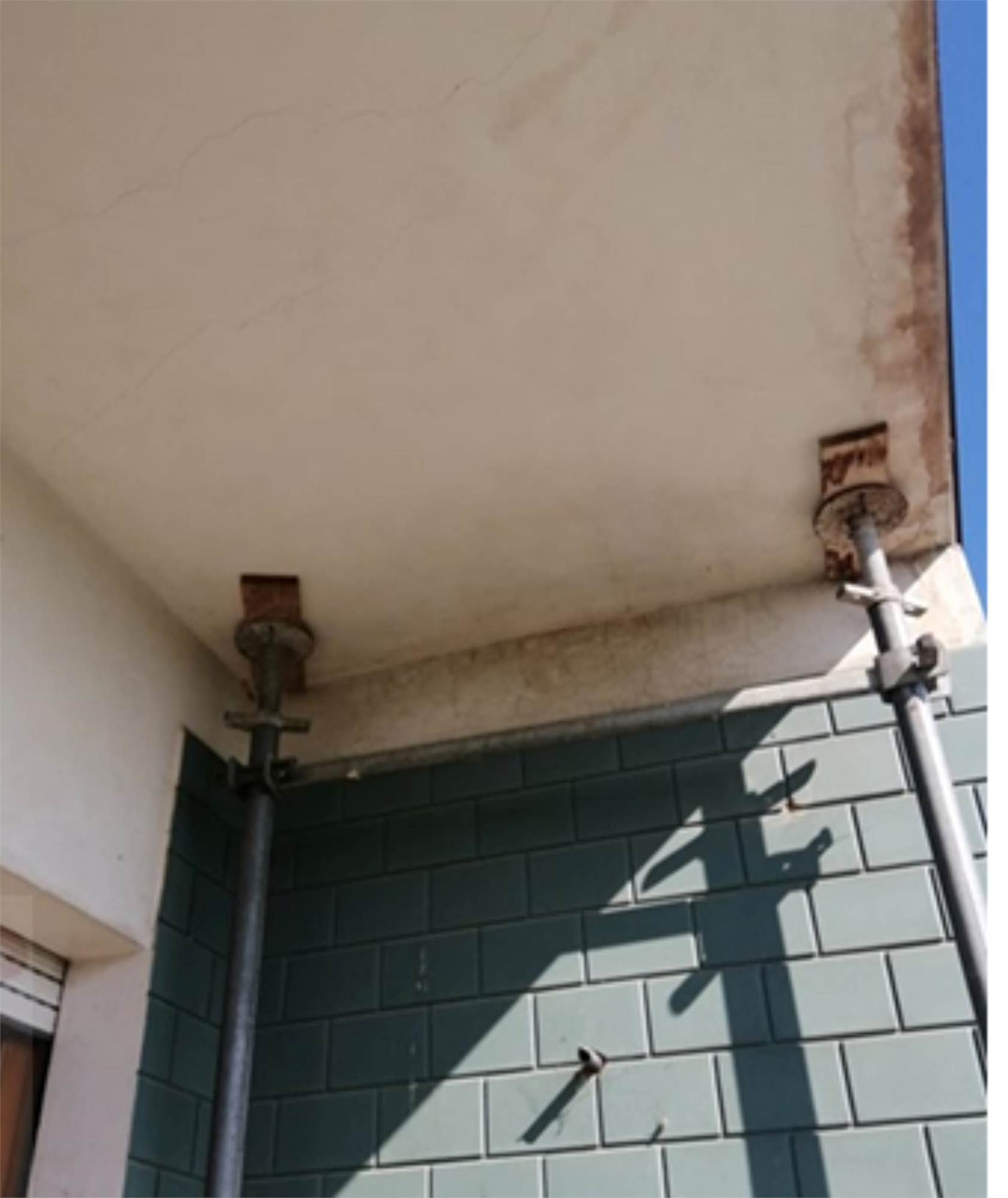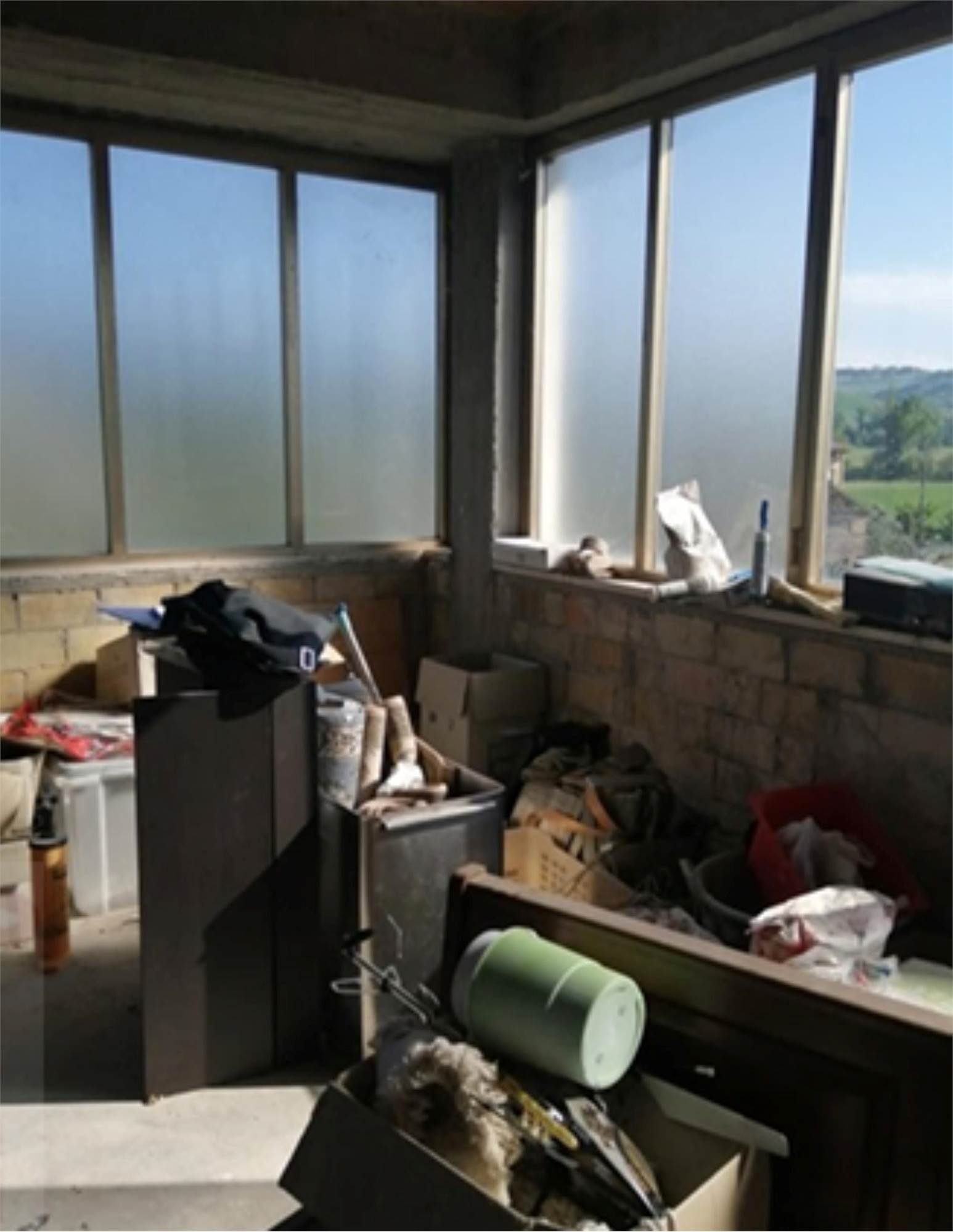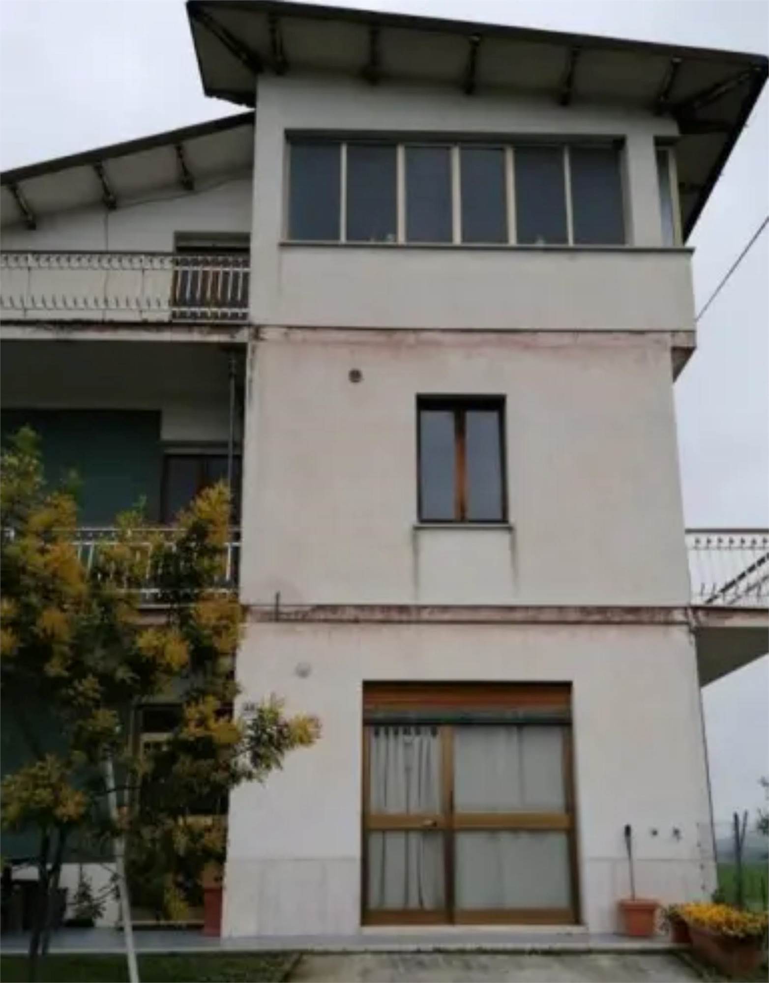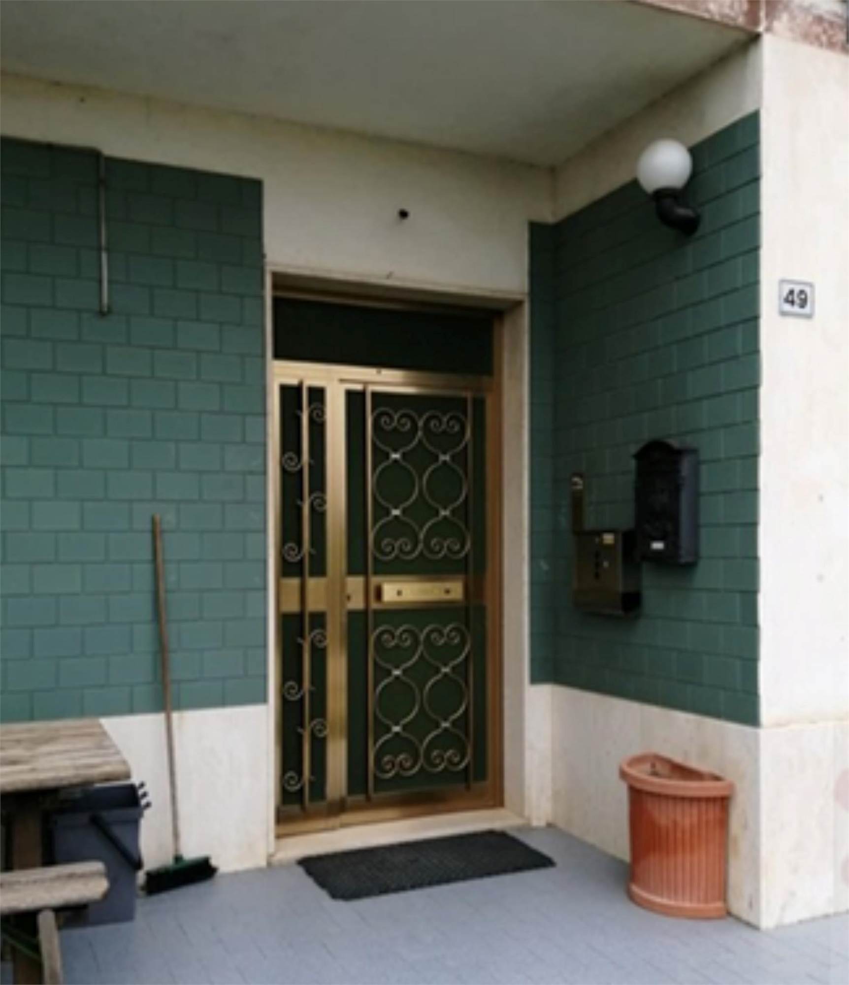 L'edificio è caratterizzato da una corte comune con giardino e camminamento antistante. Da qui si entra nel vano scala al Piano Terra. Al Primo Piano vi è l'appartamento staggito che risulta essere allo stato grezzo e in totale ristrutturazione. Dopo un piccolo disimpegno vi è un ampio soggiorno-cucina, mentre nella zona notte vi sono tre camere ed un bagno. Inoltre vi sono due balconi di totale mq 31, 03, presenti principalmente sui versanti nord-ovest e sud. In alcune stanze è presente una controsoffittatura verosimilmente per impianti di illuminazione. Gli infissi sono in legno e alluminio, non ci sono porte interne. I balconi hanno le ringhiere metalliche e pavimento piastrellato.