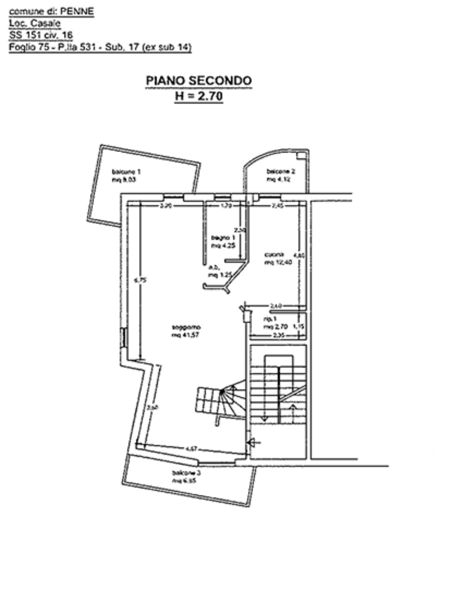 Descrizione sintetica: appartamento di tipologia duplex, composto da piano inferiore con ingresso/soggiorno, bagno, antibagno, cucina, ripostiglio e tre balconi di mq 19,00; piano superiore mansardato con locale multiuso, guardaroba, bagno, disimpegno, ripostiglio e due balconi di mq 10,97.