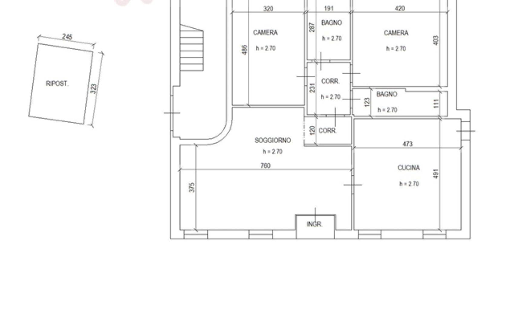 Deposito (part. 502): sviluppato su tre livelli (PT-P1-P2) con portico, locali deposito, lavanderie con centrale termica, ripostigli e sottotetto. Area esterna: ampia corte esclusiva con annessi accessori (ripostigli, cantina interrata, ex officina con tettoia e piazzale in cemento).Totale mq accessori 322,88.