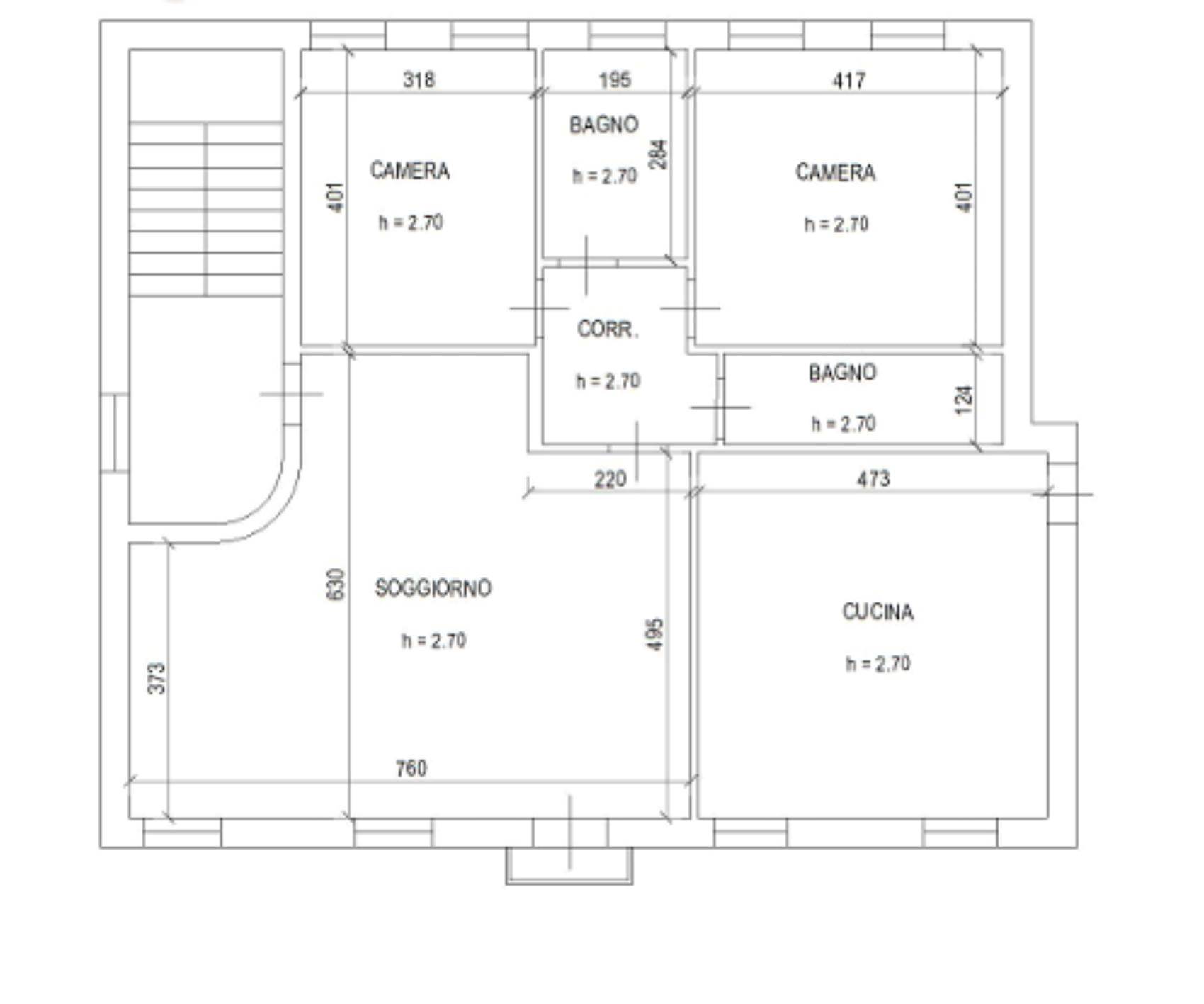 Appartamento Piano Terra (sub. 2): ingresso, cucina, soggiorno, corridoio, due bagni, due camere. Appartamento Piano Primo (sub. 3): ingresso da vano scale, cucina, soggiorno, corridoio, due bagni, due camere.