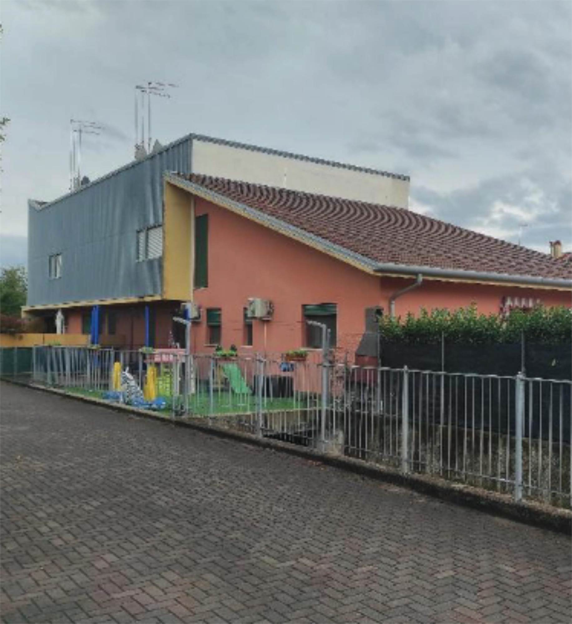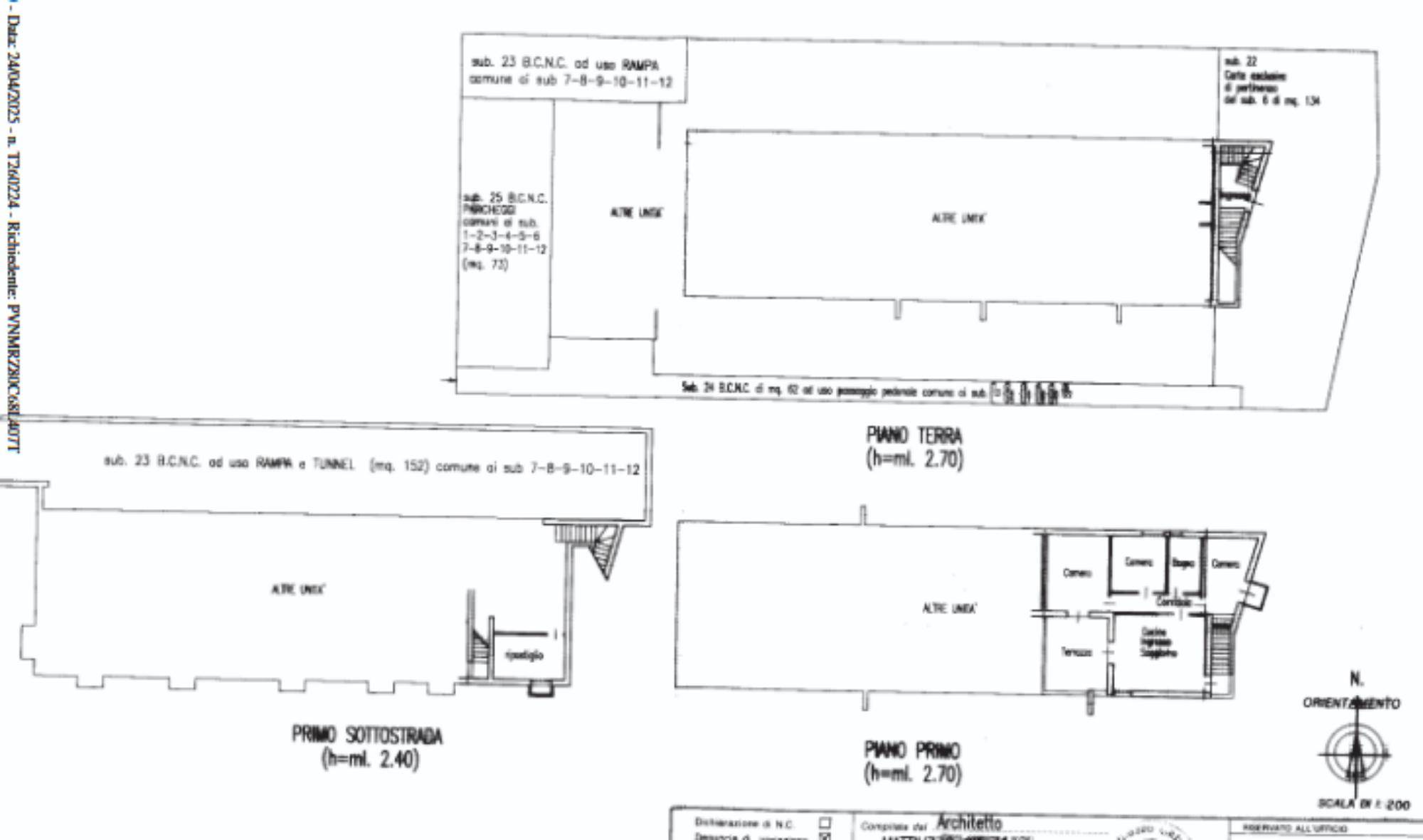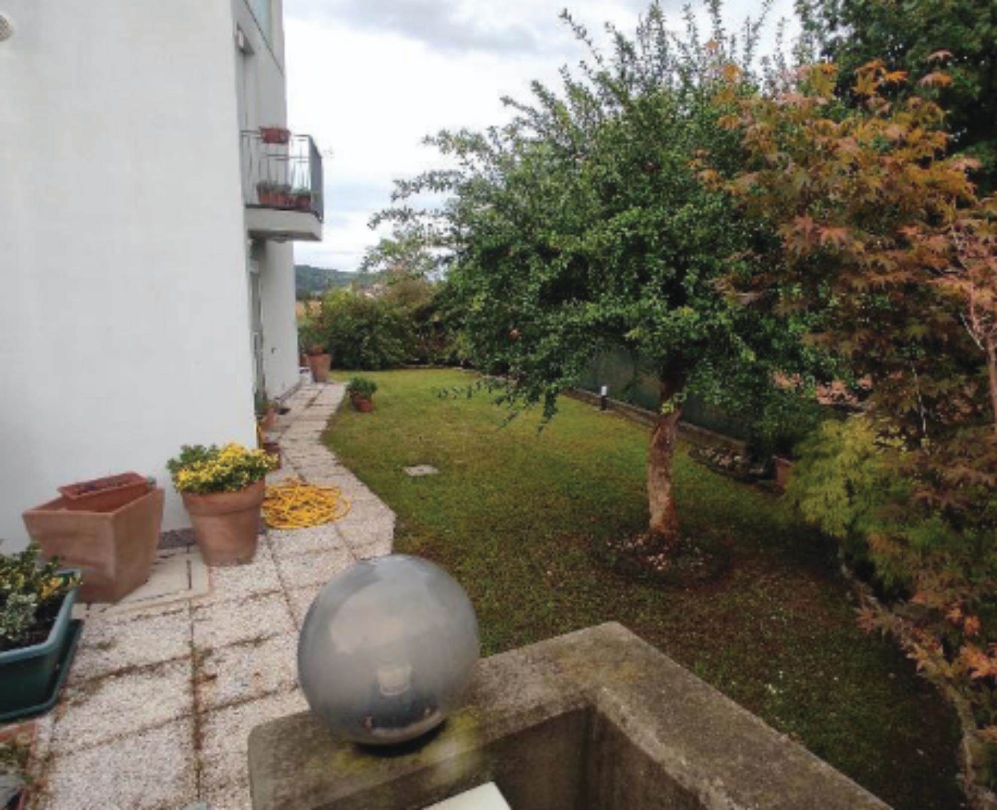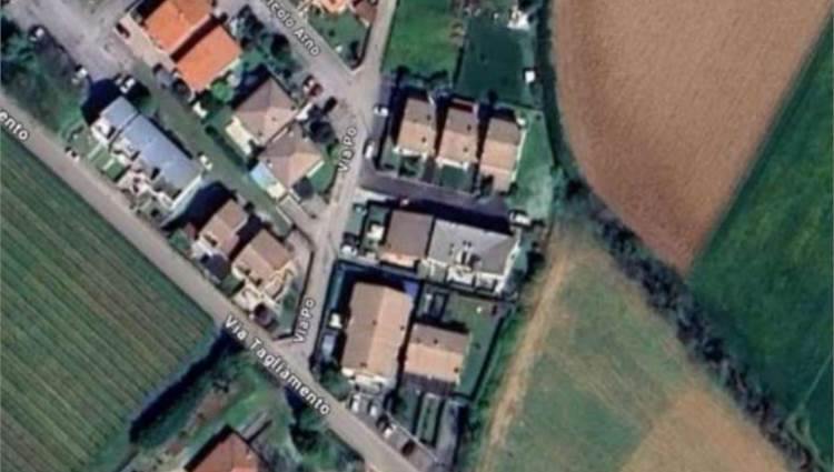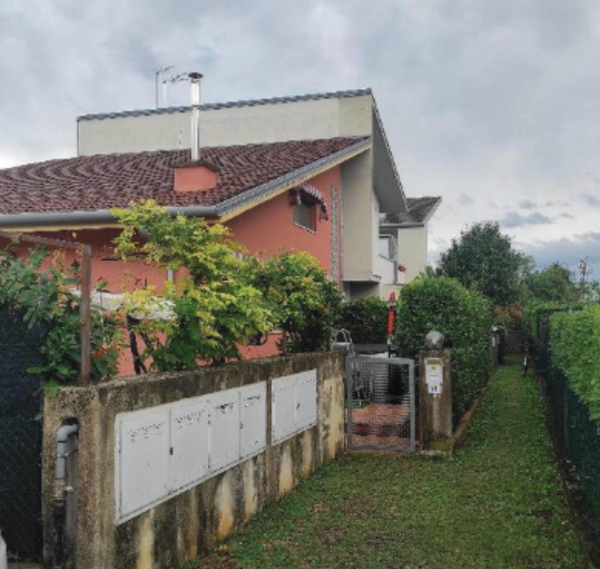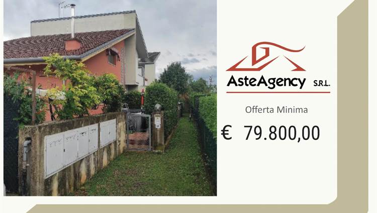 Abitazione con ingresso al piano terra e composta al primo piano da soggiorno con angolo cottura, tre camere, bagno, terrazza e balconcino; corte esclusiva di mq. 134 catastali; garage al seminterrato di 25,00 mq.