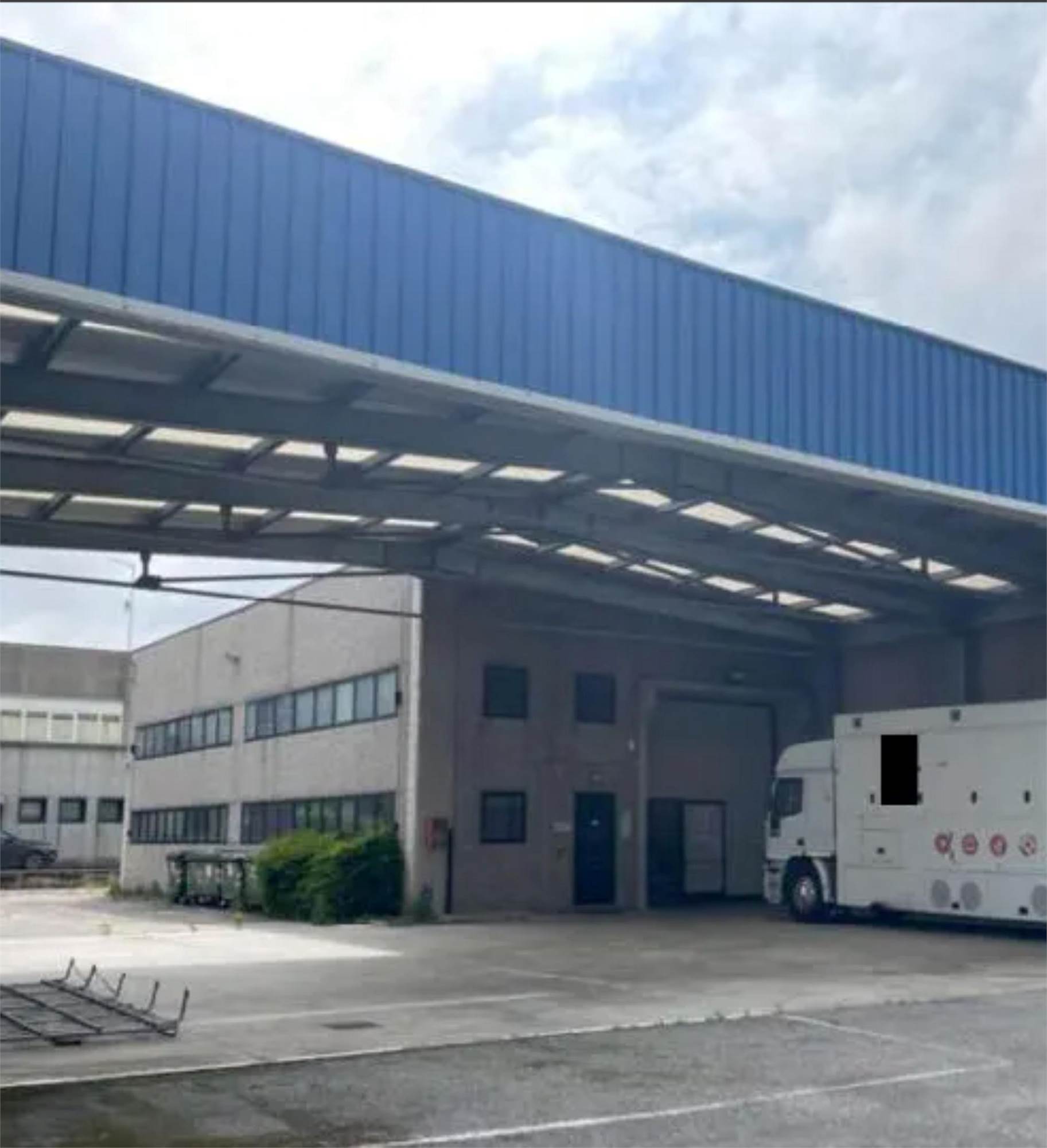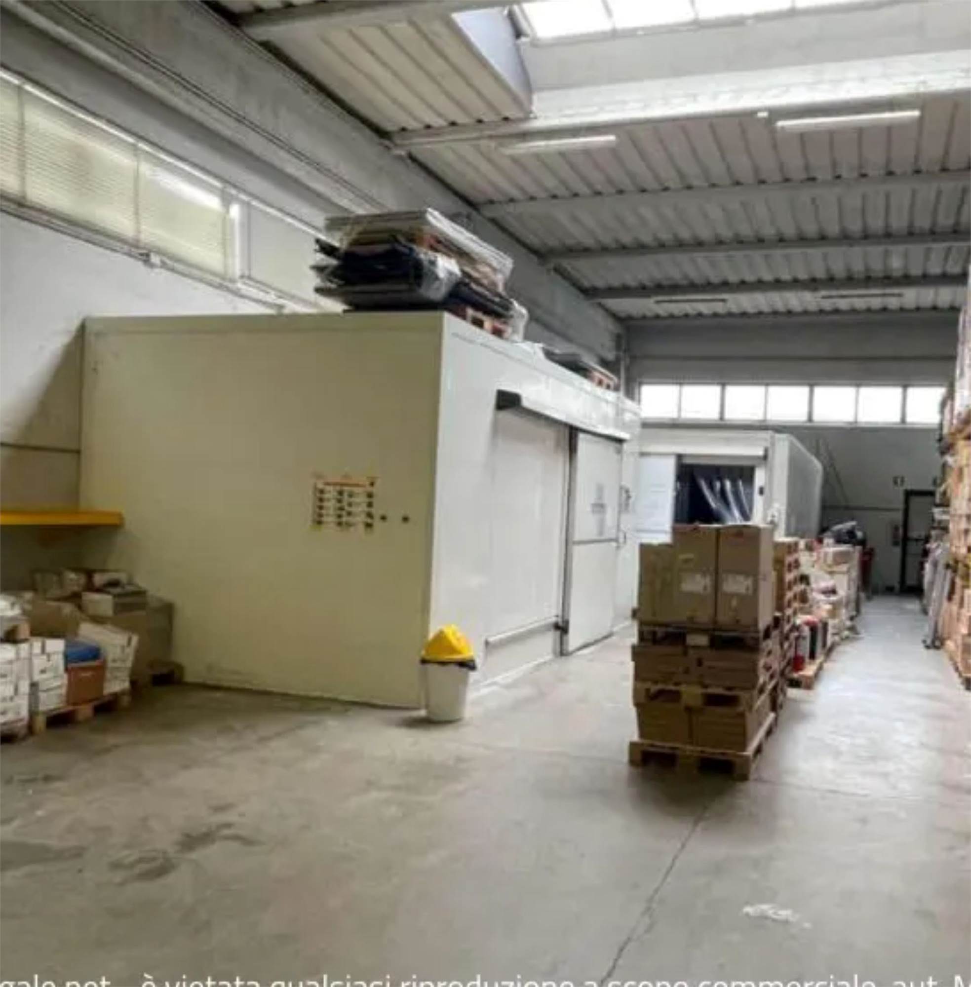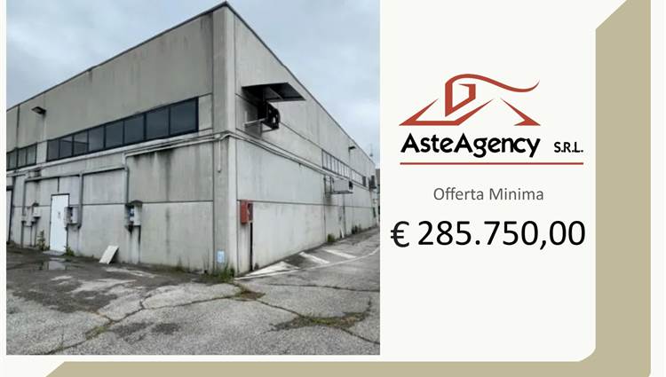 Descrizione sintetica: magazzino/deposito ad uso commerciale, costituito da un ambiente principale di circa 590 mq lordi con altezza di circa 6,2 m, destinato a magazzino e deposito ad uso commerciale, dai locali fronte strada sviluppati su due piani fuori terra di circa 110 mq lordi ciascuno, destinati ad uso ufficio e servizi igienici e da un’area scoperta di circa 1.078 mq destinata a parcheggi, area di manovra e tettoia.