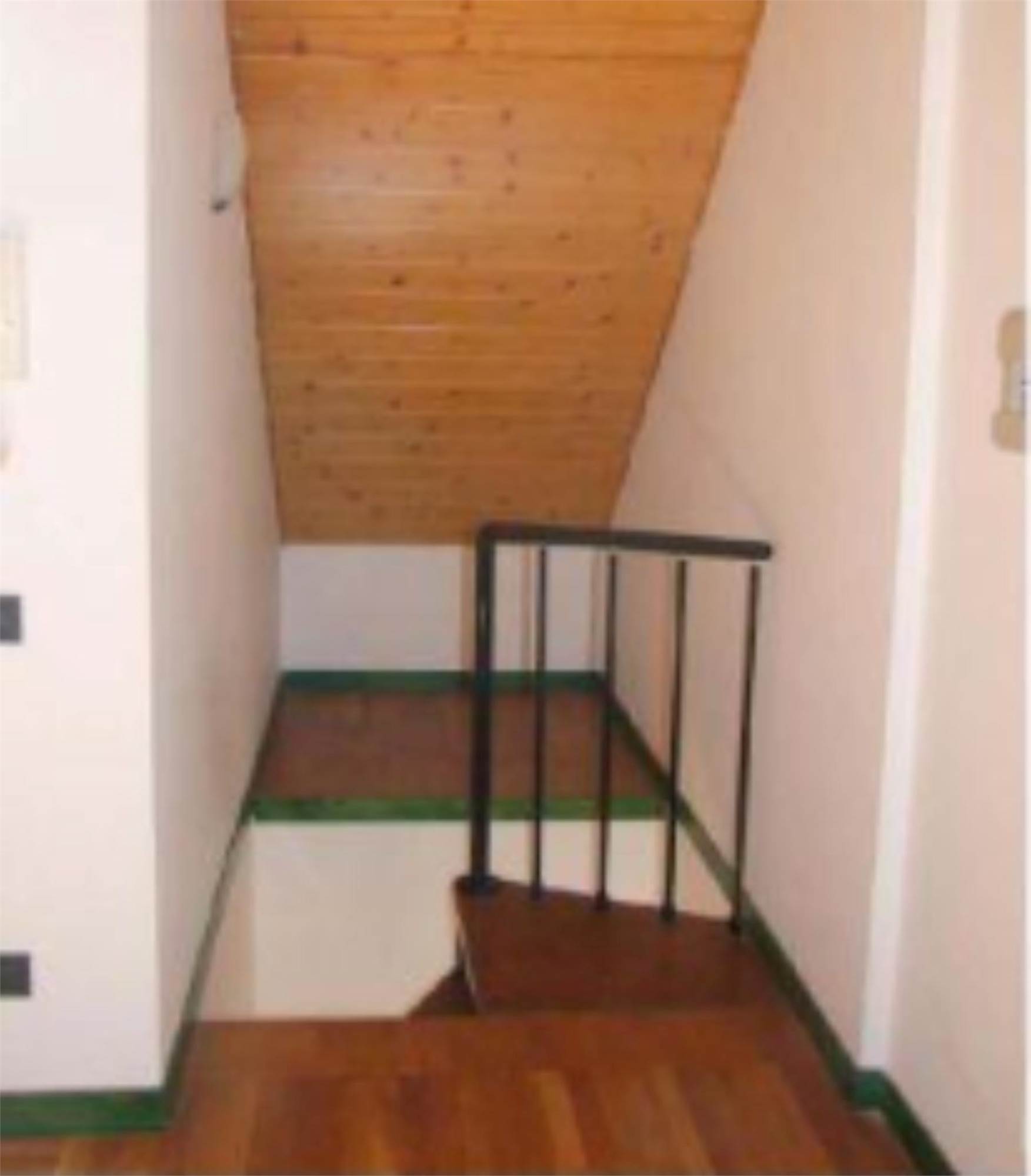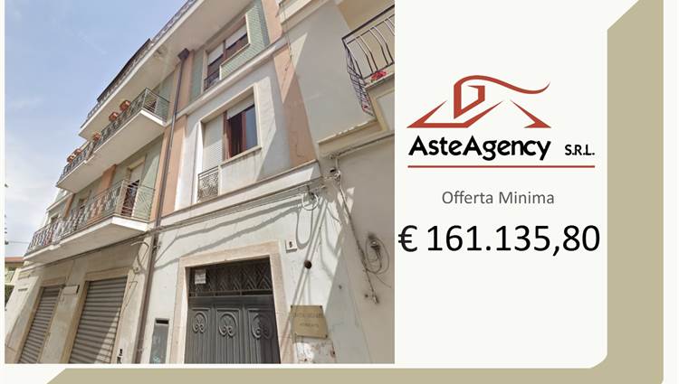 Descrizione sintetica: appartamento di tipo duplex ubicato al piano terzo e quarto, composto, al terzo piano, da tre vani, bagno e terrazzo di mq 27,47 a livello di proprietà esclusiva; al quarto livello da due vani e servizio. I due livelli sono collegati da una scala a chiocciola interna all’appartamento. Al detto appartamento è annesso una pertinenziale cantina/deposito completamente interrata con accesso da una botola posizionata nella zona sottoscala.