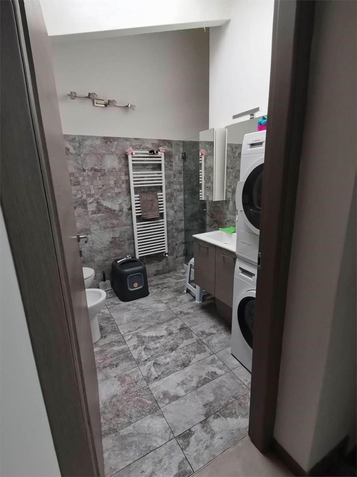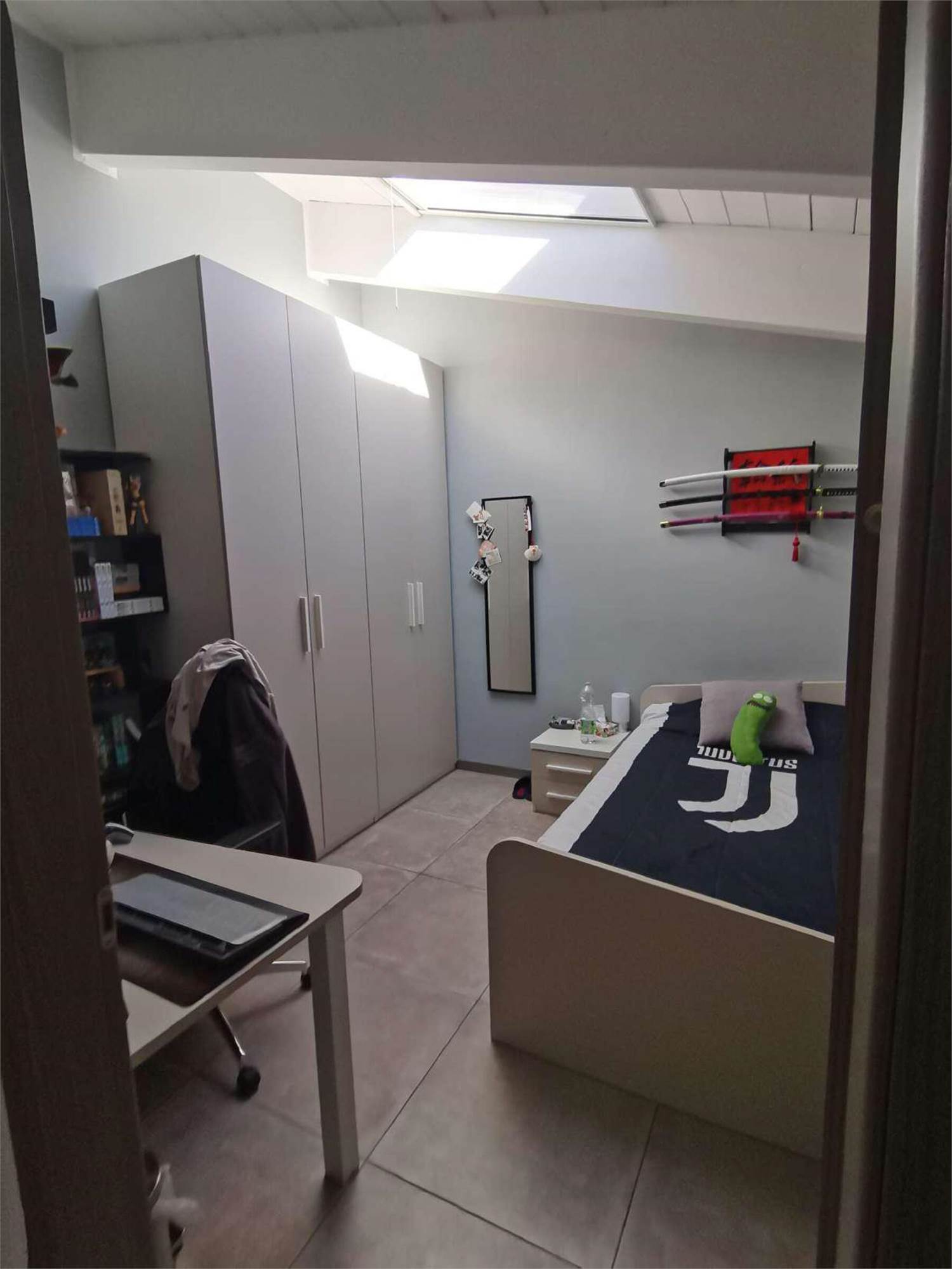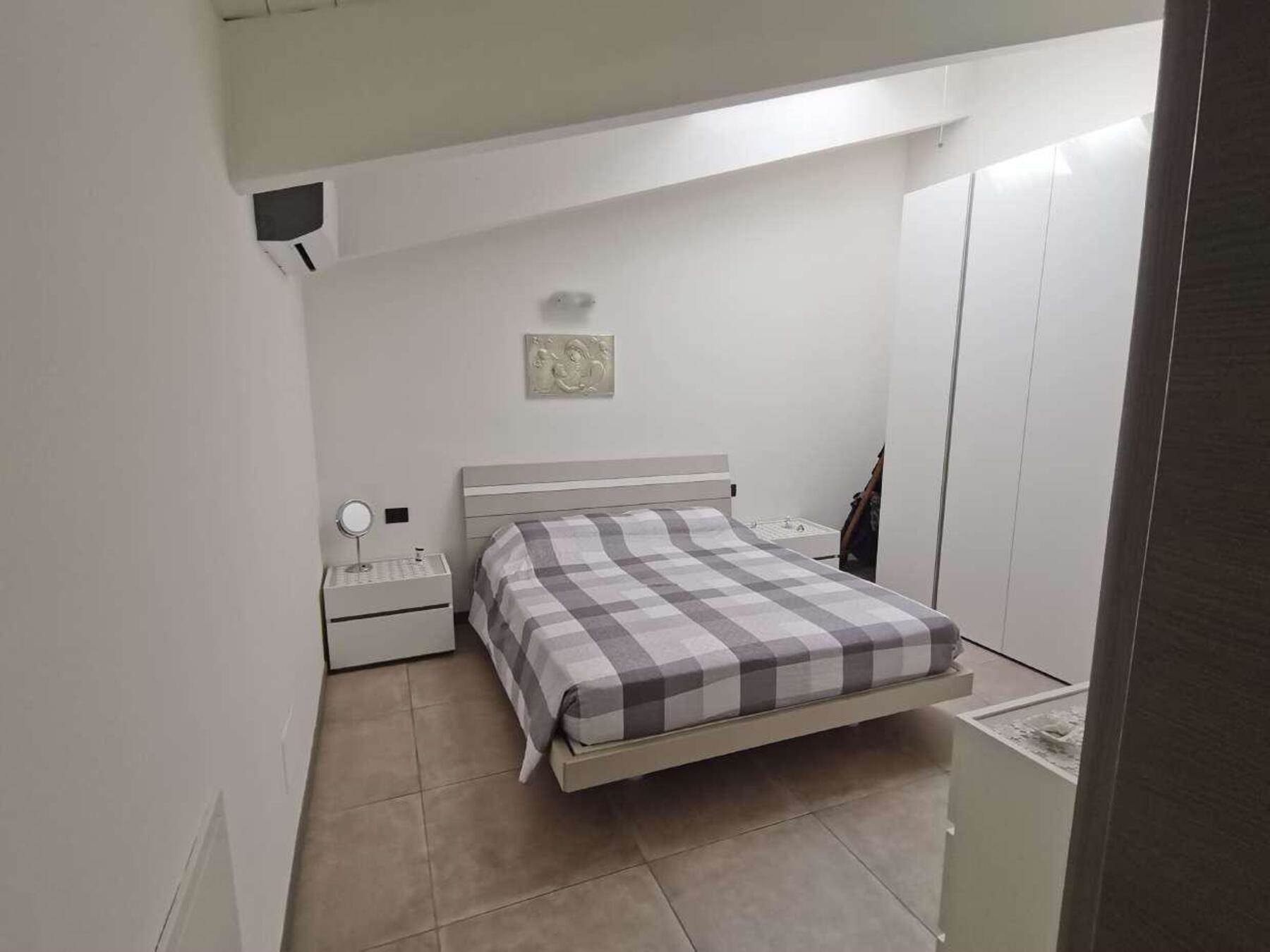 Descrizione sintetica: appartamento al piano primo e secondo (sottotetto) costituito: al piano primo da monolocale (soggiorno con angolo cottura), balcone di mq 10,00, disimpegno, bagno, scala interna che collega il piano primo sottotetto senza permanenza di persone suddiviso abusivamente in 4 camere, un bagno, completano la proprietà una cantina posta al piano interrato di mq 2,00 ed un box di mq 21,00.