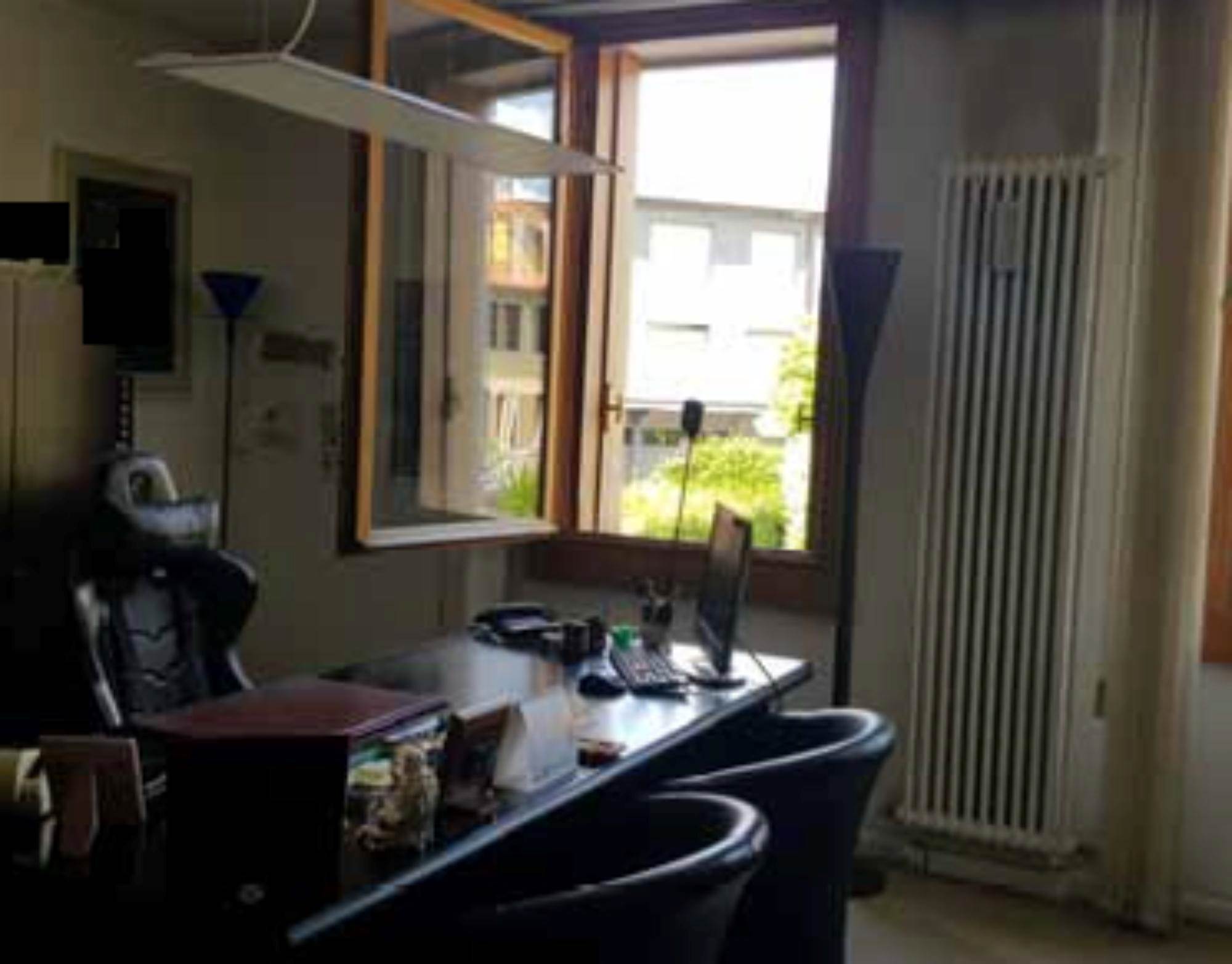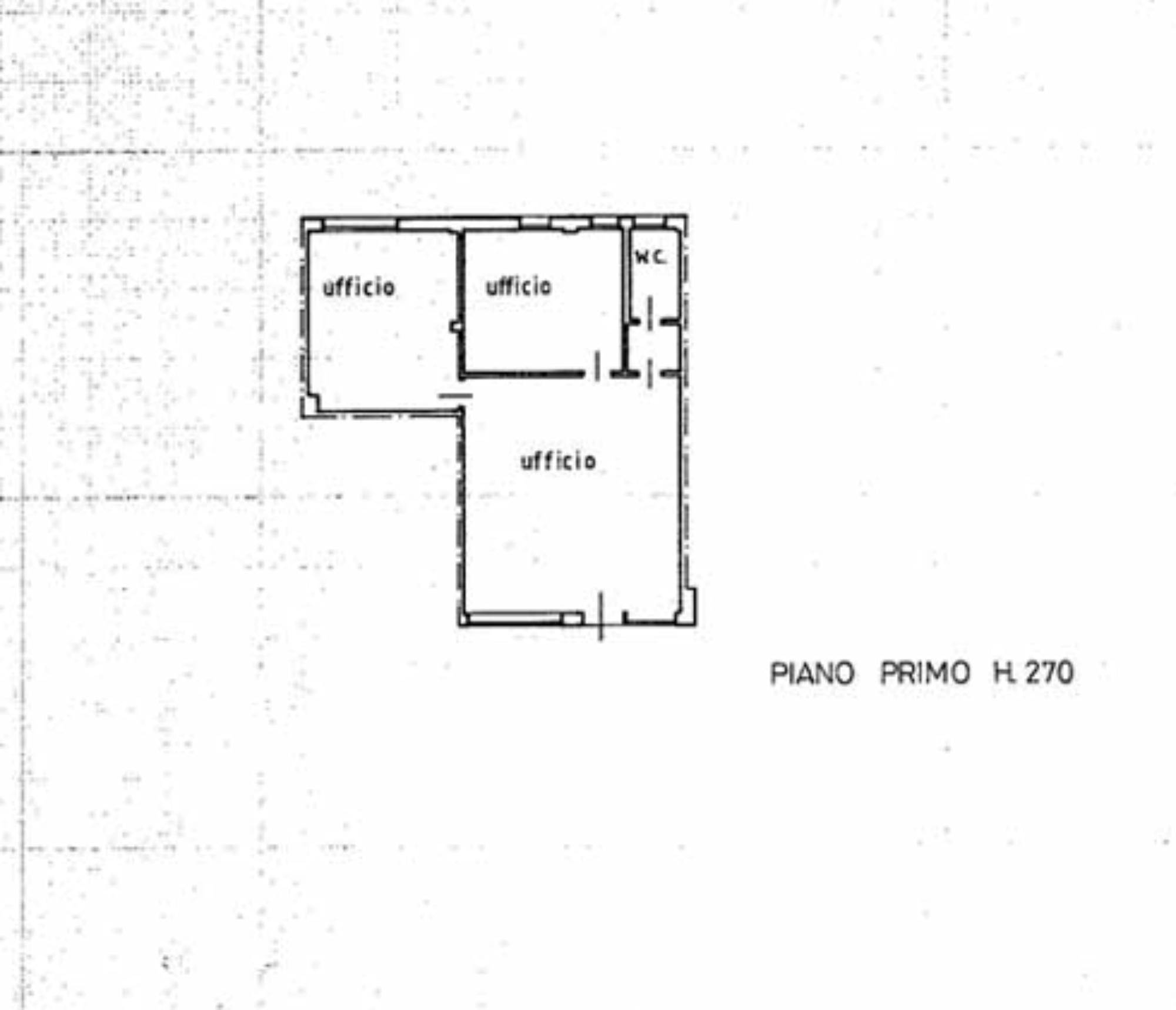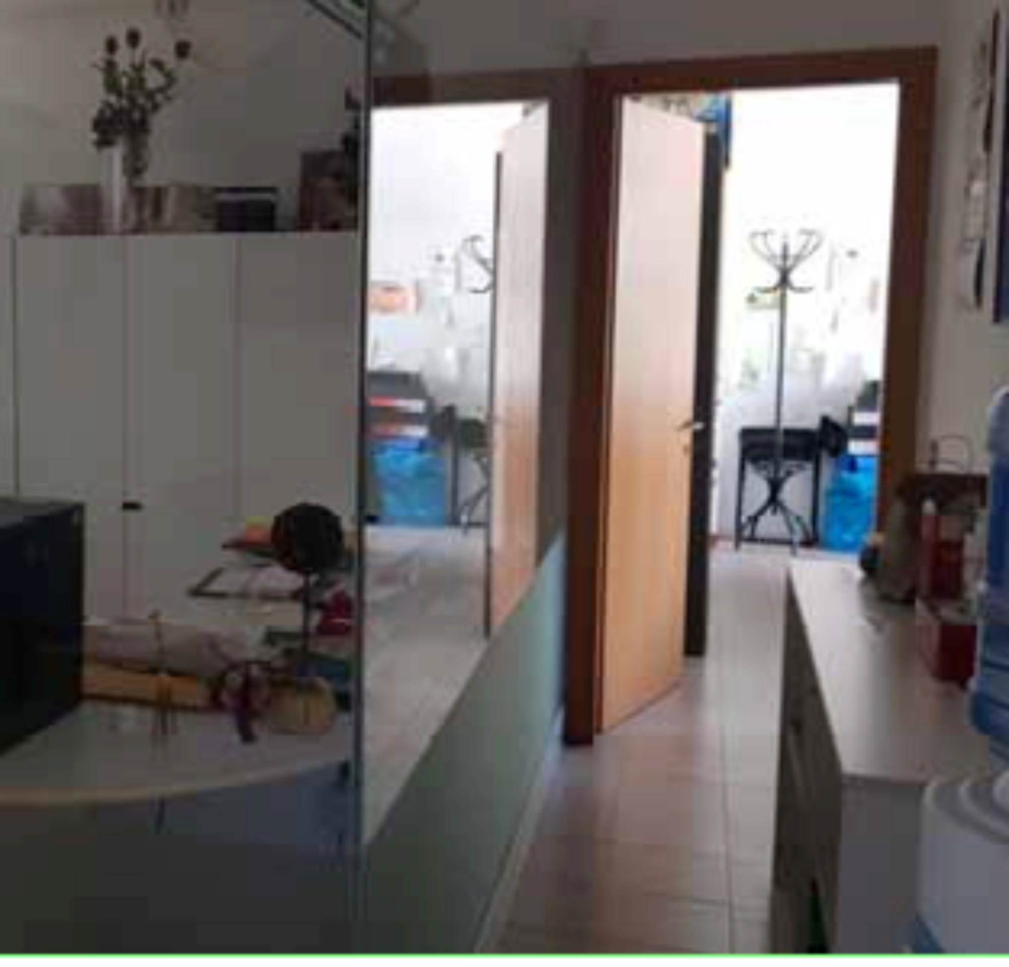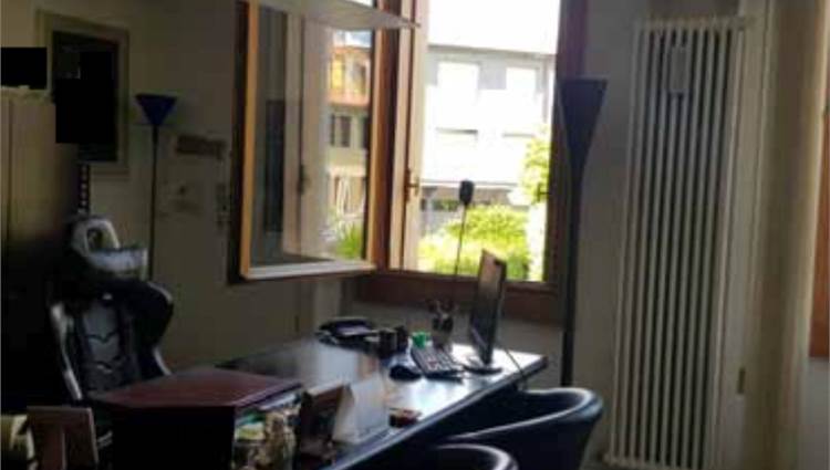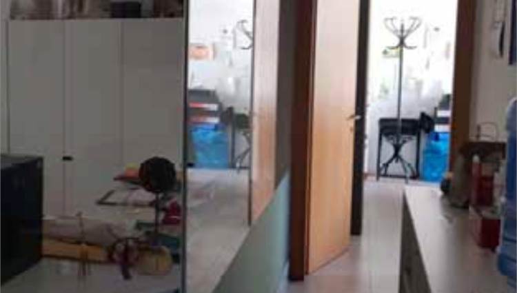 Ufficio posto al piano primo con garage di mq 19,00, composto da un ampio vano ingresso separato da pareti in vetro da rimuovere, due ulteriori vani uffici, antibagno con bagno.