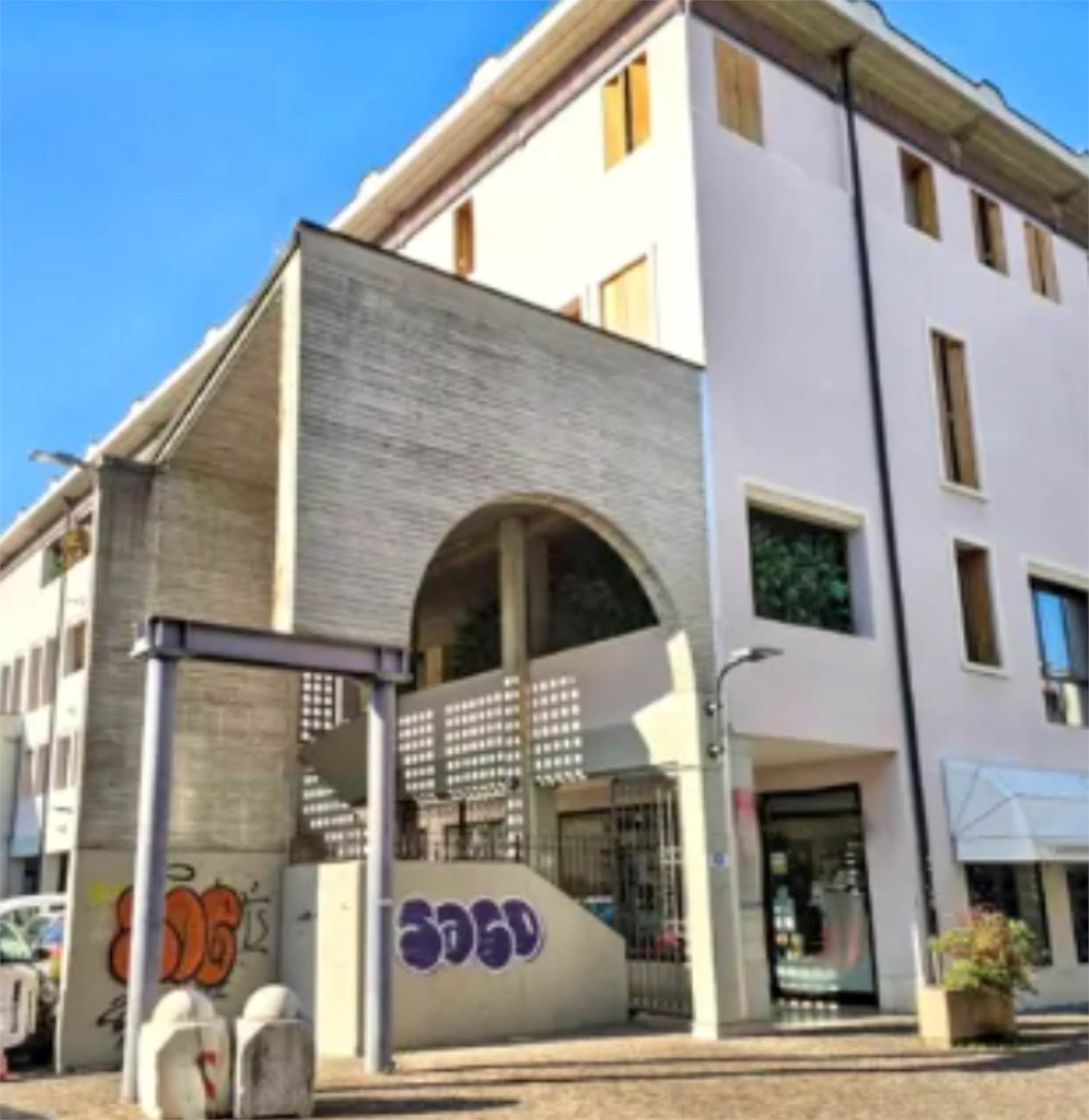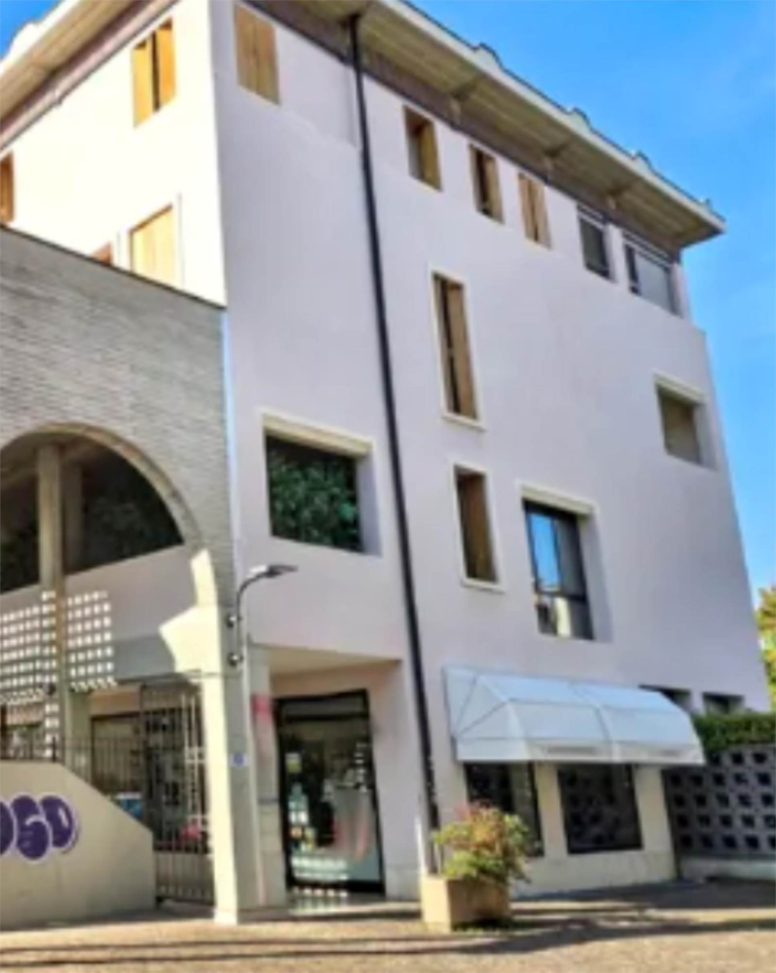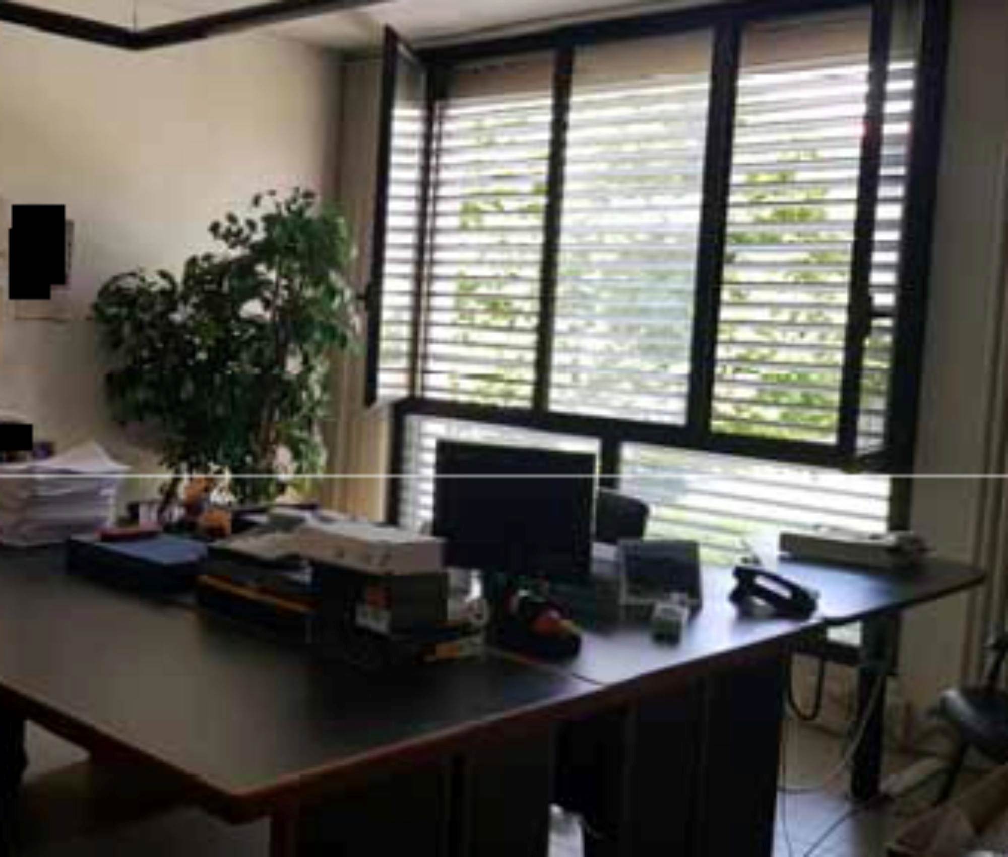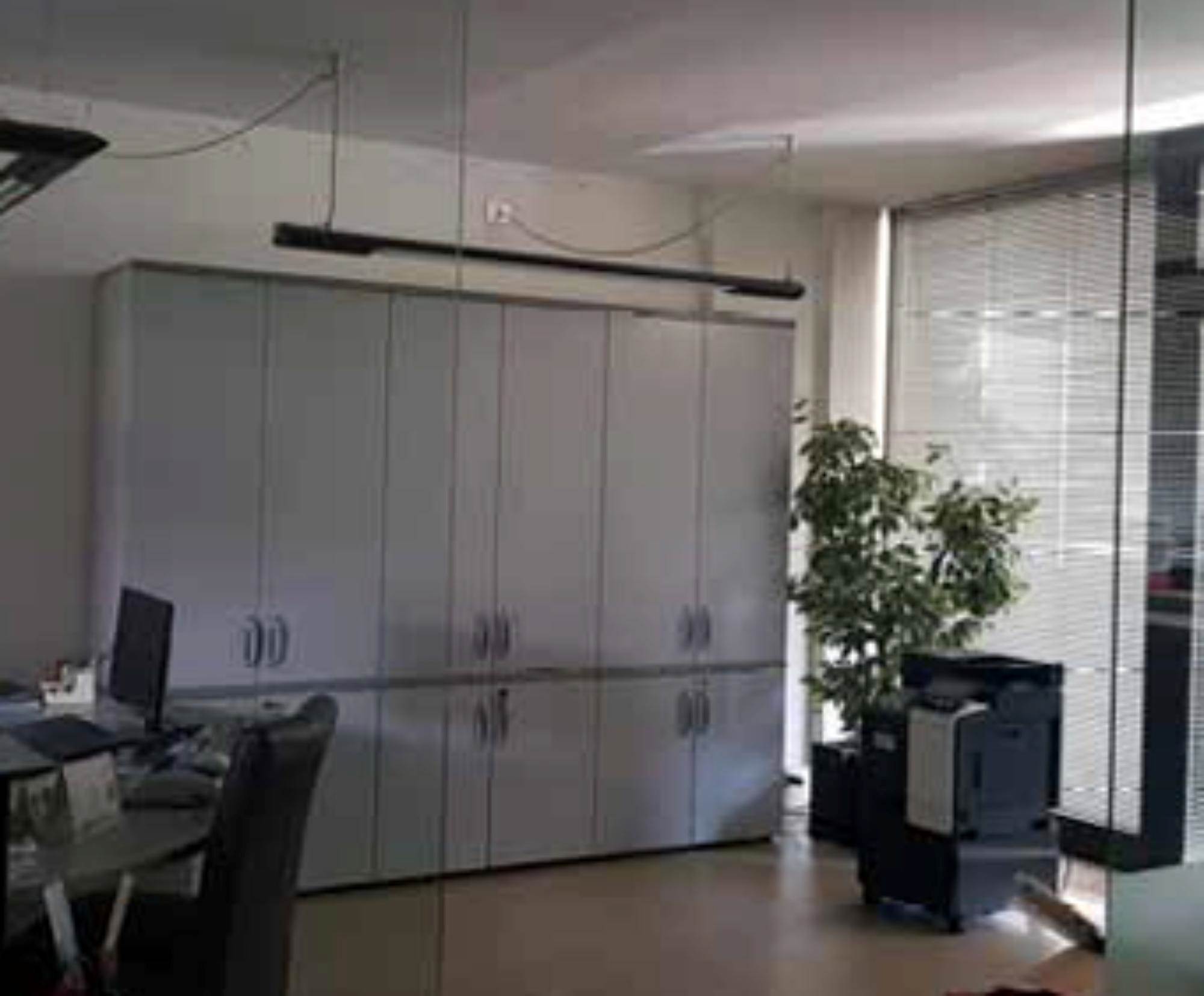 Ufficio posto al piano primo con garage di mq 19,00, composto da un ampio vano ingresso separato da pareti in vetro da rimuovere, due ulteriori vani uffici, antibagno con bagno.