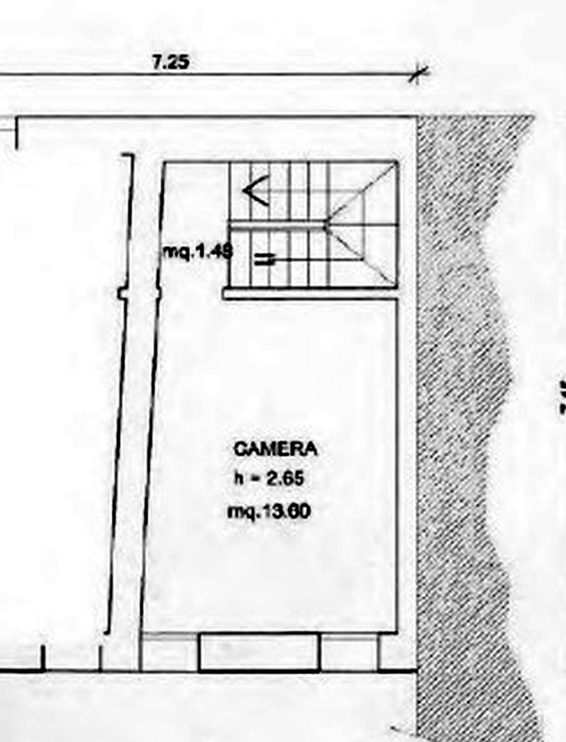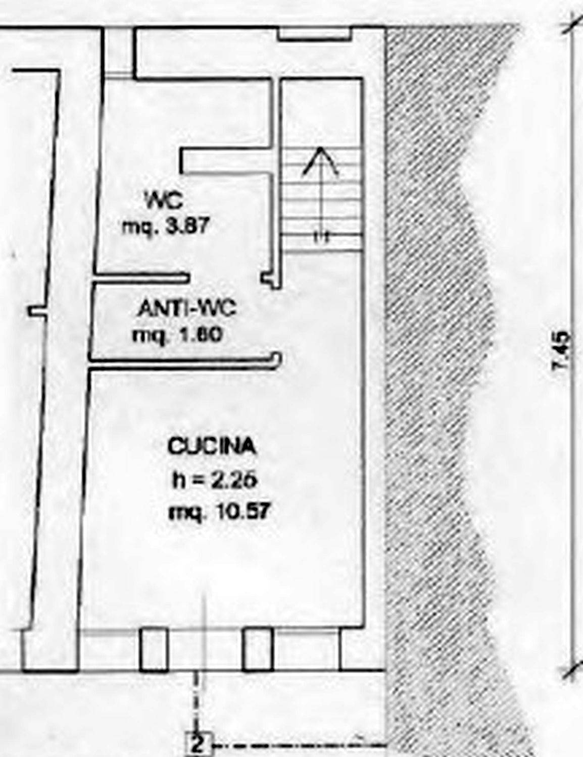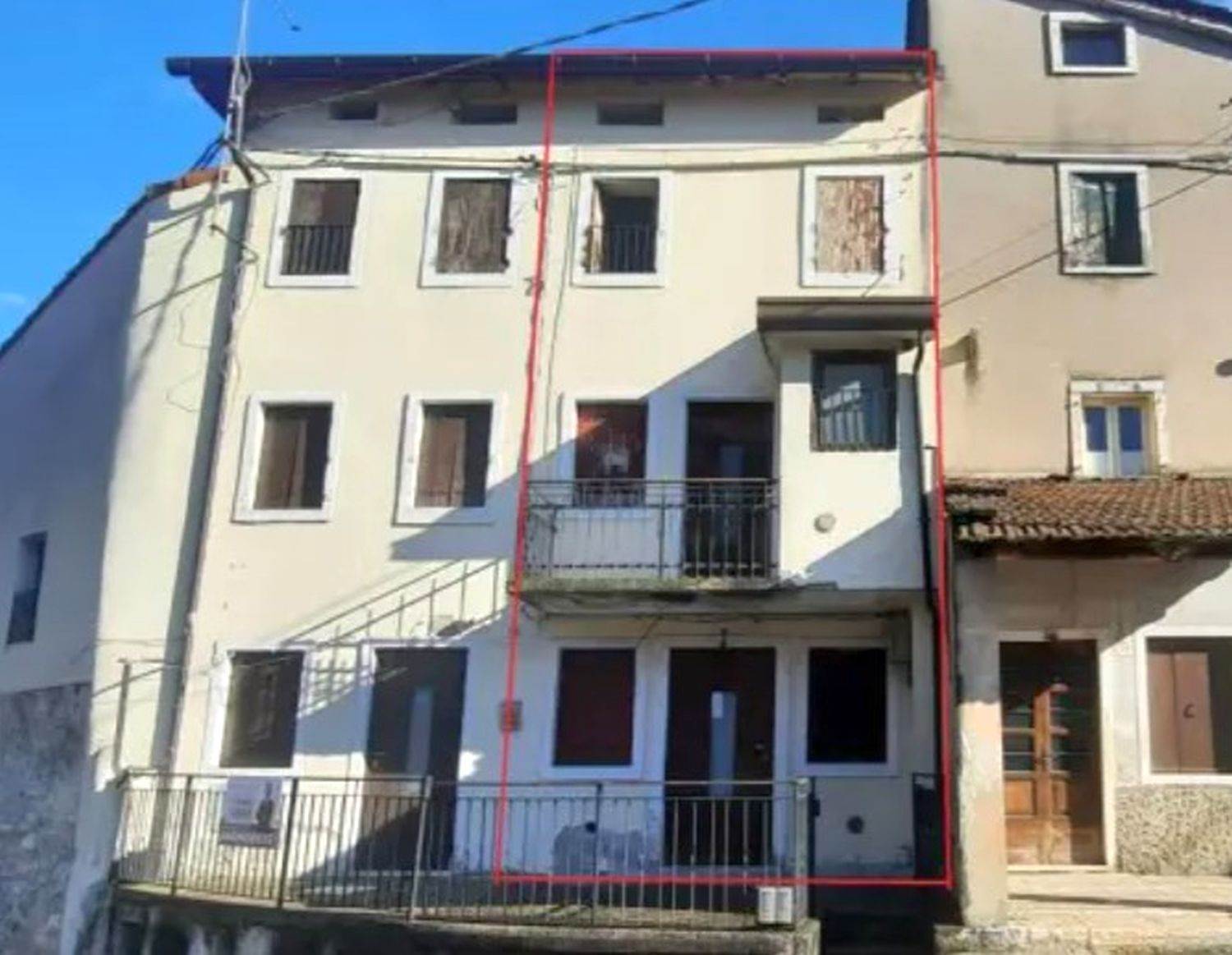 Unità abitativa affiancata ( 79,00 mq), con sviluppo su tre livelli composta da cucina, anti w.c. e w.c. al piano terra, una camera con w.c. e poggiolo al piano primo, altra camera al piano secondo. Livelli collegati da scala interna con disimpegno ai piani. Risulta a servizio dell’abitazione il cortile esterno di uso comune con l’unita abitativa adiacente.