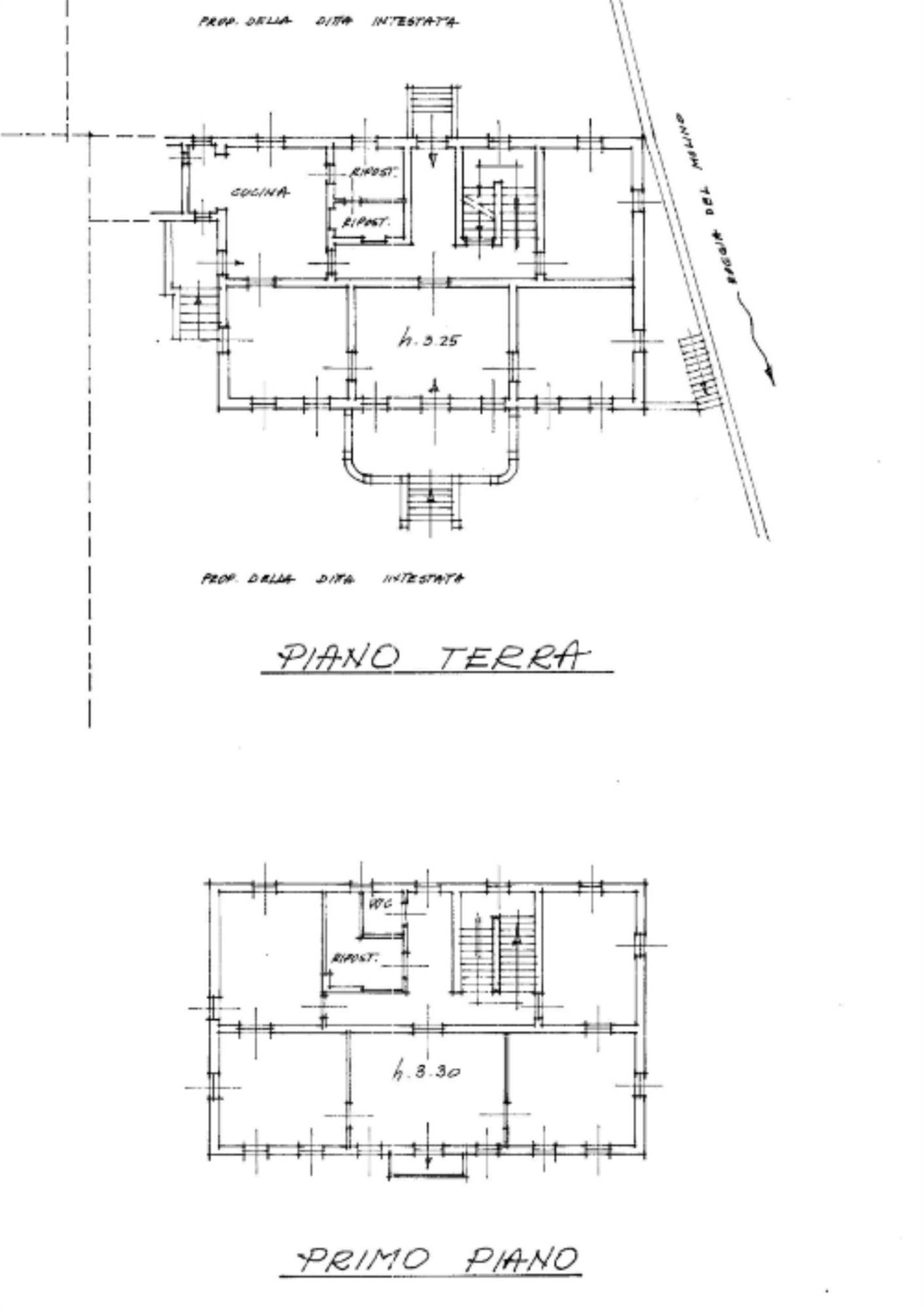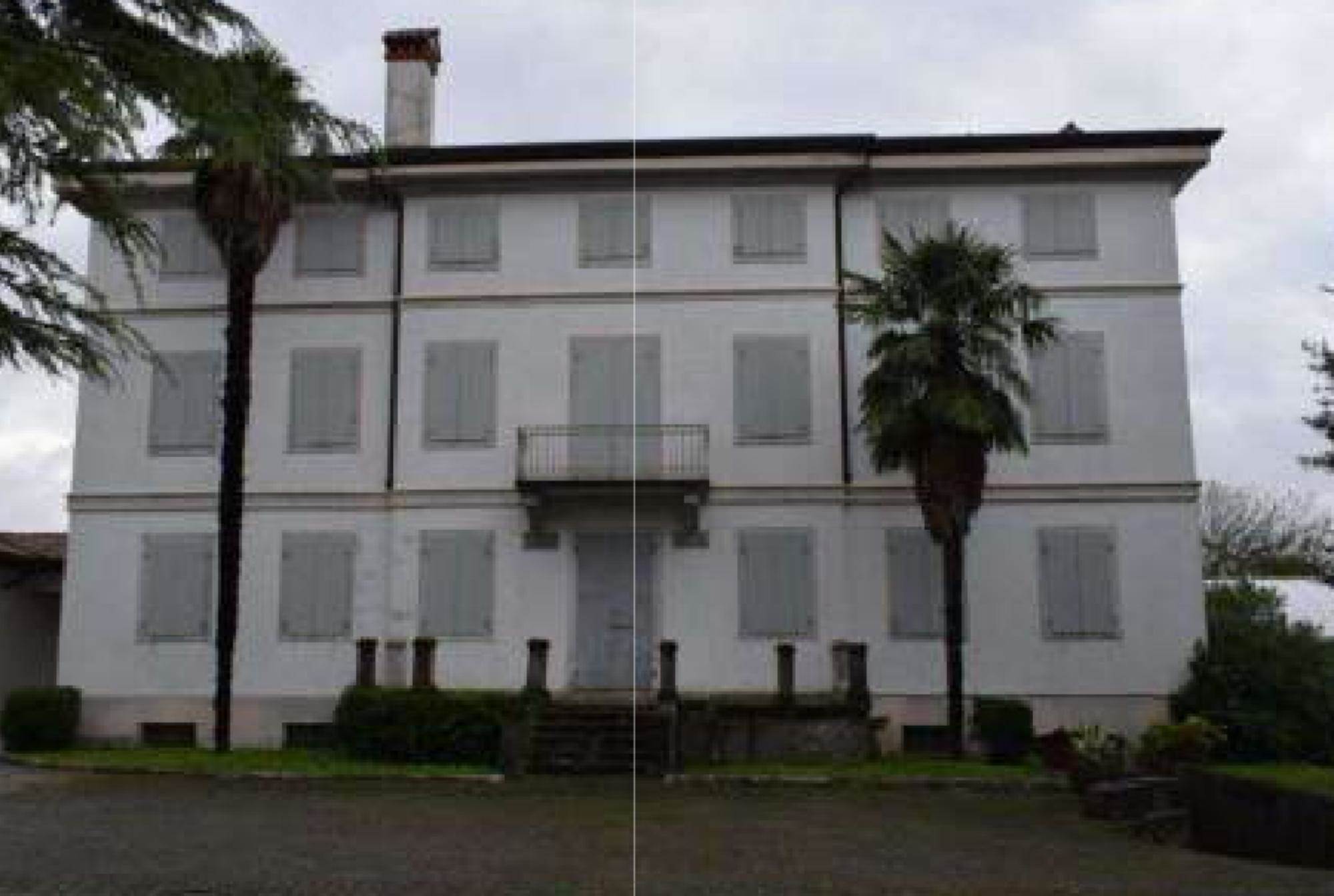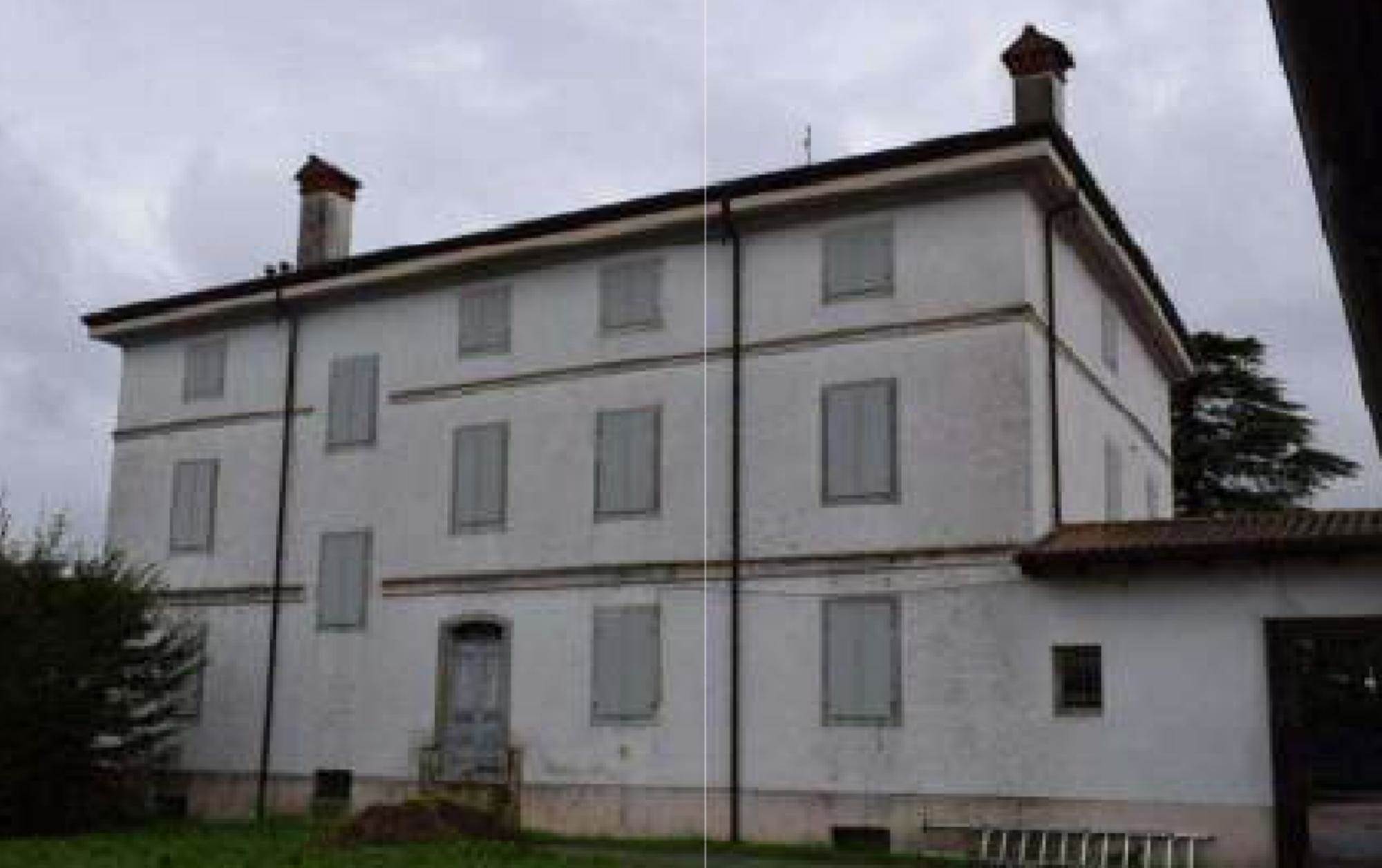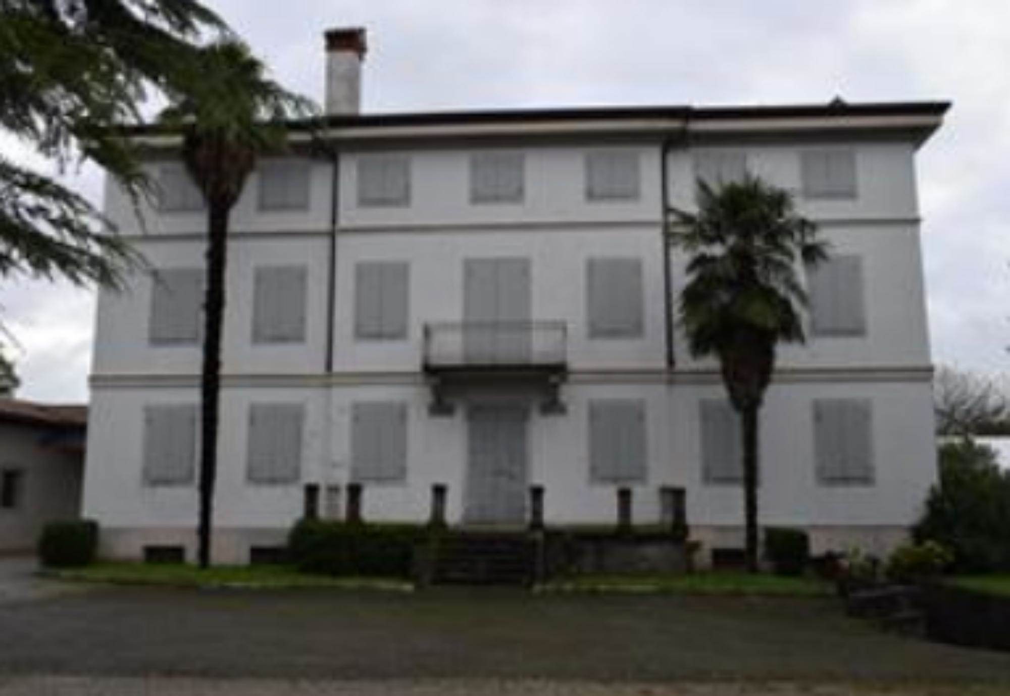 Villa padronale con locali accessori al piano seminterrato, quattro stanze ed una cucina al piano terra, cinque stanze al primo piano ed un unico locale adibito a soffitta al secondo piano, con annesso capannone strumentale destinato all'attività agricola di 700,00 mq e terreno.