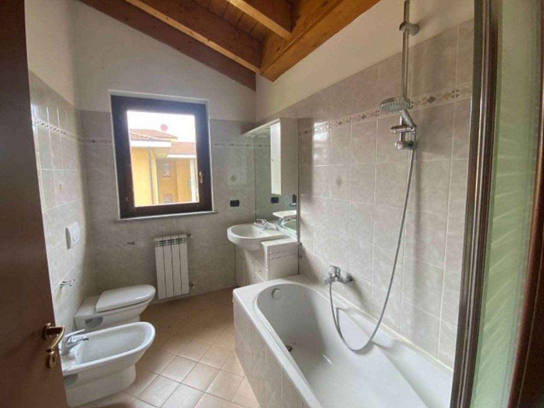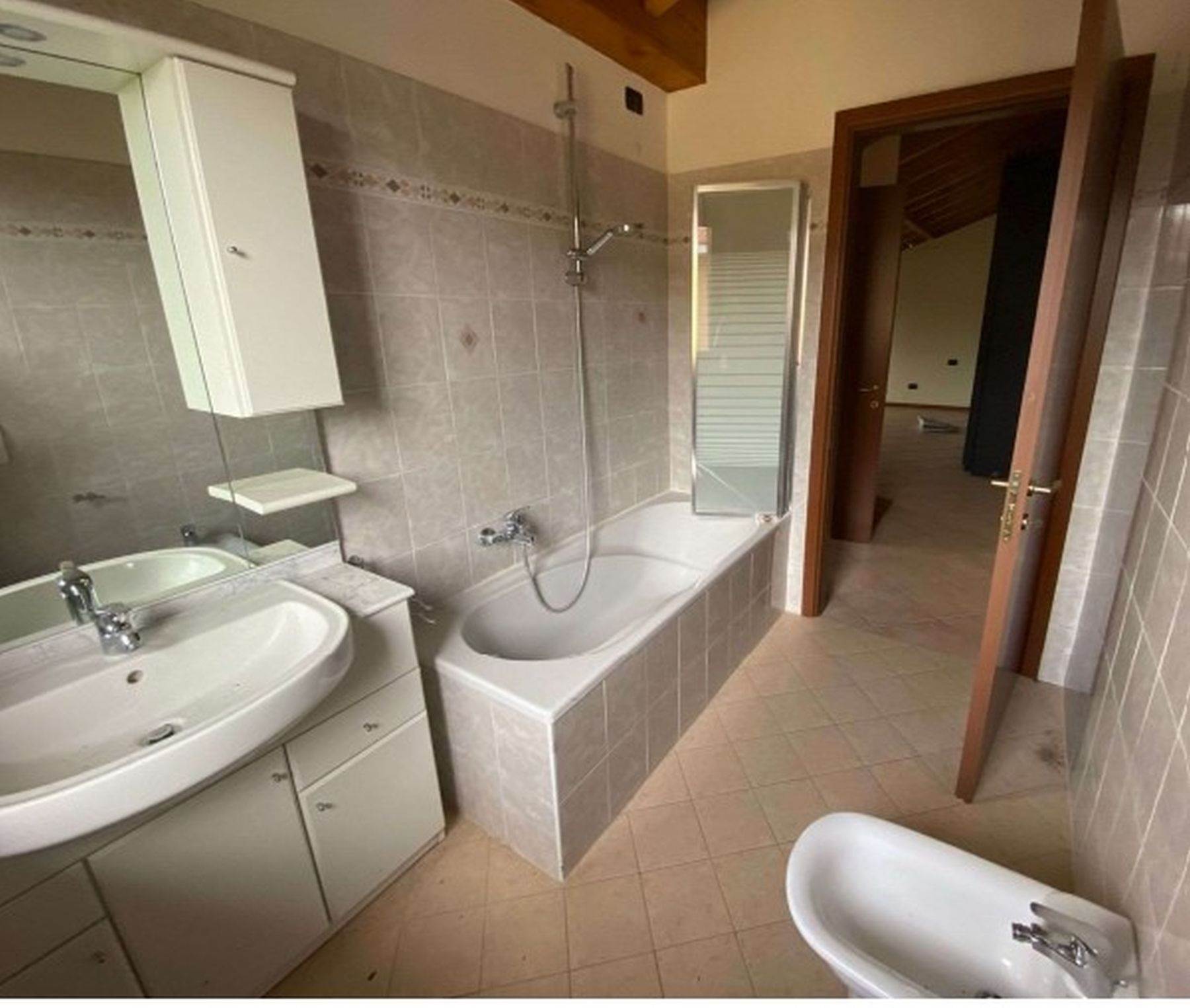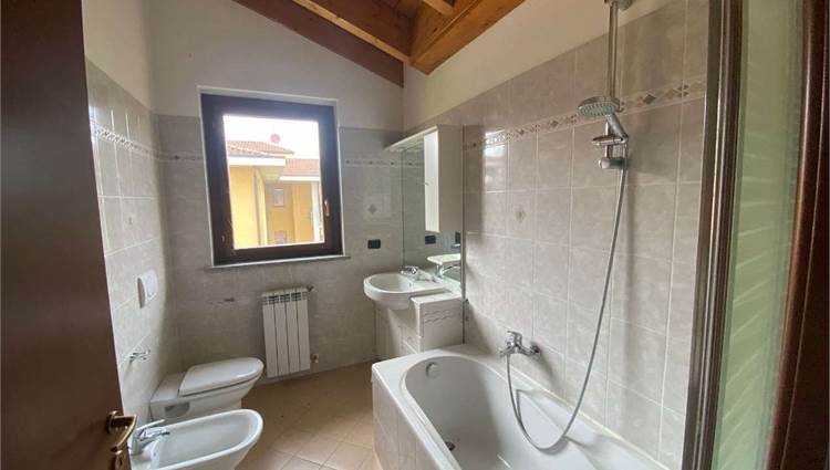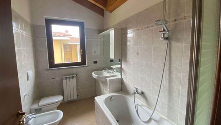 Descrizione sintetica: appartamento al piano primo e secondo di un condominio di tre piani con 9 appartamenti, è costituito di due locali con due bagni e due ripostigli. È presente inoltre l'autorimessa al piano terra di 29 mq.
