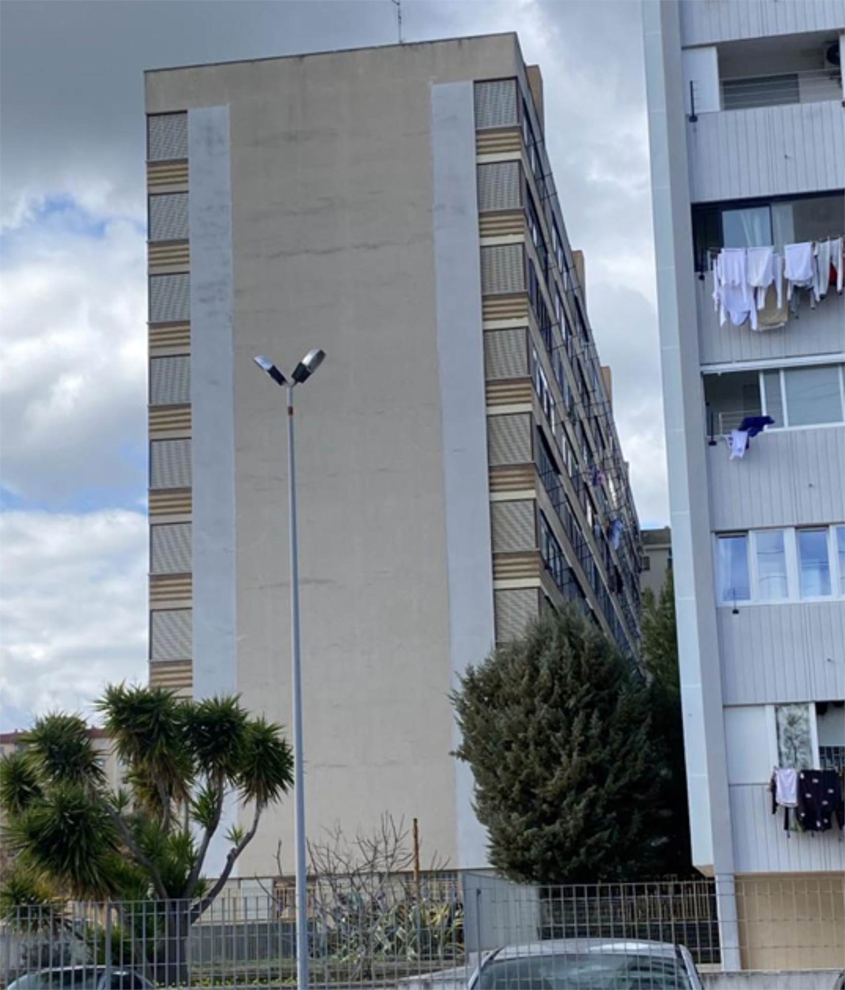Descrizione sintetica: appartamento posto all'ottavo piano, scala B, di un fabbricato che si eleva su nove piani, dotato di due ascensori. L'appartamento è composto da cucina, un disimpegno, tre camere, un balcone di mq 13,30, una veranda di mq 15,00 ed un bagno.